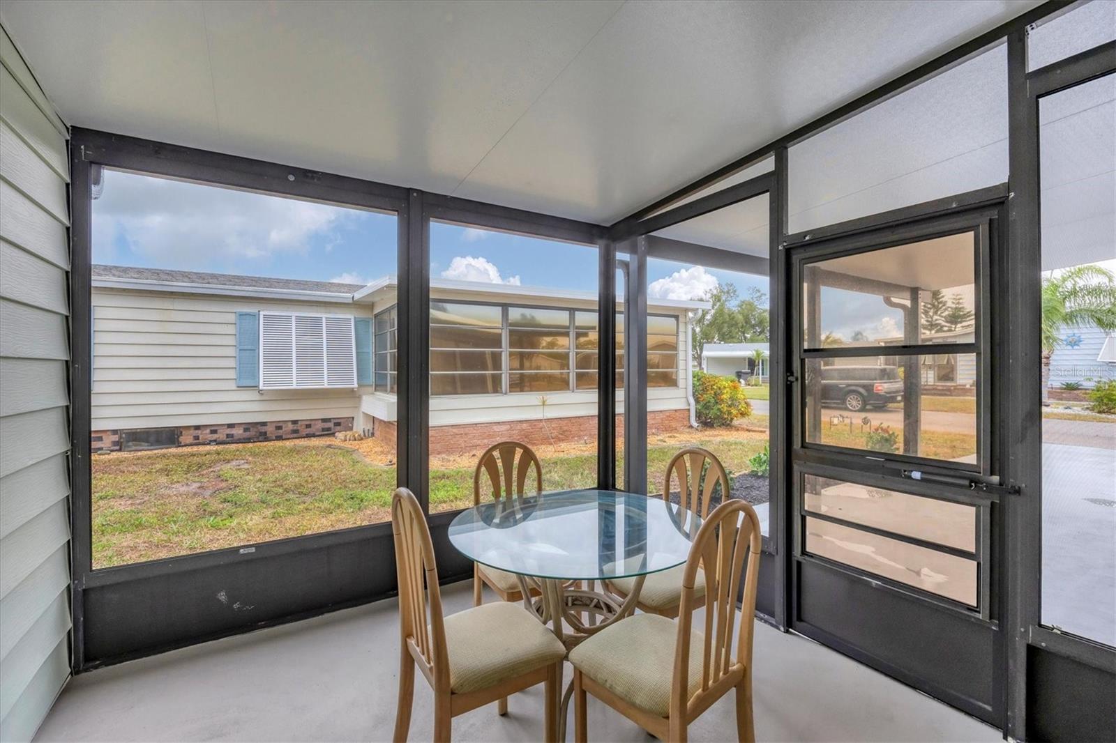 Located on a quiet cul-de-sac street and located in an X Flood Zone! This highly sought-after gated community of Tangerine Woods, is an active and friendly, 55 and over community, and you own the land your home is located on. For your leisurely pleasure, this community provides you with a large heated pool and clubhouse, an exercise room and library, tennis and pickleball courts, walking trails, shuffleboard, and so much more! Turnkey furnished with all the comforts of home, this 2-bedroom, 2-bathroom home had a New A/C in 2020, Lanai has newer vinyl plank flooring, windows and door, is light & bright and the perfect place to sit and enjoy your morning coffee. The kitchen, complete with a pantry and breakfast bar, is just off the dinette area that offers a built-in cabinet. The large great room has sliders that take you to your lanai for an extended entertaining area. The master bedroom has a walk-in closet and ensuite bathroom. Enjoy sitting in your screened porch off the carport and welcome the outdoors. This home's yard is a green-belt area that boasts tranquility and privacy. The low monthly HOA payment of $226 includes cable TV, internet and grass cutting, and Tangerine Woods is pet friendly! This community is close to Historic Dearborn St., which provides casual dining, evening entertainment, locally owned shops and a Farmers Market on Thursdays. The local beaches are just 4 miles away, as well as many local golf courses, and world class fishing! Make your appointment today to see this wonderfully located home!