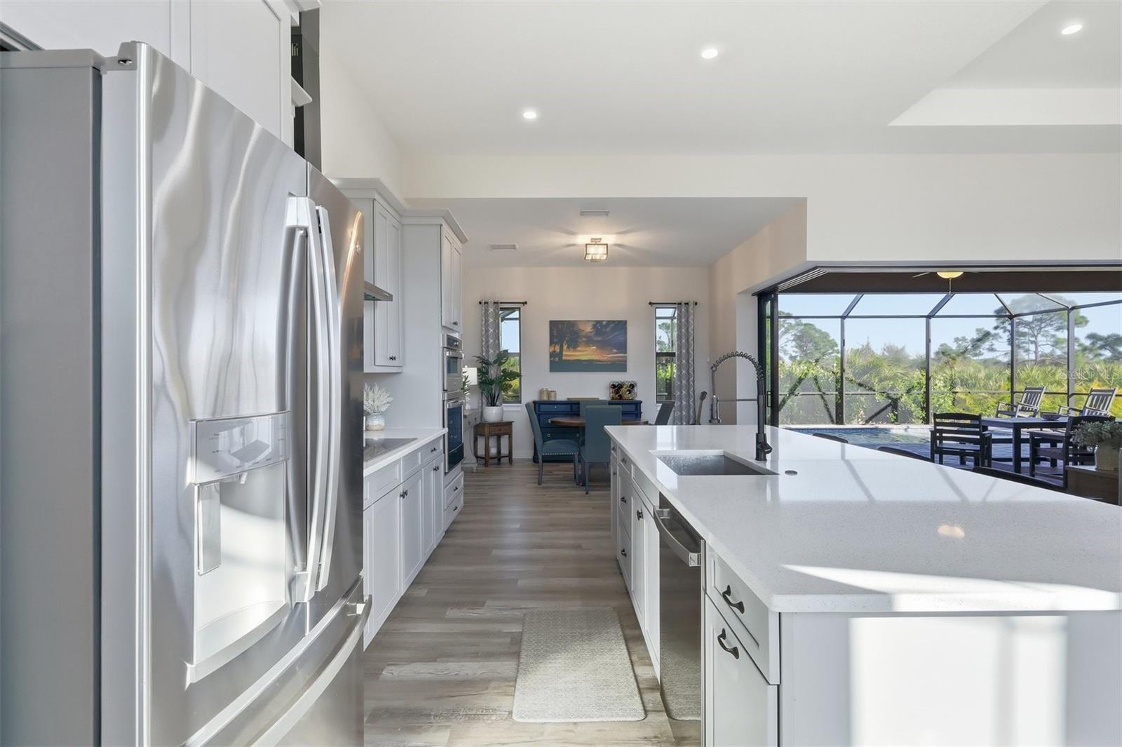 An Elevated Tropical Retreat in the Heart of SW Florida. This 2024 custom built home is Tucked away in a quiet, serene setting yet just moments from gorgeous beaches, upscale shopping, renowned dining, professional sports complexes, parks and recreation areas, and convenient airport access, this exceptional residence delivers the best of Southwest Florida living--where luxury, privacy, and resort-style comfort come together seamlessly.Set on a rare double oversized lot, the property offers an expansive sense of space and tranquility rarely found. A fully integrated irrigation system and lush surroundings frame the home, creating a verdant tropical backdrop that feels both private and inviting.At the heart of this retreat lies a show-stopping outdoor oasis, completed in June 2025. The 12' x 27' features a 6'.6" swim platform with a playful bubbler, custom LED RGB lighting with remote control, and a top-of-the-line Hayward salt system, pump, and the largest heater/chiller model available--ensuring perfect pool temperatures year-round. The large screened in lanai with a covered area (covered 30.5 x 11) and its extended paver lanai offers ample space for lounging, dining, and hosting unforgettable evenings, while privacy landscaping behind the pool enhances the peaceful, resort-like ambiance.Inside, the home continues to impress with a layout designed for both elegance and everyday living. The kitchen serves as the true heart of the home, showcasing a large central island, abundant cabinet space, and sleek quartz countertops--not only in the kitchen but throughout the home--providing a cohesive, elevated finish that blends beauty with durability. This inviting space flows effortlessly into the main living areas, making it ideal for entertaining and gathering.Exceptional construction upgrades further elevate the home, including impact-resistant windows, sliders, and doors for security and storm protection, along with spray foam insulation throughout the attic, living spaces, and garage, offering superior energy efficiency, sound reduction, and year-round comfort. Security system and cameras.The garage has been transformed into a versatile, climate-controlled extension of the home, featuring a Samsung 2-ton mini-split A/C and heat system, insulated garage door panels, additional electrical outlets, and two dedicated 20-amp circuits--perfect for a workshop, home gym, or hobby space.Thoughtful interior details complete the home, including elegant plantation shutters in the primary bedroom, custom window treatments throughout the home and garage, and a well-equipped laundry area with a stainless French-door refrigerator with water line for ice maker (Oct 2025), along with a new washer and dryer (Oct 2025)--ideal for guests or extended stays.Every detail of this residence has been carefully curated to support a luxurious yet laid-back Florida lifestyle, offering space, privacy, efficiency, and refined comfort in one of Southwest Florida's most desirable settings. Sit back relax and enjoy the wildlife around you. Toast to the fire-sunsets that bounce off the clouds. This is vacation every day.Whether you're seeking a full-time residence, seasonal escape, or investment opportunity, this home stands as a true tropical sanctuary--designed to be enjoyed, admired, and lived to the fullest.Private showings available--experience the lifestyle you've been waiting for. *Property is available turn key.