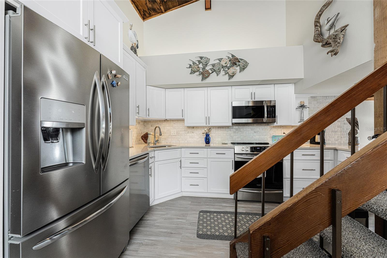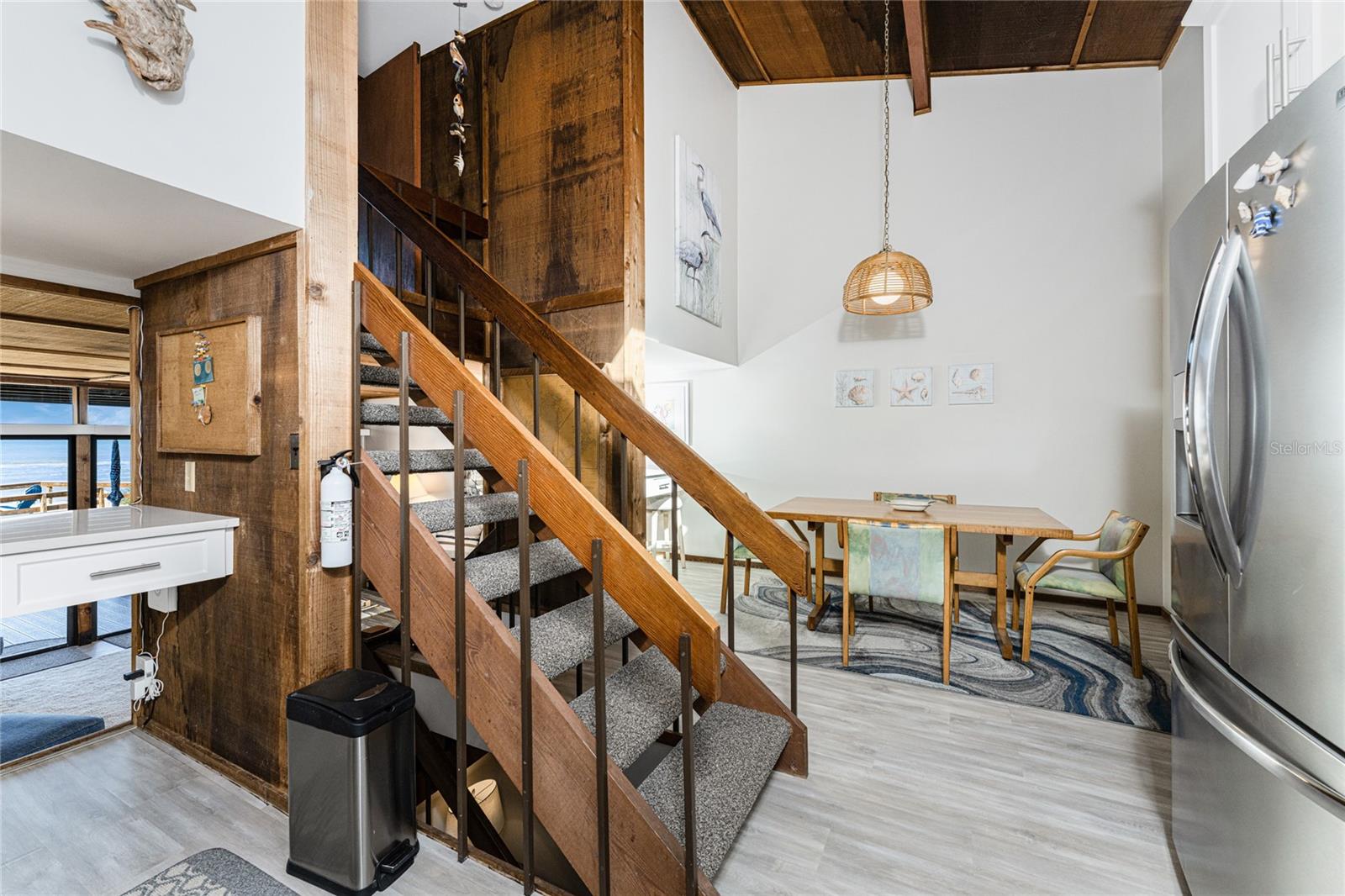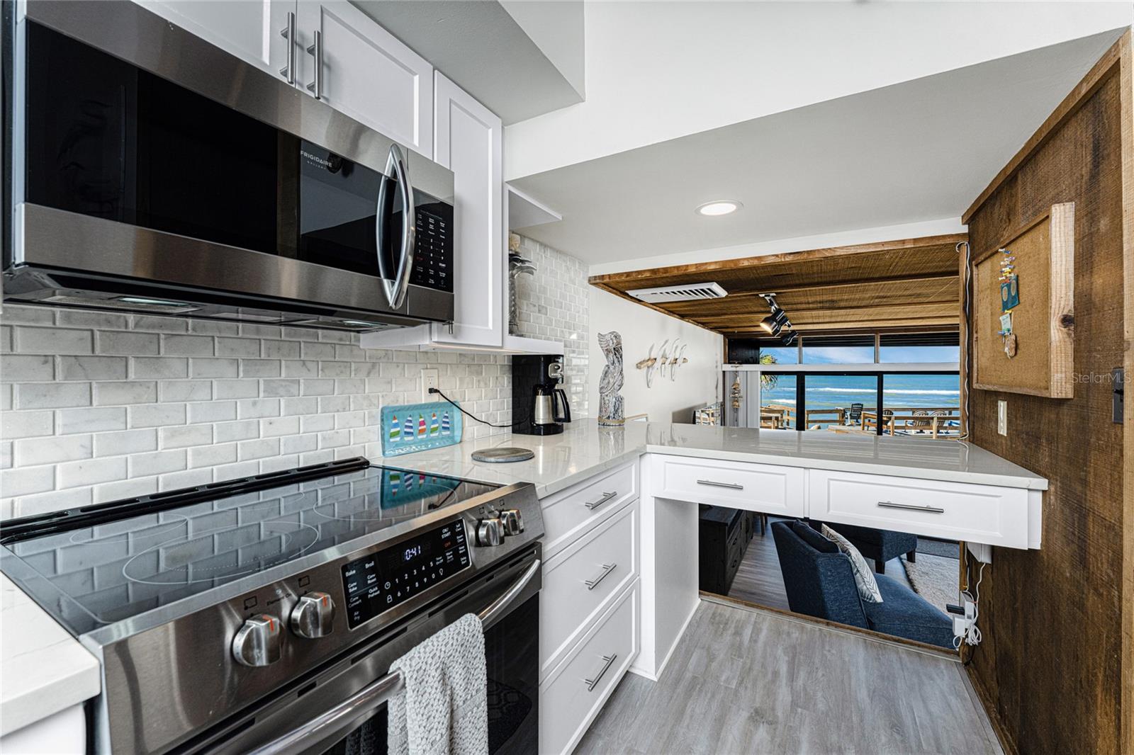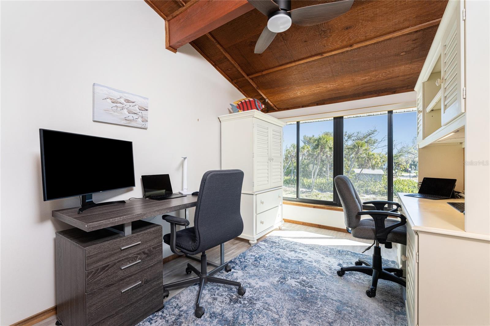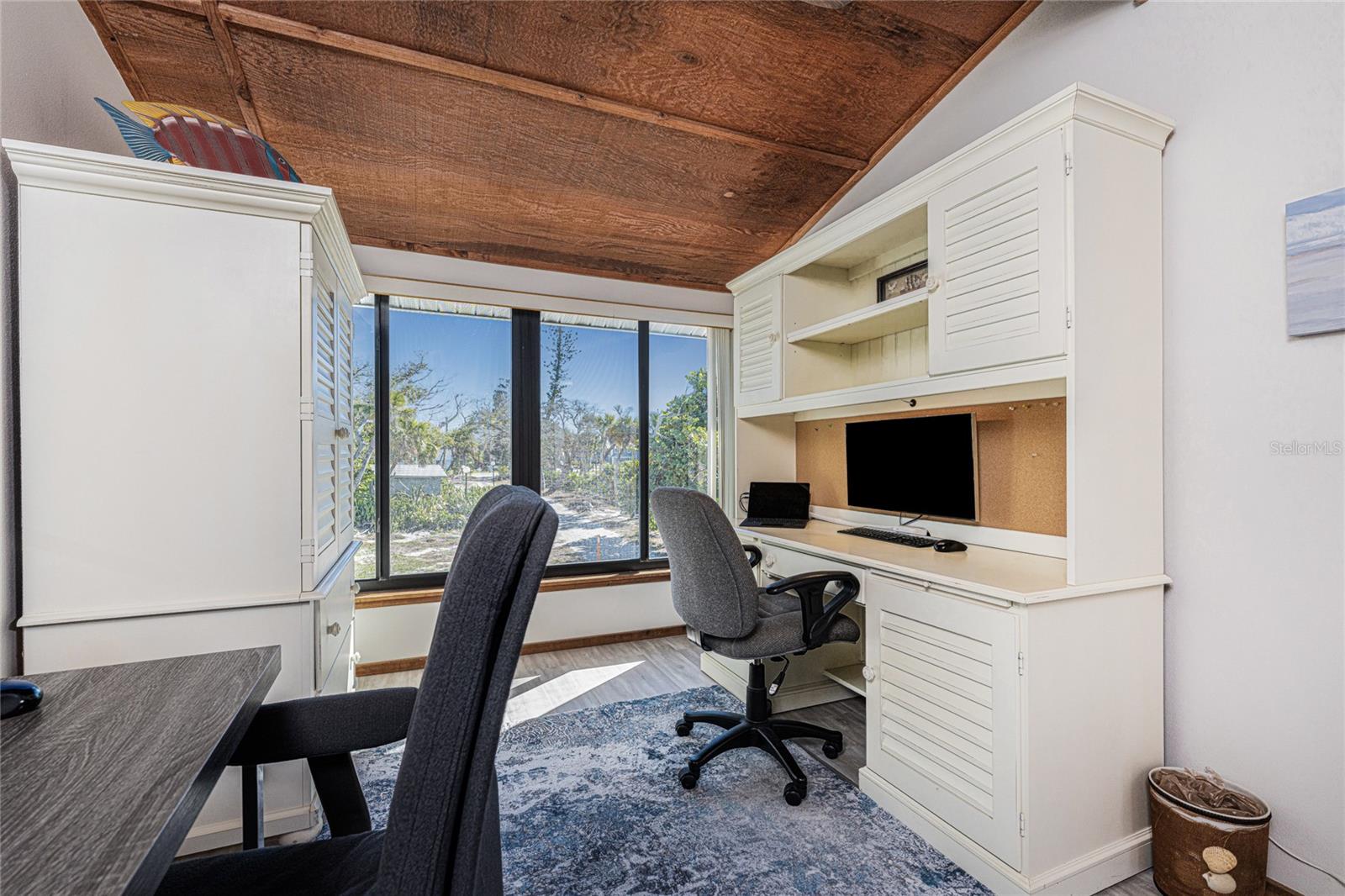 Welcome to Banyan Bluff Condominiums, a private four-residence townhome community set directly along the Gulf front of Manasota Key in Englewood, Florida. This lovely 3-bedroom, 2-bath multi-level townhome offers privacy and a tranquil atmosphere, positioned on more than an acre and comfortably set back from North Beach Road for added seclusion. The first living level is elevated on pilings approximately 16 feet above sea level, and the layout maximizes sweeping Gulf views and breathtaking sunsets from most rooms. A covered balcony off the main living area creates an inviting indoor-outdoor living space, ideal for dining outside or unwinding at day's end. The beautifully updated kitchen includes new stainless steel appliances and quartz countertops. Upstairs, the top floor primary bedroom suite offers a vaulted ceiling, walk-in closet, an updated en-suite bathroom, and recently replaced storm-rated sliders that open to a private open balcony overlooking the Gulf. Both guest bedrooms include storm-rated windows and the guest bathroom is located just beyond the kitchen and adjoining dining area. Convenient parking includes two under-building spaces and an EV charging port. The tiled entry foyer includes an adjoining utility room with a new washer/dryer, utility sink and room for storage. The townhome is being offered turnkey furnished. Whether you choose to make it your own or place it in a rental program, this condo offers outstanding versatility. Banyan Bluff residents also enjoy a Gulf-front wooden deck, perfect for soaking up the sun or enjoying evening sunsets. Other notable updates include a metal roof in 2023, a newer electrical panel, and tankless water heater. A rare opportunity to own a stunning beachfront townhome in a quiet, exclusive setting.