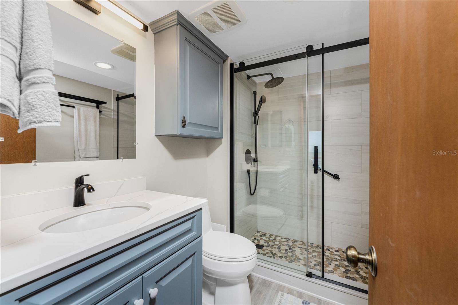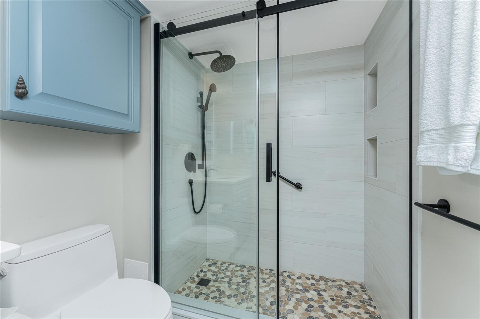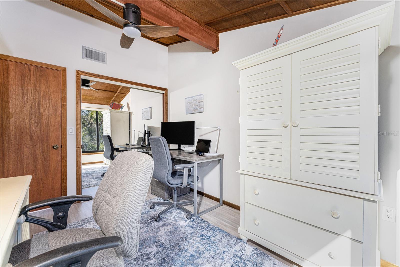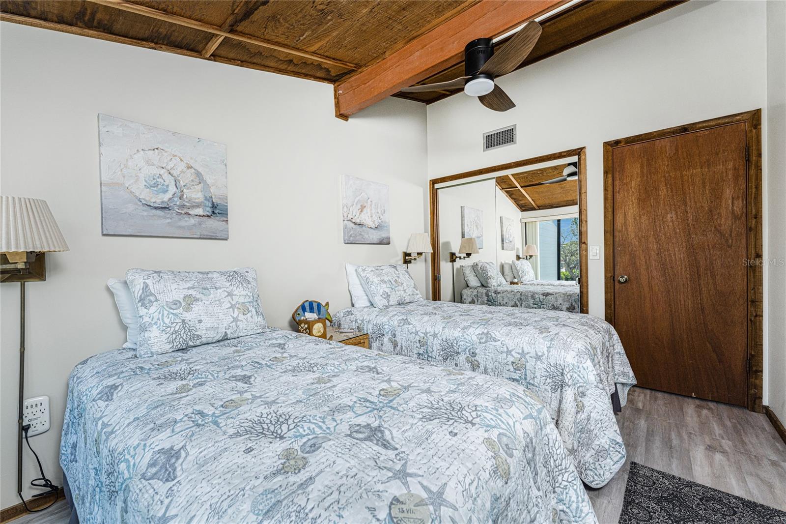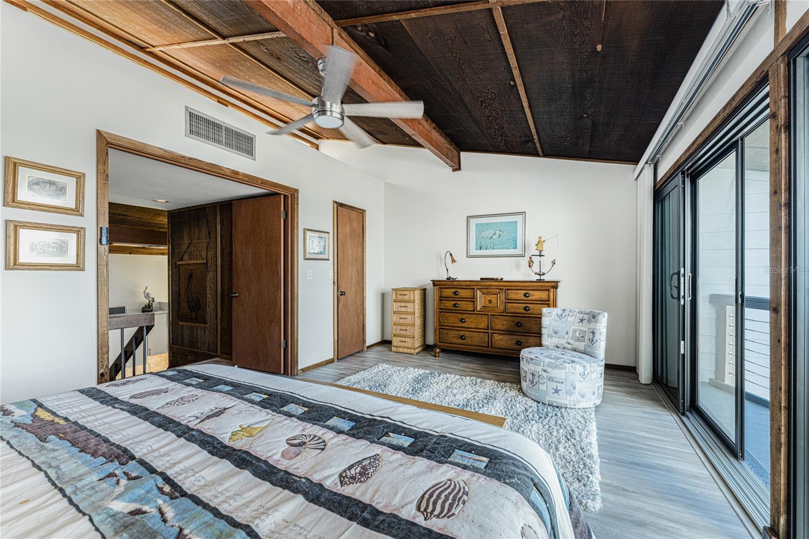 Welcome to Banyan Bluff Condominiums, a private four-residence townhome community set directly along the Gulf front of Manasota Key in Englewood, Florida. This lovely 3-bedroom, 2-bath multi-level townhome offers privacy and a tranquil atmosphere, positioned on more than an acre and comfortably set back from North Beach Road for added seclusion. The first living level is elevated on pilings approximately 16 feet above sea level, and the layout maximizes sweeping Gulf views and breathtaking sunsets from most rooms. A covered balcony off the main living area creates an inviting indoor-outdoor living space, ideal for dining outside or unwinding at day's end. The beautifully updated kitchen includes new stainless steel appliances and quartz countertops. Upstairs, the top floor primary bedroom suite offers a vaulted ceiling, walk-in closet, an updated en-suite bathroom, and recently replaced storm-rated sliders that open to a private open balcony overlooking the Gulf. Both guest bedrooms include storm-rated windows and the guest bathroom is located just beyond the kitchen and adjoining dining area. Convenient parking includes two under-building spaces and an EV charging port. The tiled entry foyer includes an adjoining utility room with a new washer/dryer, utility sink and room for storage. The townhome is being offered turnkey furnished. Whether you choose to make it your own or place it in a rental program, this condo offers outstanding versatility. Banyan Bluff residents also enjoy a Gulf-front wooden deck, perfect for soaking up the sun or enjoying evening sunsets. Other notable updates include a metal roof in 2023, a newer electrical panel, and tankless water heater. A rare opportunity to own a stunning beachfront townhome in a quiet, exclusive setting.