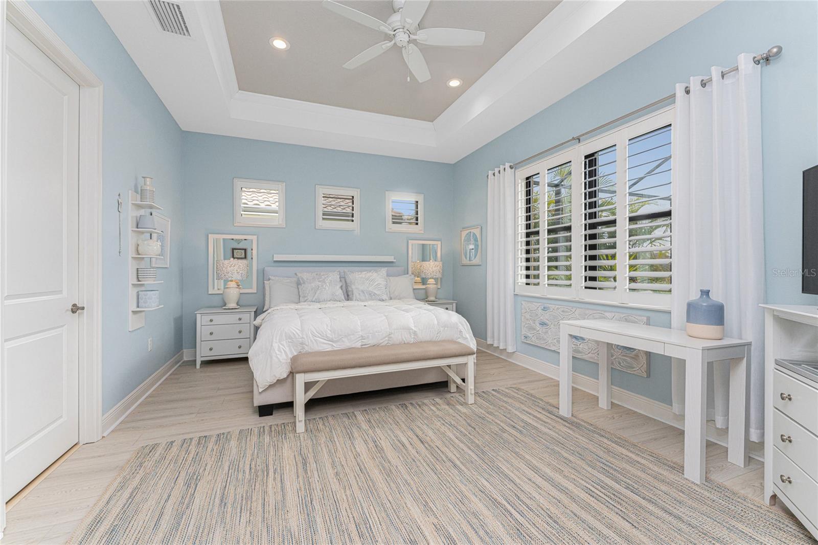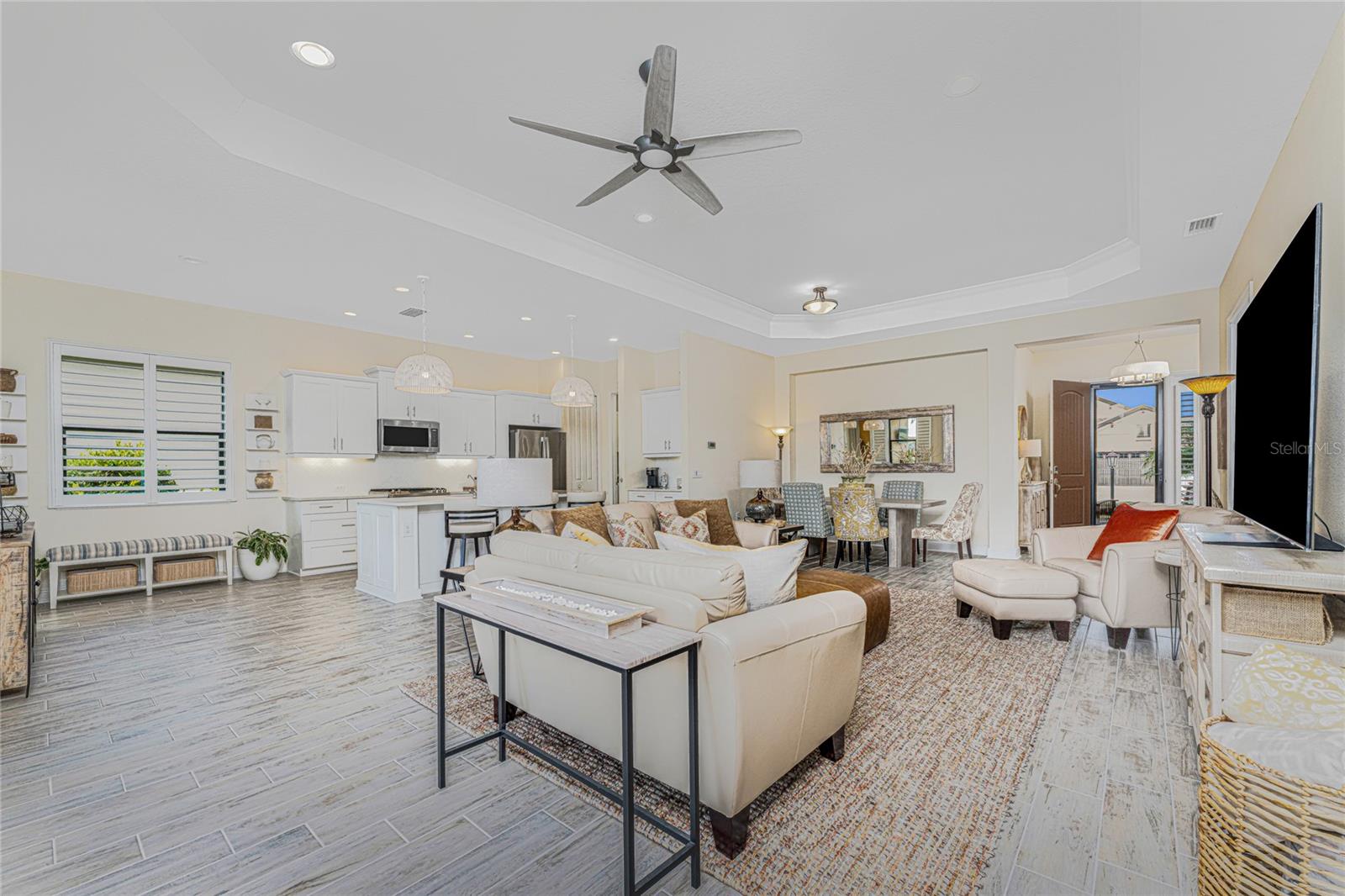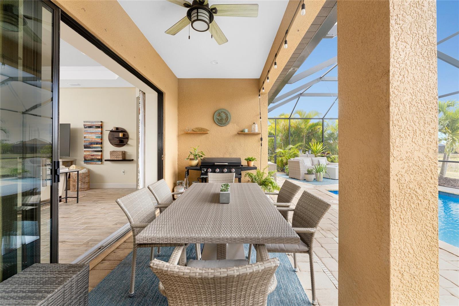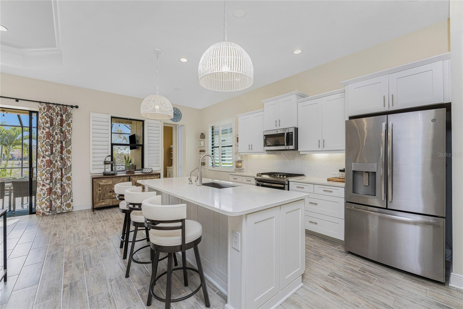 Set within the desirable, gated enclave of Boca Royale, this thoughtfully designed residence is one that truly must be experienced in person to be fully appreciated. Set on a peaceful lake with SUNRISE VIEWS, the home offers a sense of privacy, calm, and understated luxury that unfolds room by room. Upon arrival at 26853 Weiskopf Drive, the care and intention behind every detail are immediately evident with upgraded 8-foot doors, coffered ceilings, pocketing sliding glass doors and porcelain plank tile throughout the main space with a serene color palette and cohesive design flow. The OPEN-CONCEPT GREAT ROOM is designed for easy living and effortless entertaining, anchored by a gourmet kitchen featuring an expansive island, London Sky quartz countertops, stainless steel appliances, a GAS RANGE, and generous dining space. Behind elegant French doors, a FLEXIBLE DEN offers the option of a home office, sitting room, or THIRD BEDROOM when needed. The PRIMARY SUITE is both inviting and refined, showcasing a tray ceiling, abundant natural light, peaceful backyard views, a large walk-in closet, and a spacious ensuite bath with dual vanities, walk-in shower, and private water closet. A well-sized guest bedroom and adjacent guest bath are tucked away down a separate hallway, offering comfort and privacy for visitors. Additional features to note include the interior laundry room, plantation shutters and the desirable POOL BATH. The home's appeal extends seamlessly outdoors, where the EXTENDED, FULLY SCREENED LANAI captures a rare and picturesque blend of lake and marshland views--an ever-changing natural backdrop with birds wading and gliding through the landscape. Ample shaded and sunlit seating surrounds the CUSTOM HEATED SALTWATER POOL WITH WATERFALL, creating an ideal setting for both quiet mornings and relaxed gatherings. Whether returning from a round at the 18-hole semi-private golf course, a tennis match, or a day at the nearby beaches, this outdoor space invites you to unwind. Residents also enjoy access to the RESORT-STYLE POOL, CLUBHOUSE, AND HOT TUB, ALL INCLUDED IN THE HOA, ALONG WITH LAWN CARE AND IRRIGATION. Boca Royale Golf & Country Club further enhances the lifestyle with pickleball courts, a fitness center, dog park, and a beautifully renovated full-service clubhouse with restaurant. A home defined by setting, comfort, and thoughtful design--this is one best appreciated in person. PEACE OF MIND comes with the concrete tile roof, whole home hurricane protection, all new insulation and X FLOOD ZONE! FURNISHINGS NEGOTIABLE.