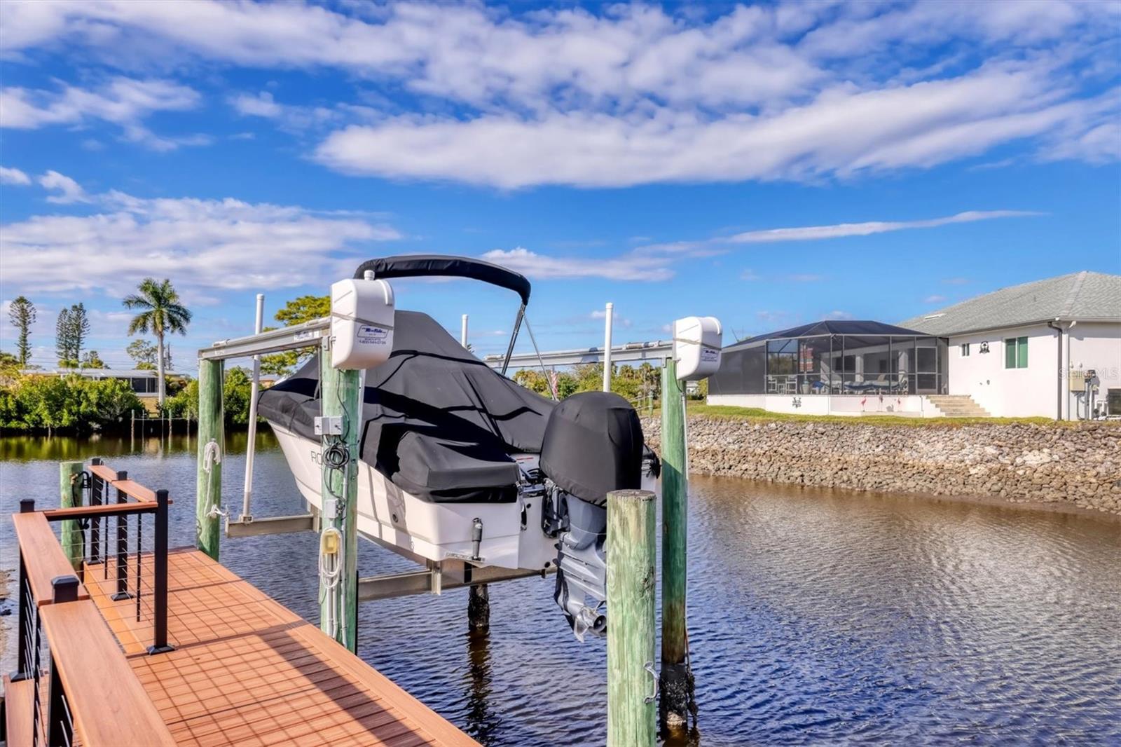 Welcome to the Florida waterfront lifestyle in the heart of Duck Key, where boating, sunshine, and ease come together. This four-bedroom, two-bath single-family home welcomes you with a bright foyer entry that opens into the main living space, where your eyes are immediately drawn to the backyard water views and dock beyond. To the right, the kitchen overlooks the living area, creating an ideal setup for entertaining, while the dining space features beautiful water views, ample windows, and an additional sliding door leading out to the screened-in lanai. The home features stainless steel appliances and granite countertops throughout. To the left of the entry, a door separates three bedrooms and a full bath, offering privacy for guests and family, with flexible room options for an office, gym, or entertainment space. Beyond the living room, the spacious primary suite is tucked to the left and includes tray ceilings, its own private bath with his-and-her sinks, and two walk-in closets.Step outside to enjoy direct water access with a private dock, boat lift, and expansive outdoor spaces designed for life on the water. Boaters will appreciate the 31' dock, 10' x 30' deck, and 4,500 lb. boat lift with new metal bunks, complete with water and electricity. A new Trex deck and cable railing (2025) add durability, safety, and low-maintenance peace of mind. Whether you're launching for a day on the water, cleaning your catch, or relaxing dockside at sunset, this setup is built for the Florida boating lifestyle.The home has seen extensive recent improvements, including a new roof (2022), new A/C (2021), paver driveway (2025), new soffits (2025), new gutters (2017), and a hurricane-rated garage door (2021). Additional upgrades include seven DC ceiling fans with remotes (2025), new carpeting, an outdoor shade with remote, lanai screen (2022), a new fiberglass side-entry garage door, and LED lighting throughout the home.Inside and out, the layout offers flexibility for full-time living or a second home, while the waterfront setting creates a relaxed, resort-like atmosphere. Conveniently located near Cocoplum Plaza, shopping, dining, and local activities, this home offers the perfect balance of privacy, accessibility, and waterfront convenience. A rare opportunity to own a well-maintained waterfront home in the desirable HOA community of Duck Key.