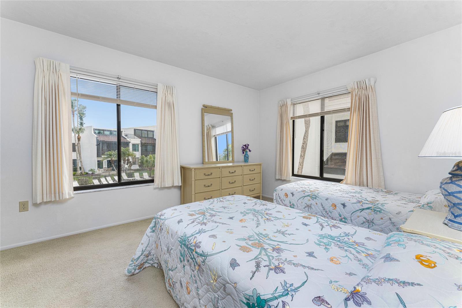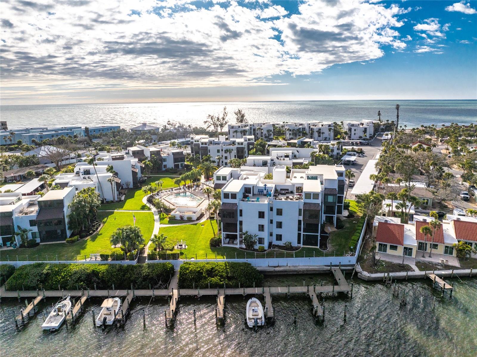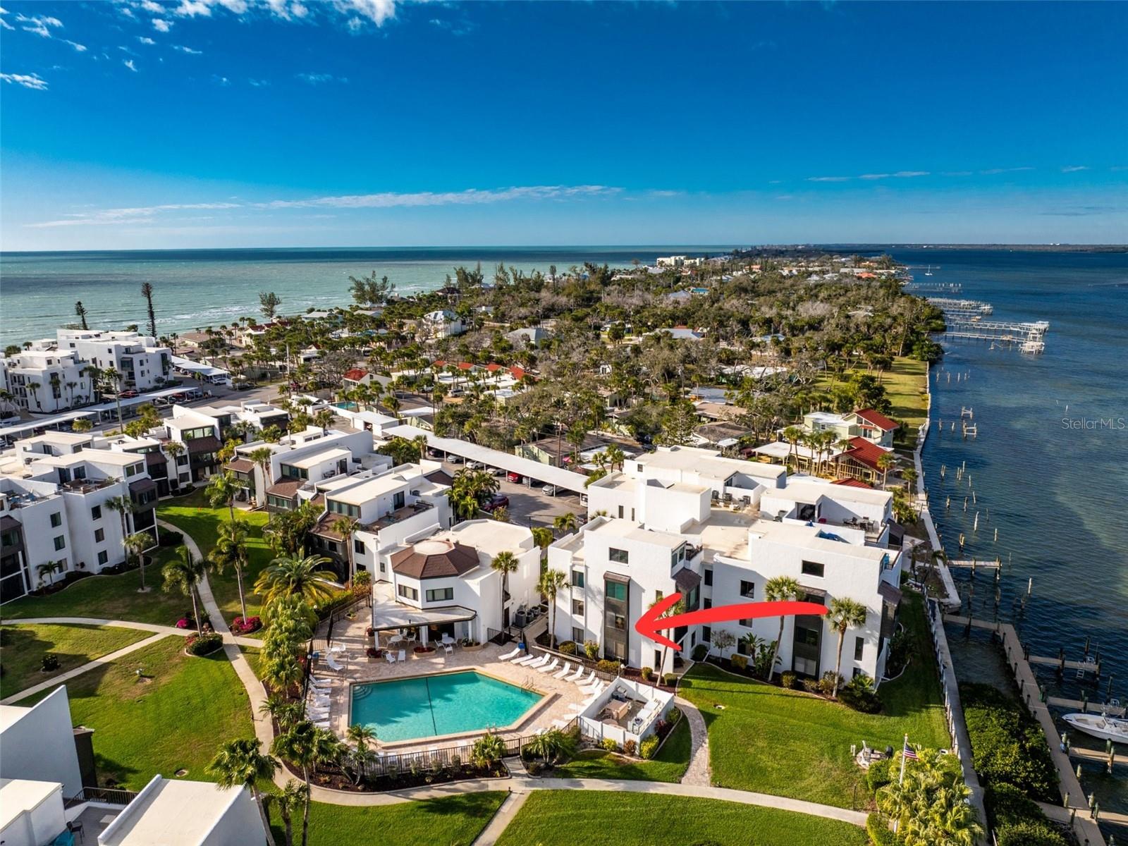 Expansive bay views invite you to spend your days watching boats go by across one of the widest points of Lemon Bay, with salty breezes setting the tone for relaxed coastal living. This original-owner two bedroom, two bathroom condo at Tamarind Gulf & Bay offers beautiful Lemon Bay views from the living and dining rooms, complemented by peaceful pool views from both the living room and guest bedroom. Located in one of the few buildings in the complex with elevator access, this residence enjoys one of the most desirable locations and floor plans in the community. The living room features a bay window and sliding glass doors that open to a screened lanai overlooking the bay and boat docks. The kitchen is equipped with wood cabinetry, Corian countertops, and a comfortable dining area ideal for everyday meals or casual entertaining. The ensuite primary bedroom is generously sized and includes a walk-in closet, a shower and tub combination, and an oversized vanity designed for ease and comfort. The guest bedroom offers a reach-in closet, while the guest bathroom also features a shower and tub combination, providing a welcoming space for visitors. Additional highlights include a December 2025 A/C system and Hot Water Heater. This true Gulf-to-Bay community offers a resort-style setting with many amenities including one covered parking space and one uncovered guest space, first-come first-served boat docks, deeded beach access, a large heated pool, clubhouse, and approximately 450 feet of Gulf frontage. An on-site manager and one of the strongest associations in the area provide added peace of mind, with association fees covering water, sewer, basic cable, internet, pest control, and exterior maintenance. The community allows a two week minimum rental and up to two pets. Set on the southwest Florida barrier island of Manasota Key, this Tamarind unit at 2955 N. Beach Road is surrounded by lush tropical landscaping and charming cobblestone paths, offering effortless access to both the Gulf of Mexico beach and tranquil Lemon Bay. Scenic overlooks throughout the property create the perfect spots to enjoy wildlife, passing boats, and the relaxed waterfront lifestyle that defines life on Manasota Key.