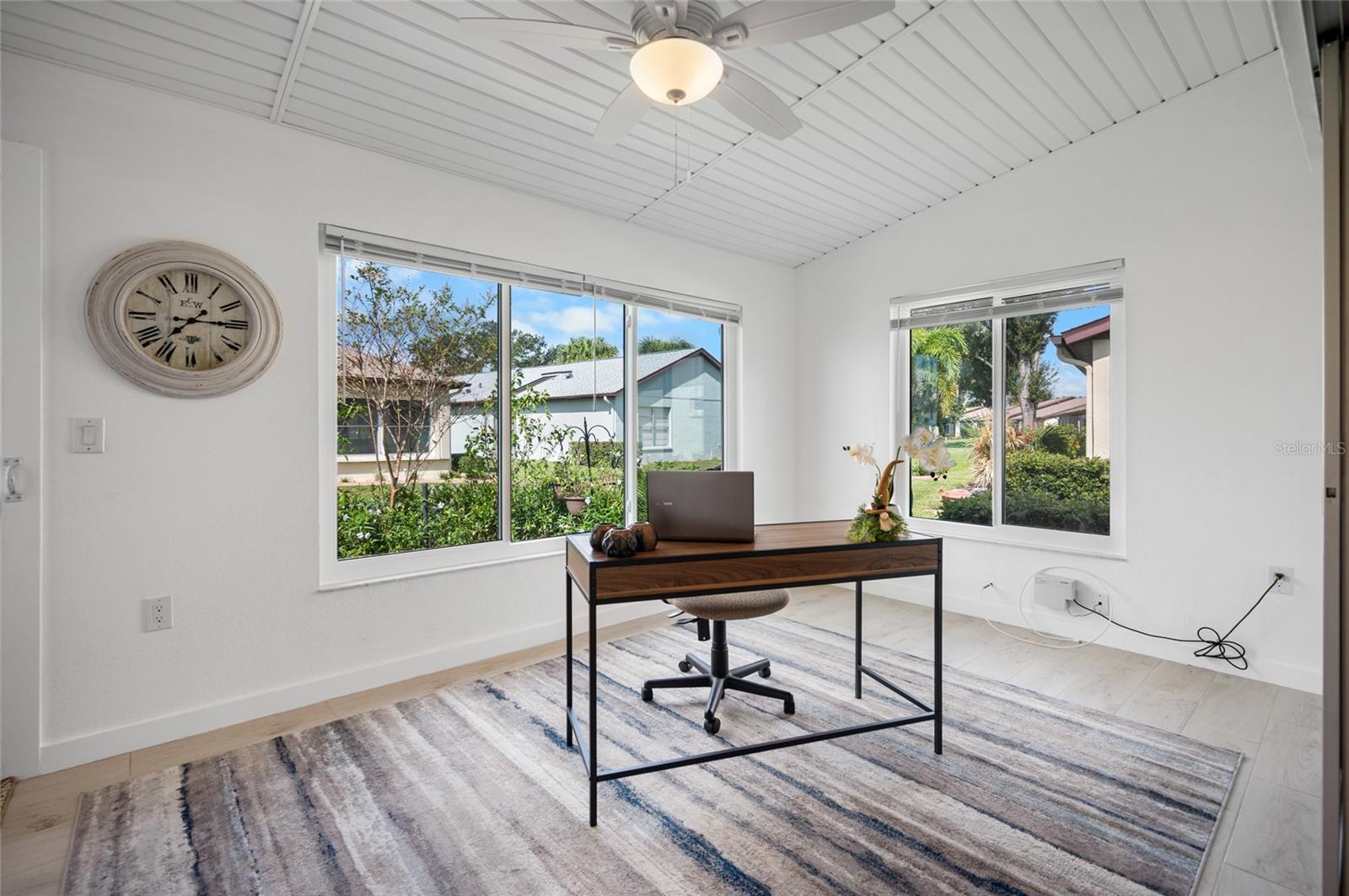 Discover carefree Florida living in this beautifully updated villa located in Foxwood, one of Englewood's most sought-after and welcoming 55+ COMMUNITIES, where comfort, convenience, and lifestyle come together beautifully. This updated, income-producing villa offers an exceptional opportunity whether you're planning your Florida escape, downsizing in style, or making a smart investment. Enjoy total peace of mind with major upgrades already completed, including a NEW ROOF, NEW IMPACT WINDOWS, and NEW WATER HEATER. ***Inside, the thoughtfully designed SPLIT FLOOR PLAN FEATURES TWO SPACIOUS PRIMARY SUITES, each with its own fully renovated bathroom, making this home ideal for hosting guests while maintaining privacy. The interior has been freshly painted and is filled with natural light, enhanced by CATHEDRAL CEILINGS that create a bright, open, and welcoming atmosphere. The spacious living and formal dining areas are perfect for entertaining or relaxing, while the kitchen offers a cozy dinette nook, pass-through window, and pocket door for added function. ~~~A bright and versatile Florida room provides excellent flex space for a home office, hobby room, or peaceful sitting area, with pocketing doors that allow you to close it off or open it up for easy flow into the main living areas. Step outside to your PRIVATE BACK PATIO, the perfect spot for morning coffee, weekend BBQs, or soaking up the Florida sunshine. The primary suite is a true retreat, featuring TWO WALK-IN CLOSETS and a stunning en suite bathroom with QUARTZ COUNTERTOPS and modern tile, while the guest suite offers its own beautifully upgraded bath with GRANITE COUNTERTOPS and a pocket door for privacy. Additional features include a dedicated LAUNDRY ROOM WITH EXTRA CABINETRY and a GARAGE WORKSPACE ideal for storage, hobbies, or projects. ***Foxwood residents enjoy an impressive lineup of amenities built for an active, social lifestyle, including a sparkling COMMUNITY POOL AND SPA, tennis and pickleball courts, shuffleboard, and a lively clubhouse hosting regular social events. Just minutes away, historic Dearborn Street offers farmers markets, live concerts, and an inviting mix of restaurants and boutiques. Relax on Englewood or Manasota Beach, tee off at nearby golf courses, or take advantage of exceptional fishing and boating opportunities. ***Schedule your private showing today and start living the Florida lifestyle you've been dreaming of.