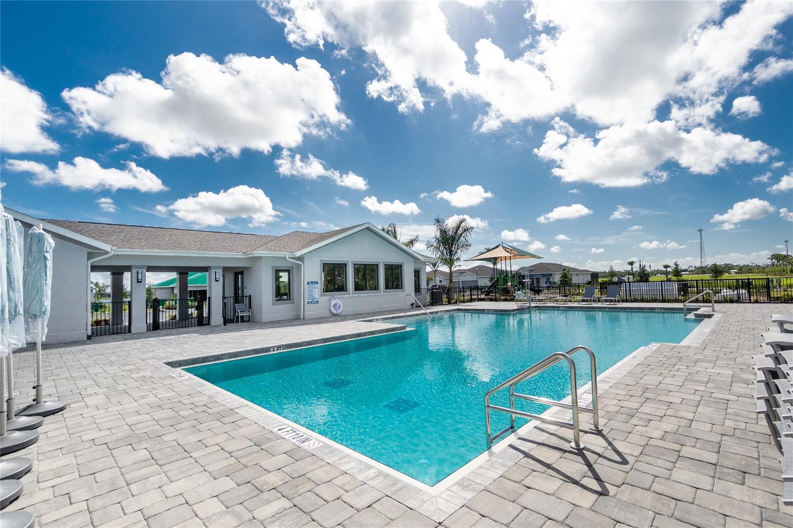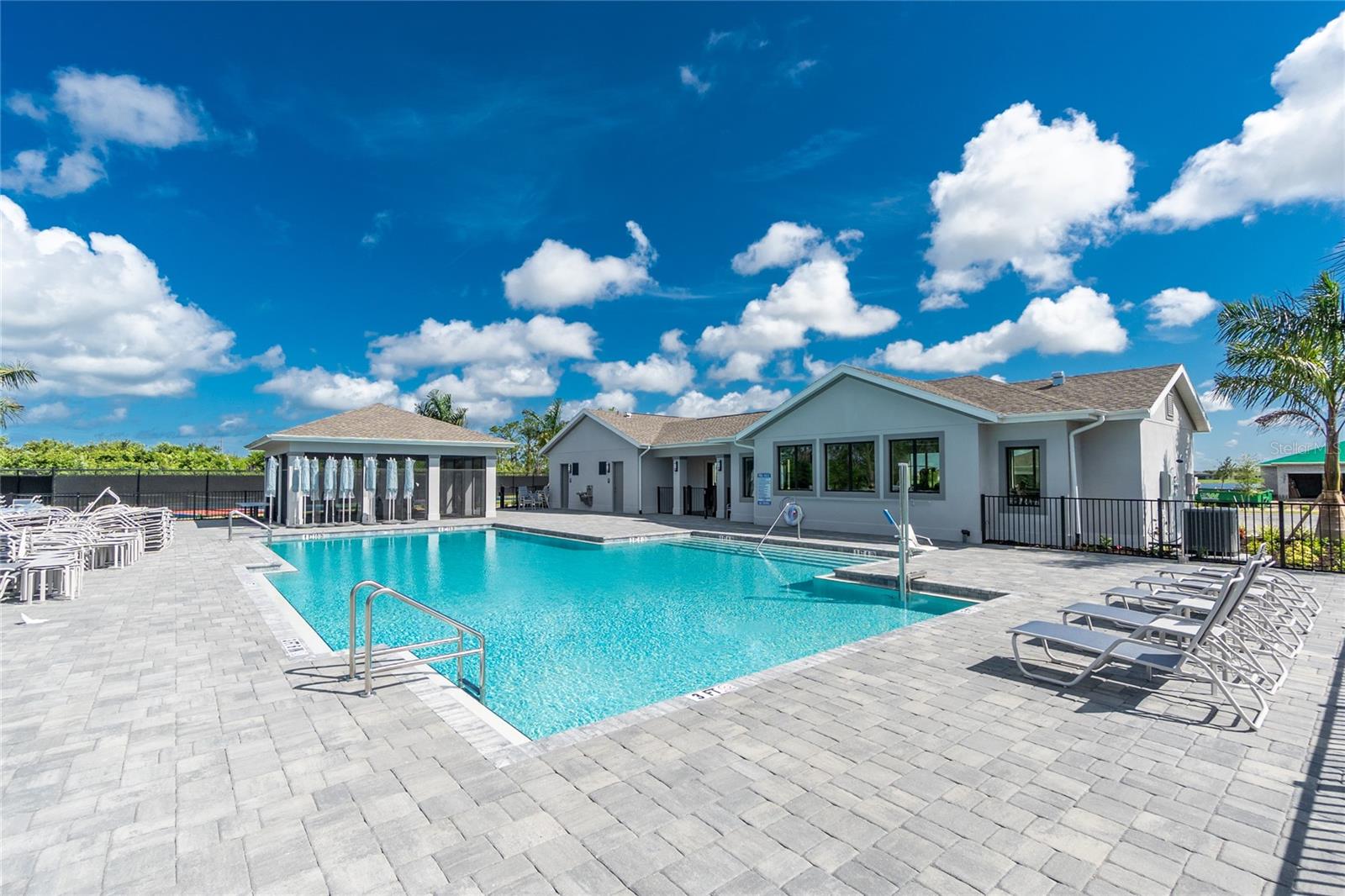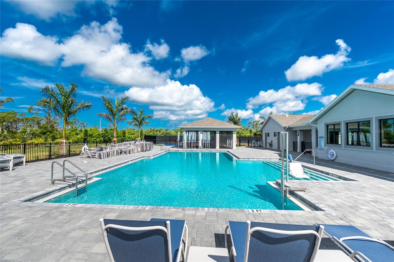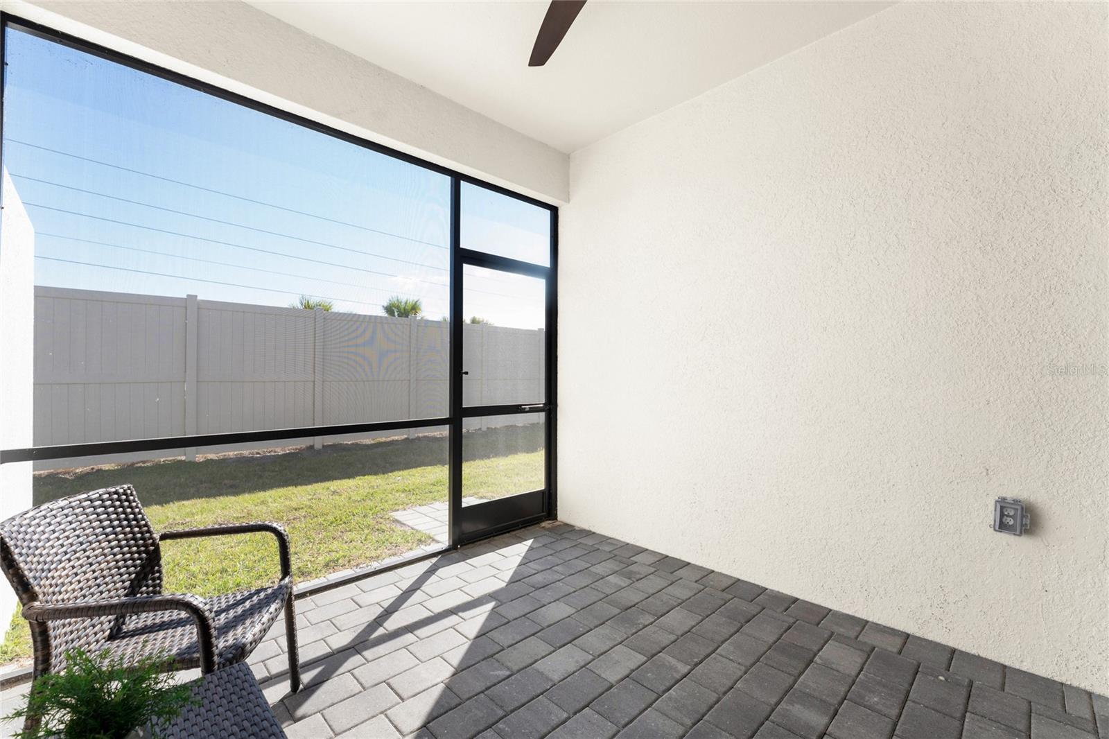 Welcome to Palm Lake at Coco Bay, a gated, master planned community in Englewood where coastal living meets modern, easy comfort. Built in 2024 by Lennar Homes, this beautifully maintained three bedroom plus den, two bathroom villa is ideal for anyone seeking a low maintenance, active Florida lifestyle. As an added bonus, this property has a Letter of Map Revision from FEMA, moving it into the X Flood Zone. A paver driveway sets the tone as you arrive, leading into a bright, open layout that is very welcoming. Diagonally set tile flooring flows throughout the home, there are impact windows and doors, and a like new condition that lets you move right in and start enjoying the good life. The kitchen is designed for both everyday living and entertaining, opening seamlessly to the great room and featuring quartz countertops, an abundance of white shaker style cabinetry, a breakfast bar, and a spacious closet pantry. Sliding glass doors extend the living space outdoors to a covered, screened paver lanai, the perfect spot to enjoy a quiet morning with a book or unwind in the evening with your favorite cocktail. The ensuite primary bedroom is a peaceful retreat, offering a walk-in closet, a walk-in shower, and dual separate quartz topped vanity sinks. The guest bedroom includes a reach-in closet, while the guest bathroom features a quartz topped vanity and a shower tub combination, ideal for visiting friends or family. An interior laundry room adds convenience along with extra storage space. Life at Palm Lake at Coco Bay is all about balance. The community offers a vibrant blend of relaxation and activity, with a clubhouse, resort style pool, and pickleball courts that make it easy to meet neighbors and enjoy friendly competition. Sidewalk lined streets invite evening strolls and morning walks, adding to the welcoming neighborhood feel. Quarterly HOA fees cover lawn maintenance, irrigation, and internet, allowing you more time to enjoy everything Southwest Florida has to offer. Located at 8117 Shore Lake Drive, this home is conveniently less than six miles from the beach and offers easy access to shopping, dining, and entertainment in both Englewood and Boca Grande. This is Florida living done right, simple, stylish, and designed for enjoying every day.
