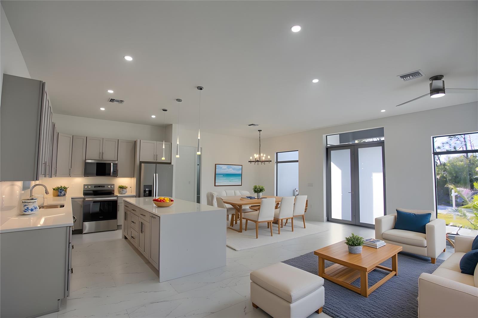 One or more photo(s) has been virtually staged. SOME PHOTOS ARE VIRTUALLY STAGEDStunning contemporary luxury home located on the waterfront in the highly sought-after boating community of South Gulf Cove. This bright and inviting 4 bedroom, 3 bath property offers 1991 sqft of living space...Very open concept!, with soaring ceilings, porcelain tile flooring throughout and designer finishes at every turn. The gourmet kitchen is a true showstopper-featuring premium cabinetry, sleek countertops, high-end appliances and an outdoor kitchen and serene waterfront views, perfect for entertaining or simply relaxing in your own private retreat! The split floor plan provides comfort and privacy for family and guests, including a luxurious primary suite with spa-inspired bath. With direct access to the community's canal system, boating enthusiasts will love the quick ride to open water. Located just minutes from exceptional shopping, restaurants,, golf courses and of course, the pristine Gulf Beaches of Southwest Florida. This home blends contemporary elegance with a true resort-style lifestyle.Some photos have been virtually staged.