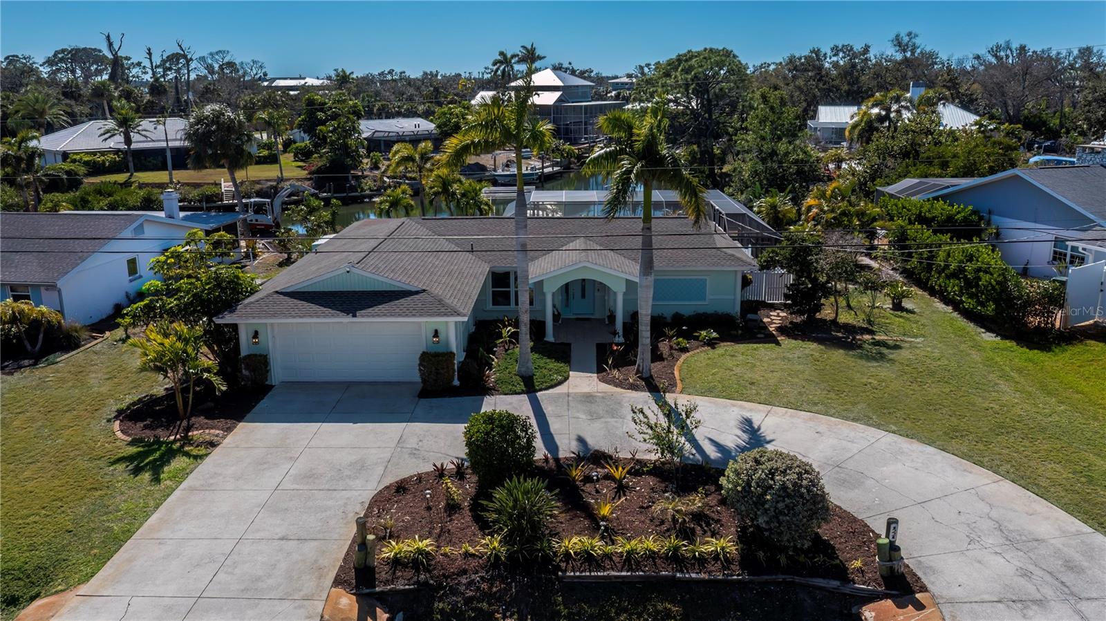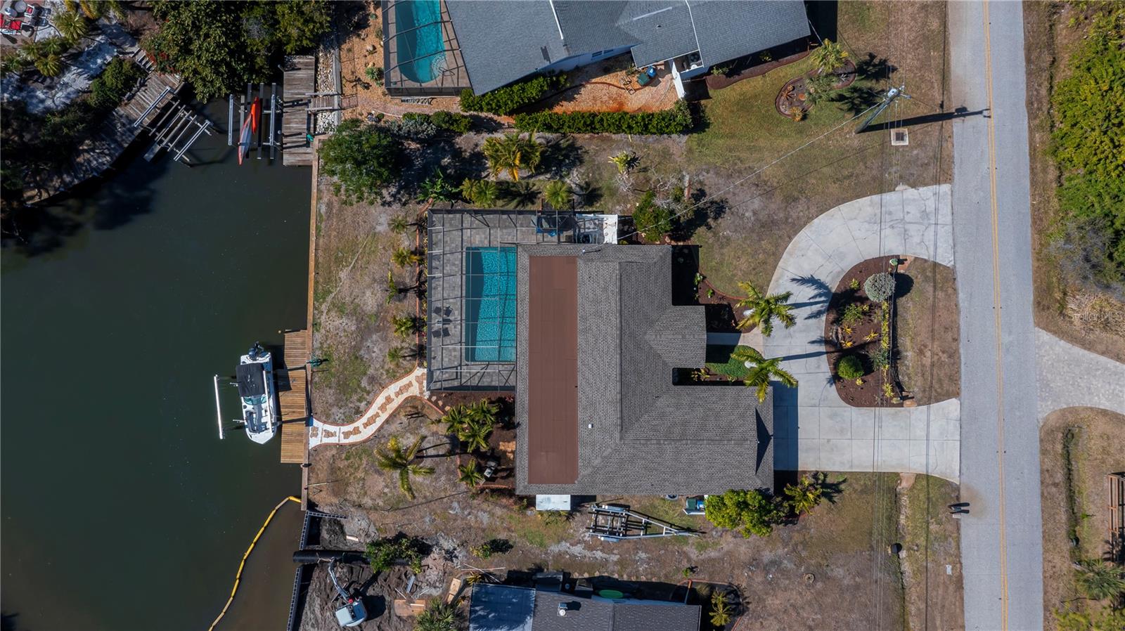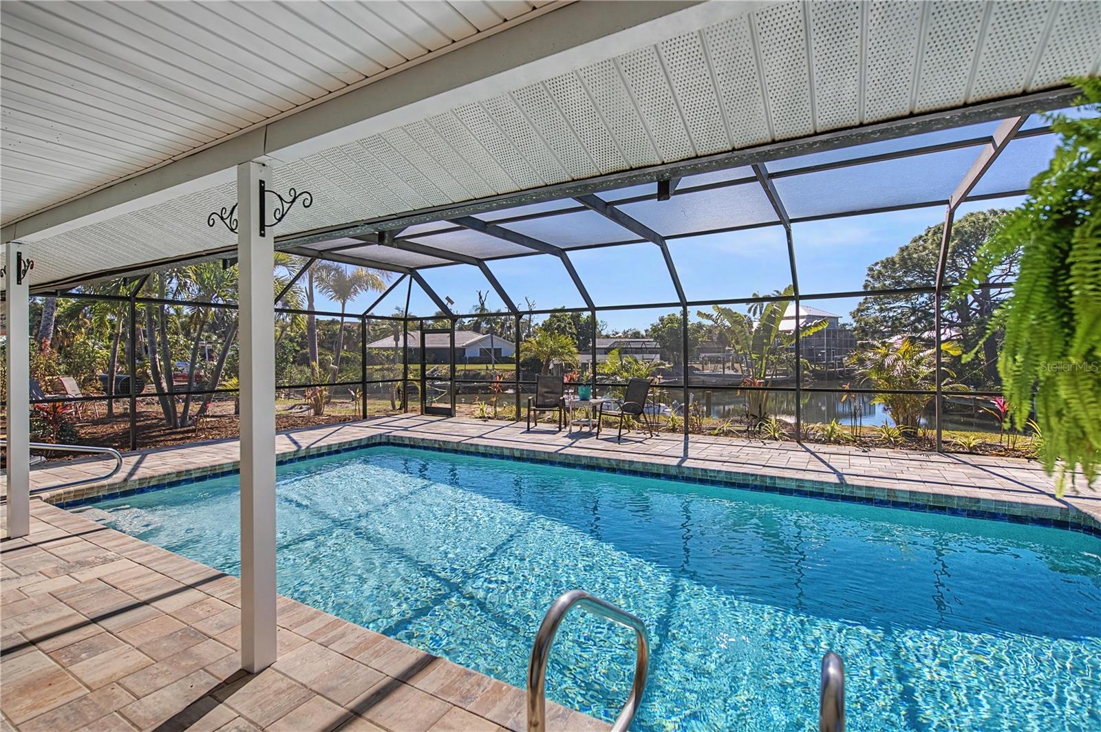 Welcome to "Sunset Point on Lemon Bay" where refined coastal living meets an effortless boating lifestyle--just steps from your own backyard. Set along 85 feet of premier saltwater frontage, this exceptional residence overlooks an extra-wide canal with immediate access to Lemon Bay, placing open water within minutes of departure. A brand-new 13,000-lb boat lift and 35' dock create the ultimate setup for boating enthusiasts, while nightly sunset views and frequent visits from manatees and native wildlife elevate the experience to something truly special. Arriving home, an oversized circular driveway framed by two majestic Royal Palms sets a tone of understated grandeur. Inside, the home has been meticulously updated with no detail overlooked--expansive marble tile flooring, crown molding, wide baseboards, and seamless indoor-outdoor living through pocketing sliders from both the living and dining areas. Designed for entertaining, the outdoor living space is nothing short of spectacular. A massive 1,850 sq ft screened enclosure surrounds the heated, recently resurfaced pool, complemented by a covered brick-paver lanai and fully equipped summer kitchen--perfect for hosting sunset gatherings after a day on the water. A pool-access bath adds convenience and function for guests. The modern coastal kitchen features marble countertops, stainless steel appliances, a generous breakfast bar, chic pendant lighting, and designer tile backsplash, seamlessly connecting to the home's open living areas. A split-bedroom layout ensures privacy, while the primary suite offers a tranquil retreat complete with a private sitting room and French doors leading to the backyard oasis. The spa-inspired en-suite bath showcases dual vanities, granite countertops, and a seamless glass shower. Recent upgrades include a new roof (2022), new A/C (2024), new sprinkler system (2024), new pool heater (2024), fresh interior and exterior paint (2024), and the convenience of city water and sewer. The bonus space in the master bedroom could easily be converted to a third bedroom! Perfectly positioned in a rare neighborhood of estate-sized homes and properties, this residence offers both privacy and proximity--just 3 miles to historic Dearborn Street with its farmers markets, car shows, live entertainment, dining, and boutique shopping, minutes to four stunning Gulf beaches, and a short drive to Venice. This is more than a home--it's a waterfront lifestyle defined by sunsets, serenity, and seamless access to the open water. Schedule your showing and experience it for yourself TODAY!
