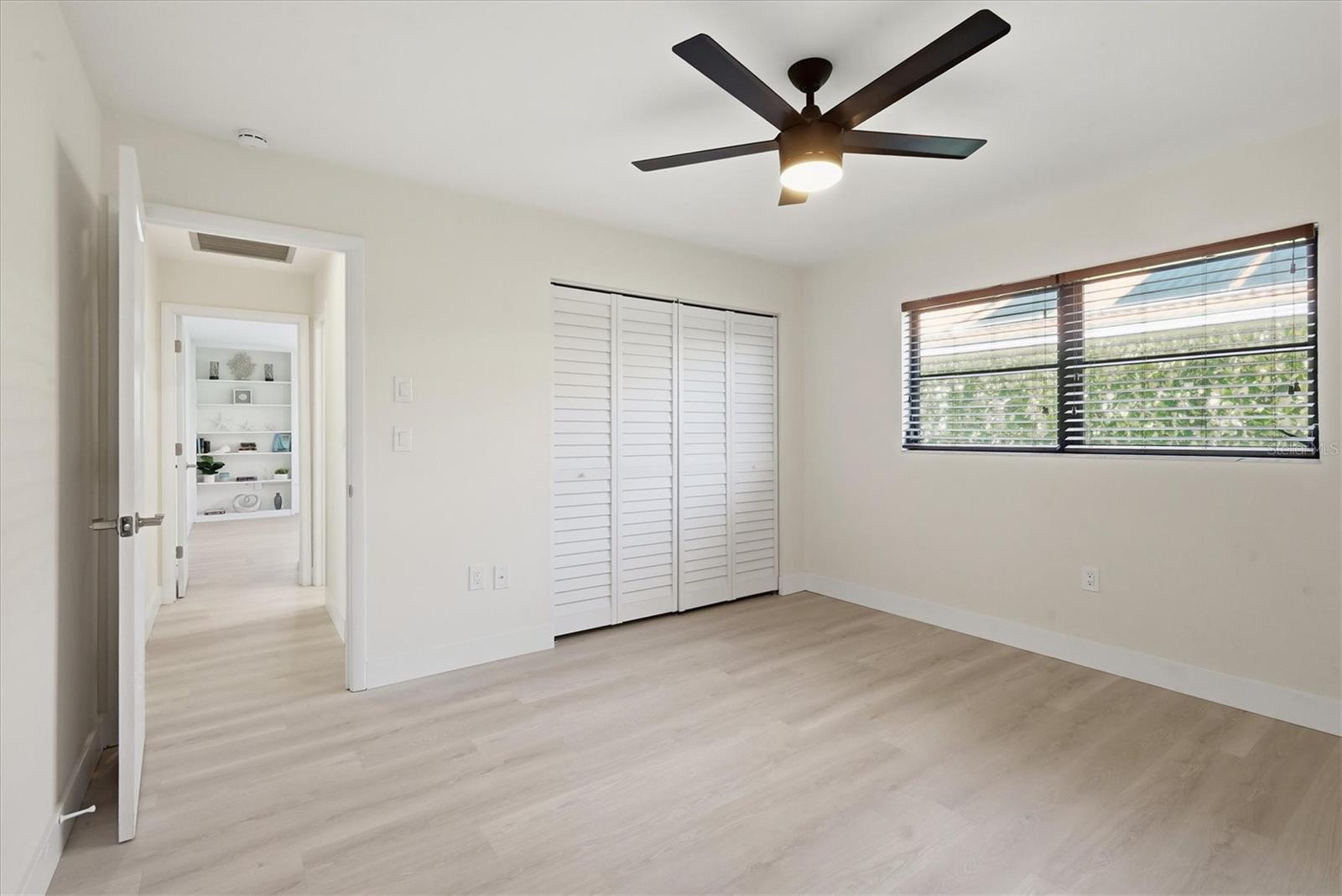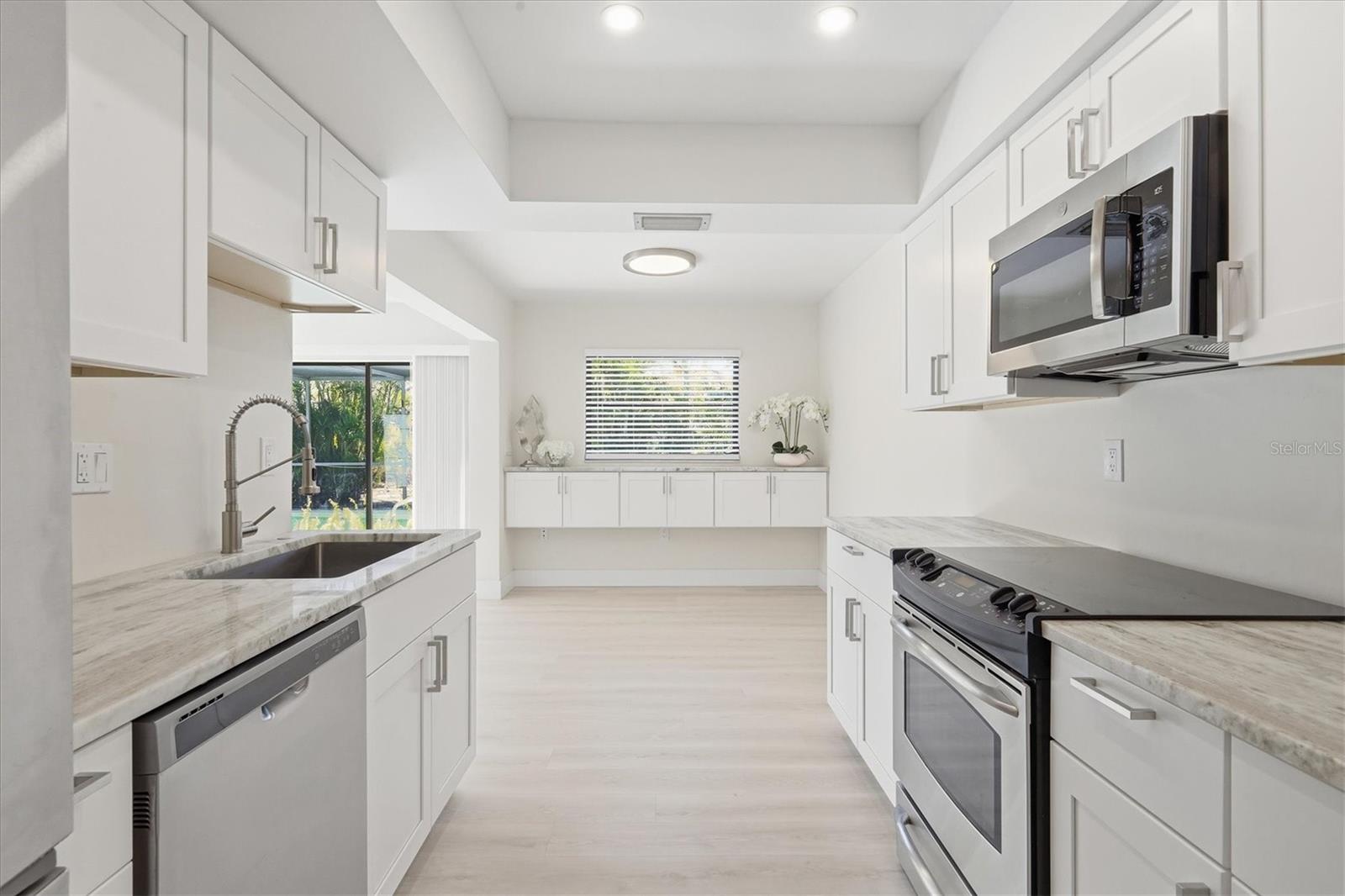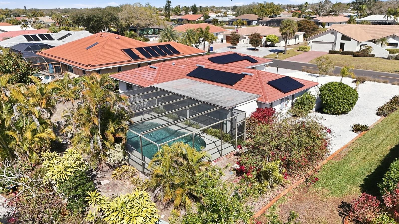 Incredible Value - improvements and upgrades galore in this renovated and updated, 3-bedroom, 2-bath, 2-car garage, split-floor plan Florida-style home with a light, bright open floor plan. This home is ready to move into, featuring a newer 2024 Tile Roof, newer A/C, newer electrical panel, newer hot water heater, New flooring throughout. New kitchen with designer coastal wood cabinetry, granite counters, stainless steel appliances, and an innovative breakfast bar in the breakfast nook. New interior doors, hinges, and French handle locksets. Newly renovated bathrooms featuring new vanities, sinks, and fixtures. New light fixtures and ceiling fans throughout the entire home. New Base Moulding. Fresh paint inside and out. Newer hurricane-rated garage door. Plumbing drains lined in 2025. Newer solar panels are owned outright. Modern double-glass door entryway. Entertaining is a breeze with 30' of sliding glass doors connecting the indoors to the outside spaces. The Primary Bedroom is en-suite with a walk-in closet, and private, renovated bathroom with a new vanity, and tub/shower combo with new tile. This floorplan has no wasted space, and flows easily through the privacy-enhancing pocket door to the guest wing, where you'll find the 2nd and 3rd bedrooms, and an updated guest bathroom. Your spirits lifted as you enter this home and gaze across the expansive great room, past the equally expansive Florida room, and out past the kidney-shaped pool to the large lanai area, and out to your private, tropical oasis backyard. Hurricane-rated garage door. Stoned area next to the driveway for extra parking. X Flood Zone. Beautiful mature landscaping. Note: The public records list this home as having a newer effective year built. Close to beaches, public boat ramps, shopping, restaurants and dining, playhouses, theatres, libraries, recreation centers, parks with playgrounds and walking/biking trails, sports fields and complexes, YMCA's, fitness centers, and medical facilities. Quick and easy access to main roads and highways makes this community in a highly desirable location - a locale that's tucked away in a waterfront community that feels like a vacation getaway, yet so close to so many of Southwest Florida's attractions.