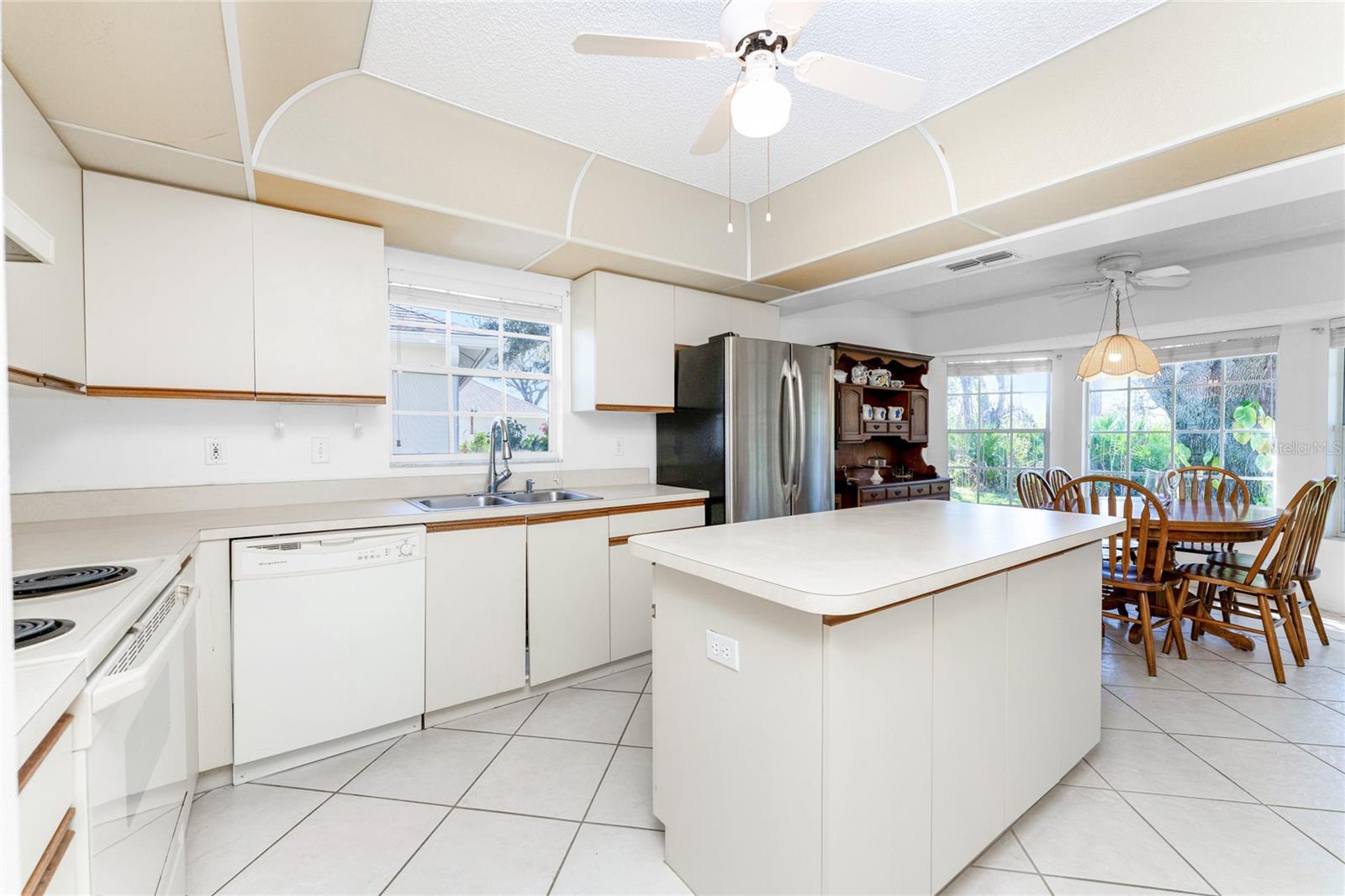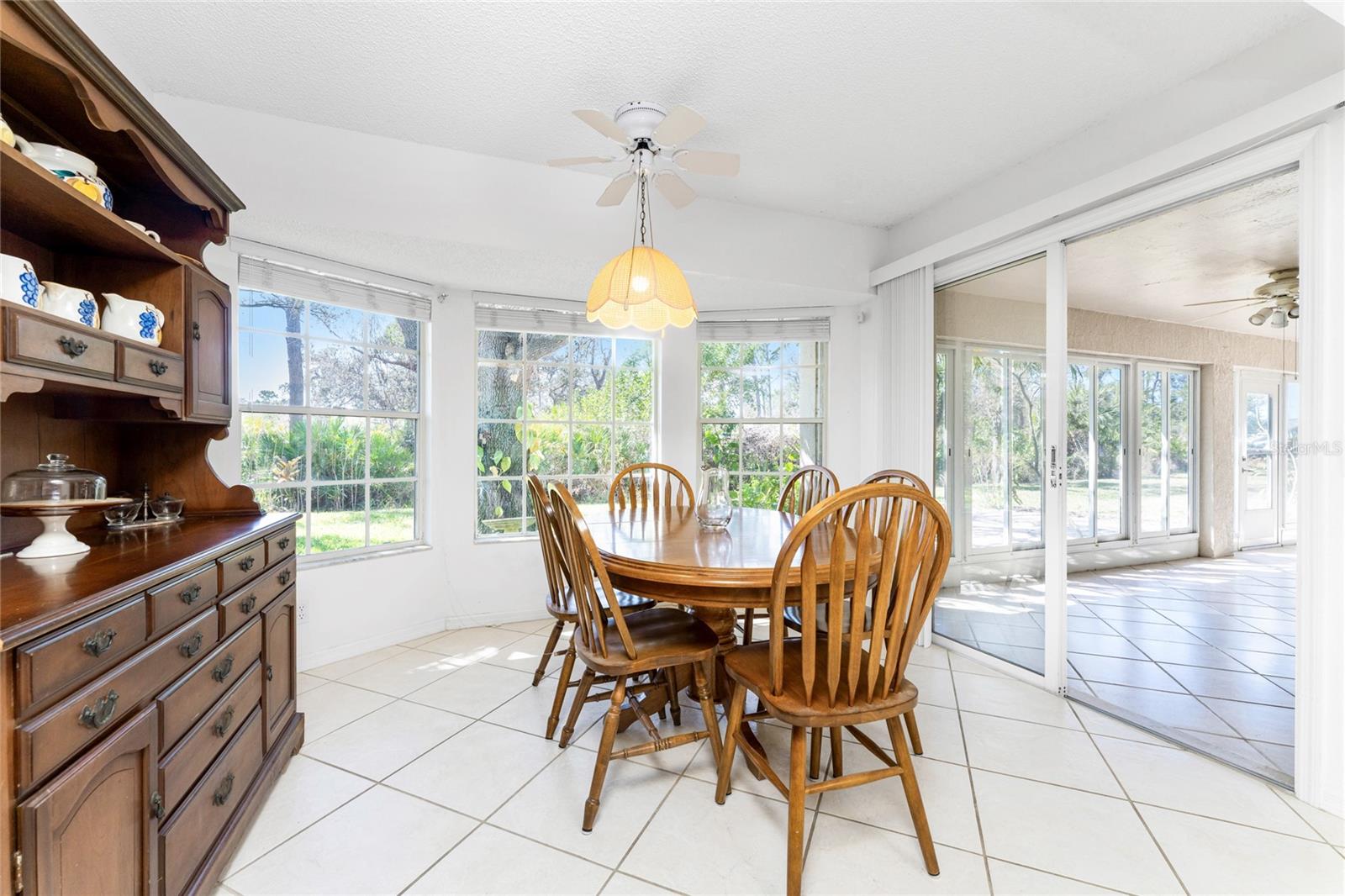 Enjoy Easy, Maintenance-Free Living in the 55+ Gated Park Forest Community! Nestled beneath mature oak trees and surrounded by established landscaping, this light and bright two bedroom plus bonus room, two bathroom home offers a spacious open floor plan and a wonderful opportunity to update at your own pace. For peace of mind, this home is situated in the X flood zone. A screened and tiled entry welcomes you inside where vaulted ceilings and triple sliding glass doors in the great room create an open, airy feel. Neutral tile and carpeting run throughout, and the glass enclosed, all weather Florida room adds valuable flex space for relaxing, hobbies, or entertaining year round. The kitchen provides generous cabinet storage, a center island for meal prep, a closet pantry, a bay window overlooking the peaceful backyard, and sliding door access to the lanai. The layout flows comfortably into the main living areas, making everyday living and casual gatherings easy. The primary bedroom retreat is well sized with room for larger furnishings, two walk-in closets, and sliding glass doors that draw in natural light from the Florida room. The ensuite bathroom features an oversized vanity with makeup area and a walk in shower. Guests will appreciate their own bedroom and nearby bathroom with a convenient tub and shower combination. An oversized laundry room offers additional storage and workspace. Out back, enjoy the wooded setting that provides a sense of privacy whether relaxing in the enclosed Florida room or grilling on the open air paver patio while listening to the sounds of nature in the evening. Embrace the maintenance free lifestyle and spend more time enjoying community amenities such as the heated pool, tennis courts, shuffleboard, and clubhouse, with on site storage available for your boat or RV. Park Forest offers a full social calendar and a welcoming neighborhood atmosphere, all less than 10 miles from Gulf beaches, world class fishing, boat ramps, hiking trails, parks, golf courses, shopping, and medical facilities. This is a wonderful opportunity at 257 Park Forest Boulevard to enjoy the Florida lifestyle you have been waiting for.