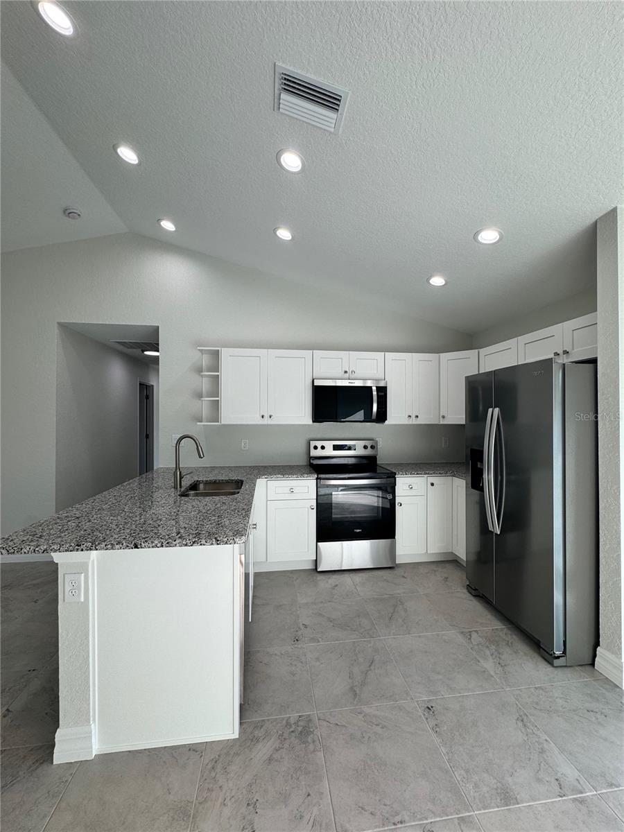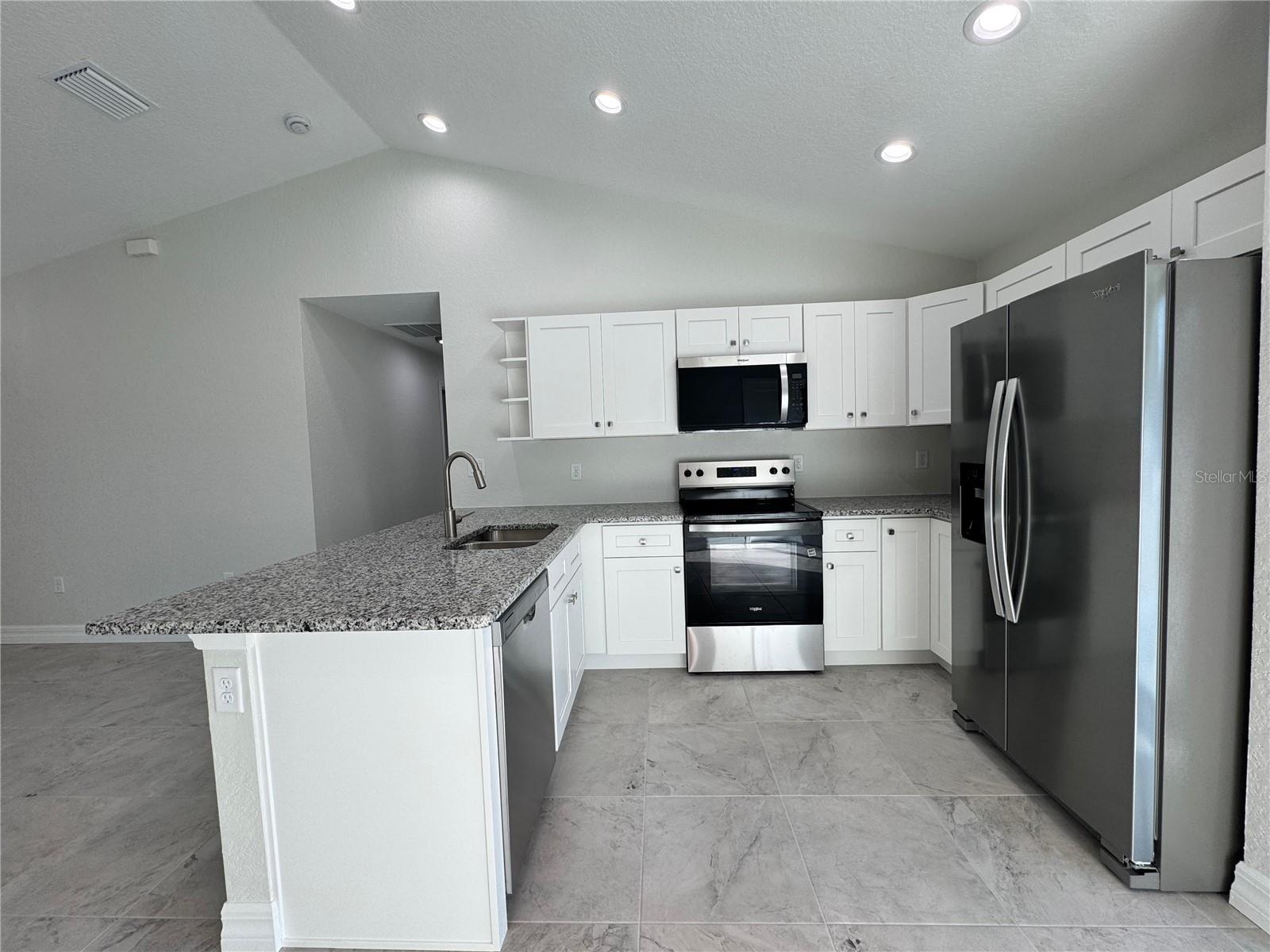 Completed New Construction- MOVE IN READY. Home offers impact windows and doors, tile throughout- no carpet, granite countertop. High Elevation and X zone. Get ready to fall head over heels for this absolutely adorable 3-bedroom, 2-bath home in Murdock, perfectly designed for the first-time buyer or seasonal visitors. This sweet abode welcomes you with TILE flooring throughout- NO CARPET, ensuring a clean and modern feel. The heart of the home, its darling kitchen, which boasts granite countertops, charming wood cabinets with a soft-close feature, a lazy Susan, sleek stainless appliances, and a handy eat-in bar perfect for quick breakfasts or casual chats. There is modern can lighting in both the kitchen and family room, and ceiling fans in every room. You'll love the spacious walk-in closet and large shower in the primary suite. The washer and dryer are already included, making moving day a total breeze. In the garage there is a handy utility sink along with a peg board in the garage for all your tools. Though the sliding door there is a concrete pad already poured for a future lanai or just enjoying the large back yard. Come check out this sweet home. Why pay rent when you can own.