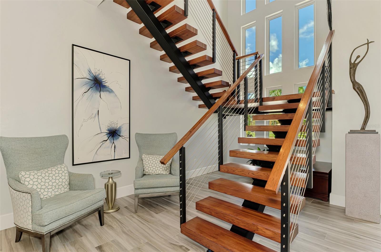 RIVERSIDE of RIVERWOOD - Exclusive Modern Florida Living on a Grand Scale. Captivating panoramic views of the Myakka River, lush preserves, and breathtaking sunsets are enjoyed from every level of this spectacular 2021-built riverfront estate. This well-constructed two-story residence with private elevator offers 4 bedrooms, 4.5 baths, a den, and over one acre of prime waterfront property, truly a rare riverfront jewel. From the moment you arrive, the architectural curb appeal impresses. An extended palm-lined driveway leads to an oversized three-car garage plus golf cart bay. The welcoming foyer opens to a dramatic great room with soaring 22-foot coffered ceilings and a wall of glass framing the expansive lanai, resort-style pool and spa, and tranquil river beyond. Contemporary design, superior craftsmanship, and designer lighting, window treatments, tile, fixtures, and flooring are showcased throughout. The gourmet kitchen is designed for entertaining, offering sprawling granite countertops, oversized center island, wet bar, walk-in pantry, top-of-the-line appliances, and adjacent formal dining. Tray ceilings, abundant windows, and sliding glass doors flood the home with natural light, creating seamless indoor-outdoor living. The main level features a private en-suite bedroom, den with direct lanai access, second bedroom ideal as an office, half bath, and ample storage. Outdoor living is exceptional with a fully equipped kitchen with gas grill and smoker and convenient full pool bath. Ascend the decorative wood staircase or elevator to the second-floor primary retreat featuring a private balcony overlooking the river, dual walk-in closets and vanities, freestanding tub, and expansive Roman shower. An additional guest bedroom with full bath and upstairs laundry complete the level. Additional highlights include impact-rated hurricane and UV-protected windows and doors, handicap-accessible baths, whole-house oversized generator, and 1,000-gallon propane tank. Residents enjoy private fishing, canoeing, and kayaking from the Riverside pier with frequent dolphin, snook, and redfish sightings.Located within Riverwood, a premier resort-style community offering Riverwood Golf Club, activity center with lap and resort pools, fitness center, pickleball, tennis, croquet, bocce, art room, library, dog parks, and vibrant social events. Optional memberships available for golf, dog park, and private beach club on Manasota Key. Ideally located near spring training for the Tampa Bay Rays and Atlanta Braves, Gulf beaches, Charlotte Harbor, Punta Gorda, Venice, Englewood, and Boca Grande, positioned between Sarasota and Fort Myers. A rare opportunity to own a magnificent riverfront estate blending coastal elegance, nature, and luxury resort living.