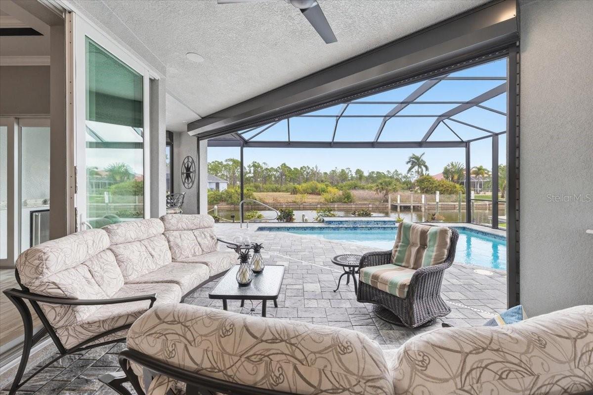 Luxury Waterfront Living in South Gulf Cove - Custom 3BR/3BA Pool HomeExperience the very best of Florida waterfront living in this stunning 3-bedroom, 3-bathroom canal-front pool home located on the peaceful Zephyr Waterway in highly desirable South Gulf Cove. Built just three and a half years ago by Turn Key Custom Homes, this immaculate residence blends modern luxury, thoughtful design, and effortless indoor-outdoor living.From the moment you arrive, the home's beautiful paver patio and welcoming front entrance set the tone. Step inside and you'll immediately be impressed by soaring 12-foot ceilings, elegant crown molding, and breathtaking water views framed by expansive 10-foot impact-resistant sliding glass doors that open seamlessly to the lanai.A Private Outdoor ParadiseThe spacious lanai is designed for both relaxation and entertaining. One side features a comfortable sitting area with a cozy electric fireplace, while the other boasts a fully equipped outdoor kitchen, perfect for hosting family and friends.Enjoy Florida's sunshine in the heated pool, complete with a tranquil waterfall feature and whole-home Sonos surround sound system creating the perfect atmosphere.For true waterfront living, a paver patio spans the entire 80-foot seawall, offering the perfect place to relax by the canal, fish from the dock, or watch boats glide by.Spacious and Elegant InteriorThe luxurious master suite serves as a private retreat, featuring a large walk-in closet, dual vanities, and a spa-like Roman shower.The chef's kitchen is both stylish and functional with abundant cabinetry, an oversized 8-foot island, and a massive walk-in pantry ideal for storage and entertaining.Each guest bedroom is generously sized and includes its own en-suite bathroom, offering privacy and comfort for visitors. Bedroom three also includes a spacious walk-in closet.Exceptional Garage & Storm ProtectionThe oversized garage is a dream for hobbyists and enthusiasts, offering 28 feet of depth, 12-foot ceilings, and extensive built-in storage shelving--perfect for vehicles, tools, and recreational equipment.Designed with Florida living in mind, the home also includes hurricane-ready features, such as steel electric roll-down shutters for the lanai and front entry. A full canal and city water irrigation system keeps the landscaping lush year-round.Your Waterfront Paradise AwaitsWith its combination of modern luxury, exceptional outdoor living, and peaceful canal views, this beautiful South Gulf Cove home offers the ultimate Florida lifestyle.Don't miss your opportunity to own this slice of waterfront paradise.