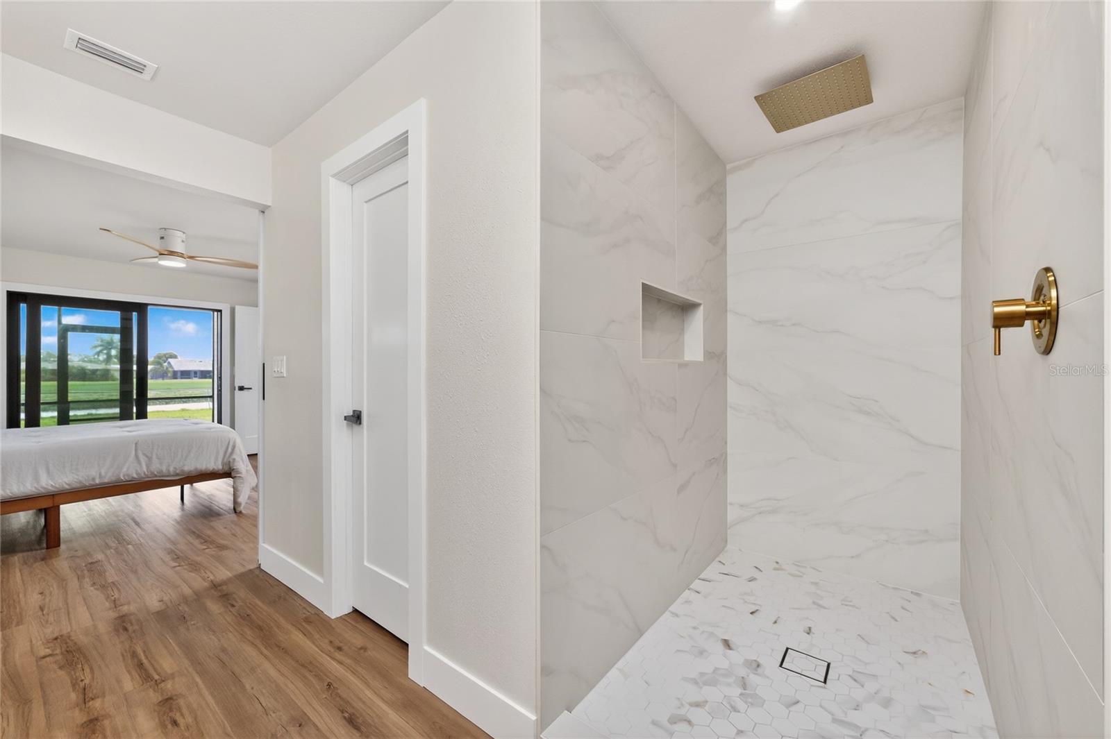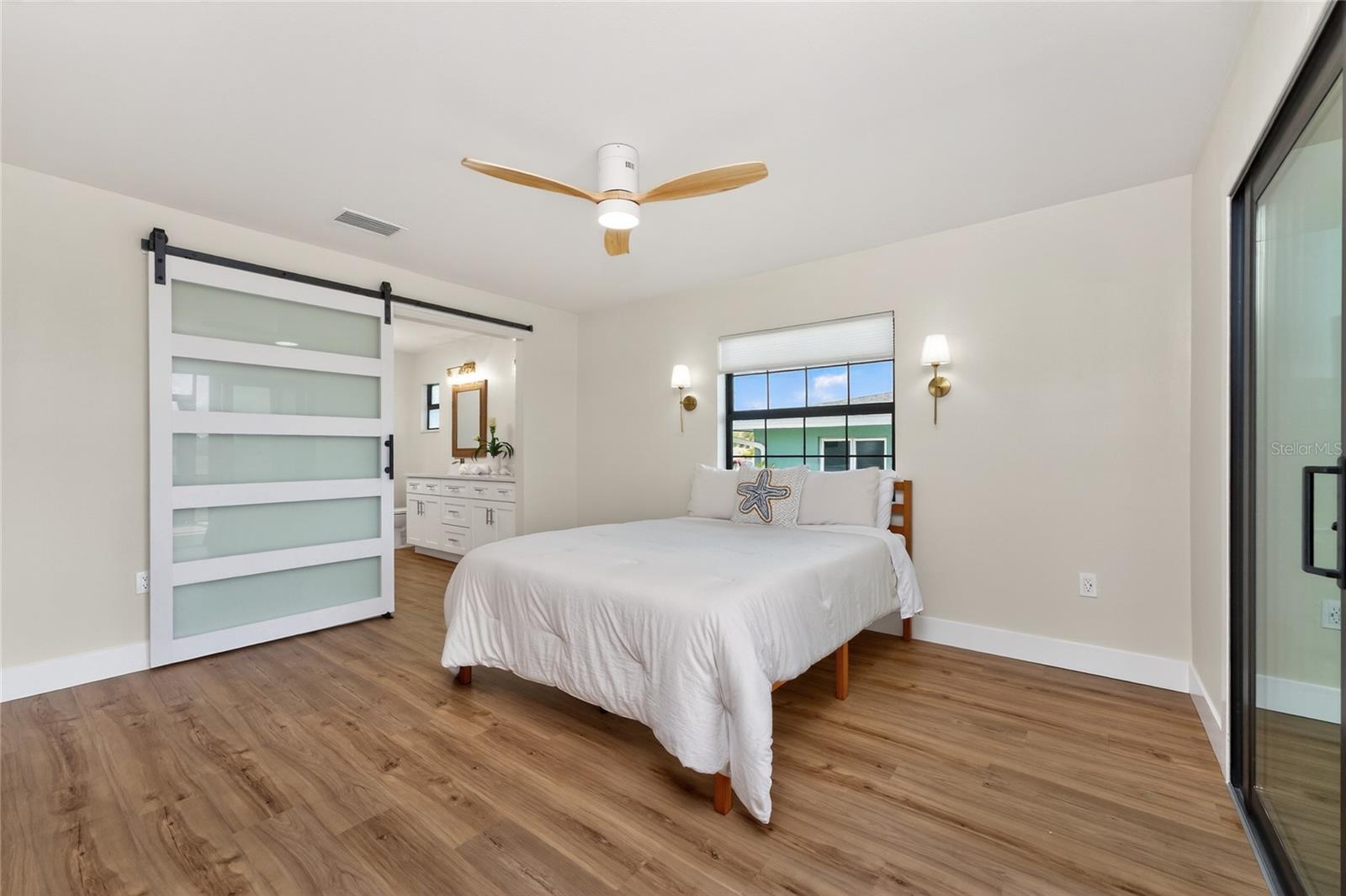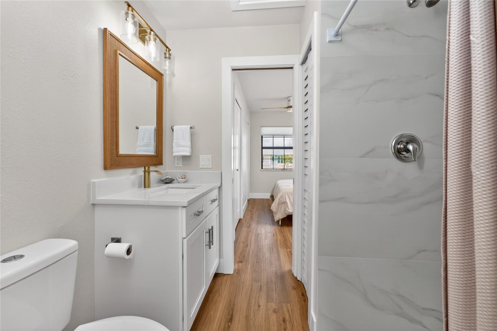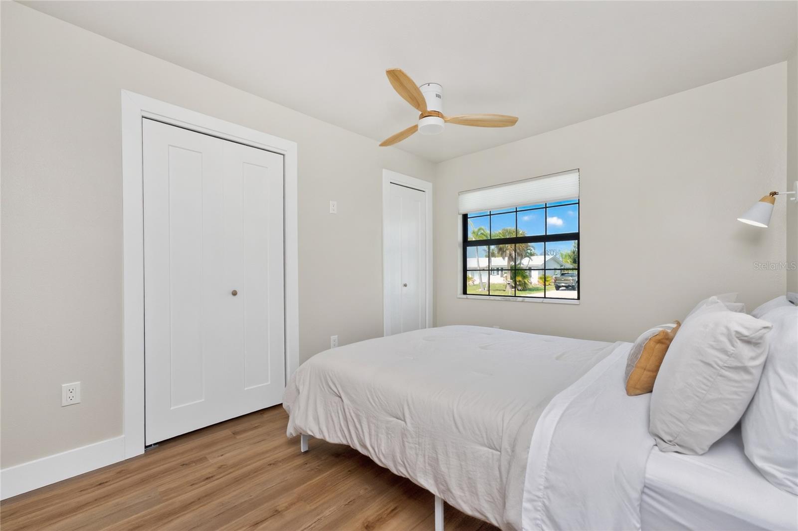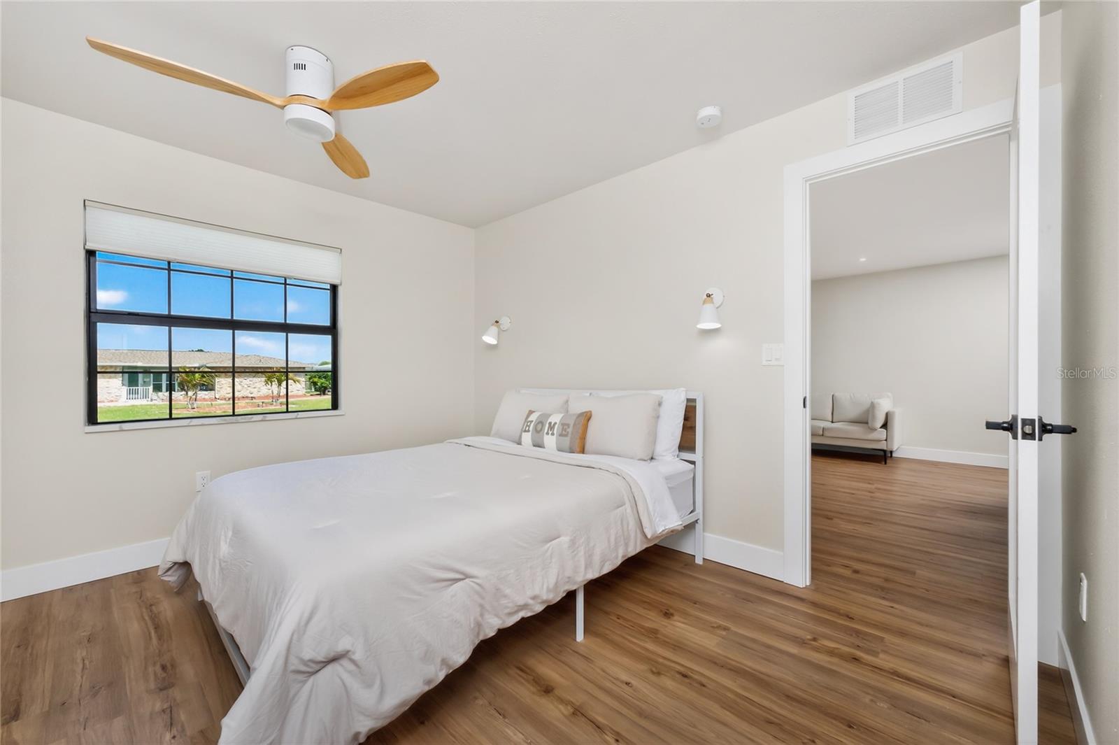 Modern Luxury Meets Beautiful Pond and Golf Course Views in This Fully Remodeled Oakland Hills Home! Enjoy peace of mind with impact windows and an impact garage door, an X flood zone classification for the home structure, a 2024 roof, and a complete interior renovation. The charming exterior, highlighted by a long driveway, refreshed landscaping, and inviting curb appeal, sets the stage for the stylish updates found inside. Luxury vinyl plank flooring flows seamlessly throughout this two bedroom, two bathroom home, creating a cohesive and easy to maintain living space. Neutral paint tones and an open great room floor plan fill the home with natural light and create a bright, welcoming atmosphere. The beautifully updated kitchen features white shaker style cabinetry with soft close hinges, quartz countertops, custom hardware, a farmhouse sink, stainless steel appliances, and a large center island with pendant lighting for easy everyday living. The formal dining area offers flexibility with sliding glass doors that open to the screened patio, making it perfect as a dining room or additional family room space with easy access to outdoor living. The primary bedroom suite features sliding glass doors to the lanai, a spacious walk-in closet with a custom organizer system, and a barn style door leading to the private bathroom. Here you will find a dual sink vanity with quartz countertops and a large fully tiled walk-in shower with niche detail and a rain style shower head. The guest bedroom includes two reach-in closets and also functions as an ensuite with a beautifully updated bathroom featuring a quartz topped vanity and fully tiled walk-in shower. A convenient second door allows this bathroom to be accessed from the kitchen area as well. Step outside to the covered and screened patio with tile flooring that overlooks the backyard and the scenic pond and golf course beyond. The spacious yard offers room to add your own pool, expand the patio, or create a garden or outdoor entertaining area while enjoying peaceful water and golf course views as your backdrop for relaxing evenings under the stars. Located within the Oakland Hills section of Rotonda West, this deed restricted community offers an active Florida lifestyle with golf, tennis, pickleball, hiking trails, community events, and excellent fishing opportunities nearby. The home is also less than ten miles from Englewood Beach where residents can enjoy sunny days on the sand, waterfront dining, local restaurants and tiki bars, or beautiful Gulf Coast sunsets with live entertainment. From morning coffee overlooking the water and golf course to evenings enjoying the peaceful outdoor setting, this beautifully renovated home is ready to be enjoyed at 9 Oakland Hills Court.
