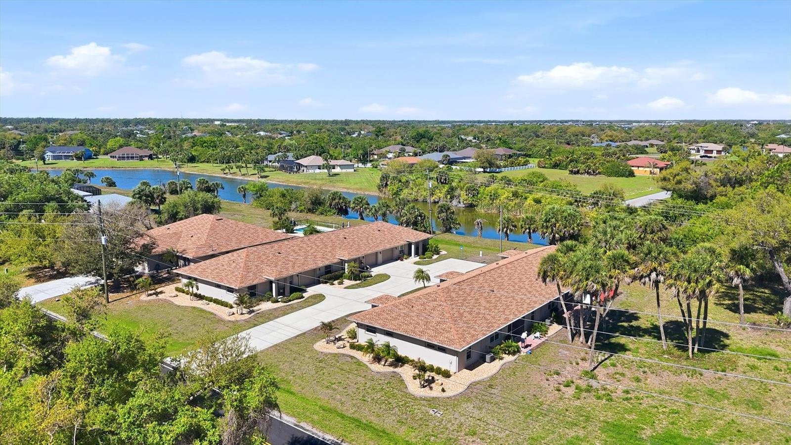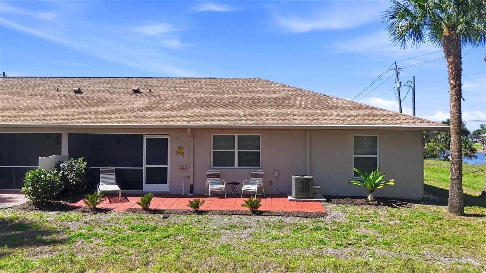 This charming 2005 end-unit VILLA offers 2 bedrooms, 2 bathrooms, and a coveted GARAGE, the perfect retreat for your getaway to PARADISE. Nestled in the desirable Rotonda West community, you'll be surrounded by lush GOLF COURSES and just a short drive to the GULF BEACHES. Located within the intimate Sunset House Condominium Association, only 8 total units, this villa enjoys a serene setting along the peaceful lake. A reasonable monthly fee covers exterior building and grounds maintenance plus access to the sparkling Sunset House COMMUNITY POOL, making ownership effortless. Inside, the home feels open and airy with vaulted ceilings and over 1,200 sq ft of comfortable living space. The kitchen features solid-surface counters, abundant cabinetry, a double-door pantry, and both a breakfast bar and dinette, perfect for casual Florida living. The split-bedroom layout provides privacy for you and your guests. The primary suite includes a spacious walk-in closet and a well-sized bathroom. A pocketing slider opens the living room to the covered, enclosed patio, offering a breezy transition to the backyard and the expansive pavered patio, ideal for morning coffee or sunset unwinding. The 22' x 13' garage easily accommodates a vehicle plus extra storage, an invaluable perk. Off the garage, you'll find a separate air-conditioned utility room with washer, dryer and double closet with shelving for more storage. This villa lives larger than your typical condo, and it's being offered fully furnished. Perfectly positioned in many ways, it delivers the peaceful Southwest Florida lifestyle so many dream of. Don't underestimate, and don't wait, opportunities like this are quickly scooped up.
