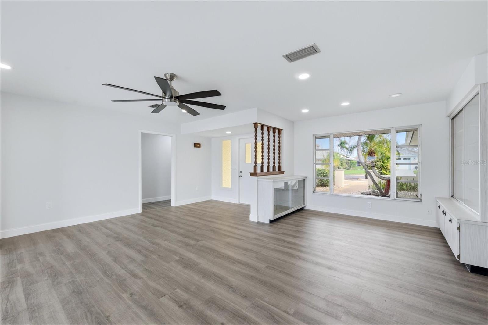 Live the ultimate Florida waterfront lifestyle on Forked Creek! This sailboat water property offers no fixed bridges and direct access to the Intracoastal Waterway and the Gulf of Mexico--bringing world-class boating right to your backyard. Situated in a desirable, family-friendly neighborhood close to schools, shopping, and dining, this well-maintained 4-bedroom, 3-bath home is full of potential and ready for your personal touch. Major updates are already in place, including a brand-new concrete seawall, new roof, and new A/C, giving you a strong foundation to create your dream home. Inside, you'll find spacious bedrooms, newer laminate flooring, and an updated, handicap-accessible primary bathroom. The kitchen offers a functional layout with a walk-in pantry, built-in desk, glass cutting board, and warmer drawer, while the family room features custom built-ins and glass display cases. Large picture windows and sliding glass doors showcase stunning water views and open to the outdoors, perfect for embracing indoor-outdoor living. A circular driveway adds convenience and curb appeal. Whether you're looking to renovate, invest, or design a custom waterfront retreat, this is a rare opportunity to own unbeatable views and direct Gulf access--make it your own piece of paradise! ??