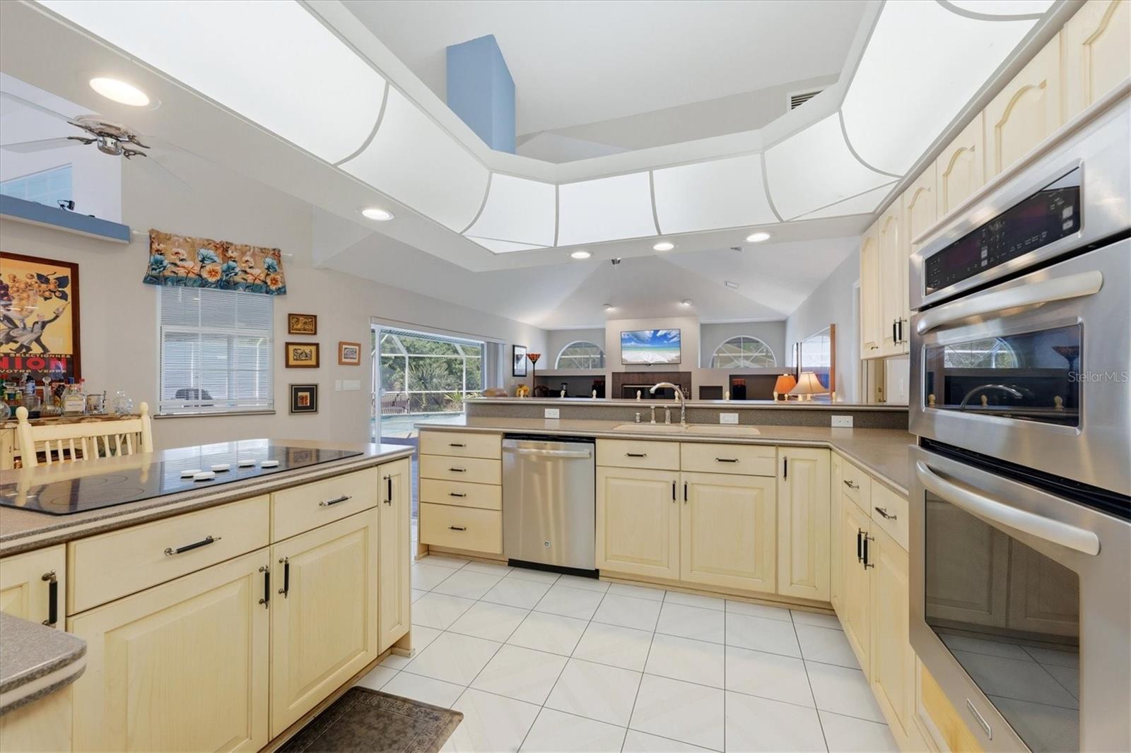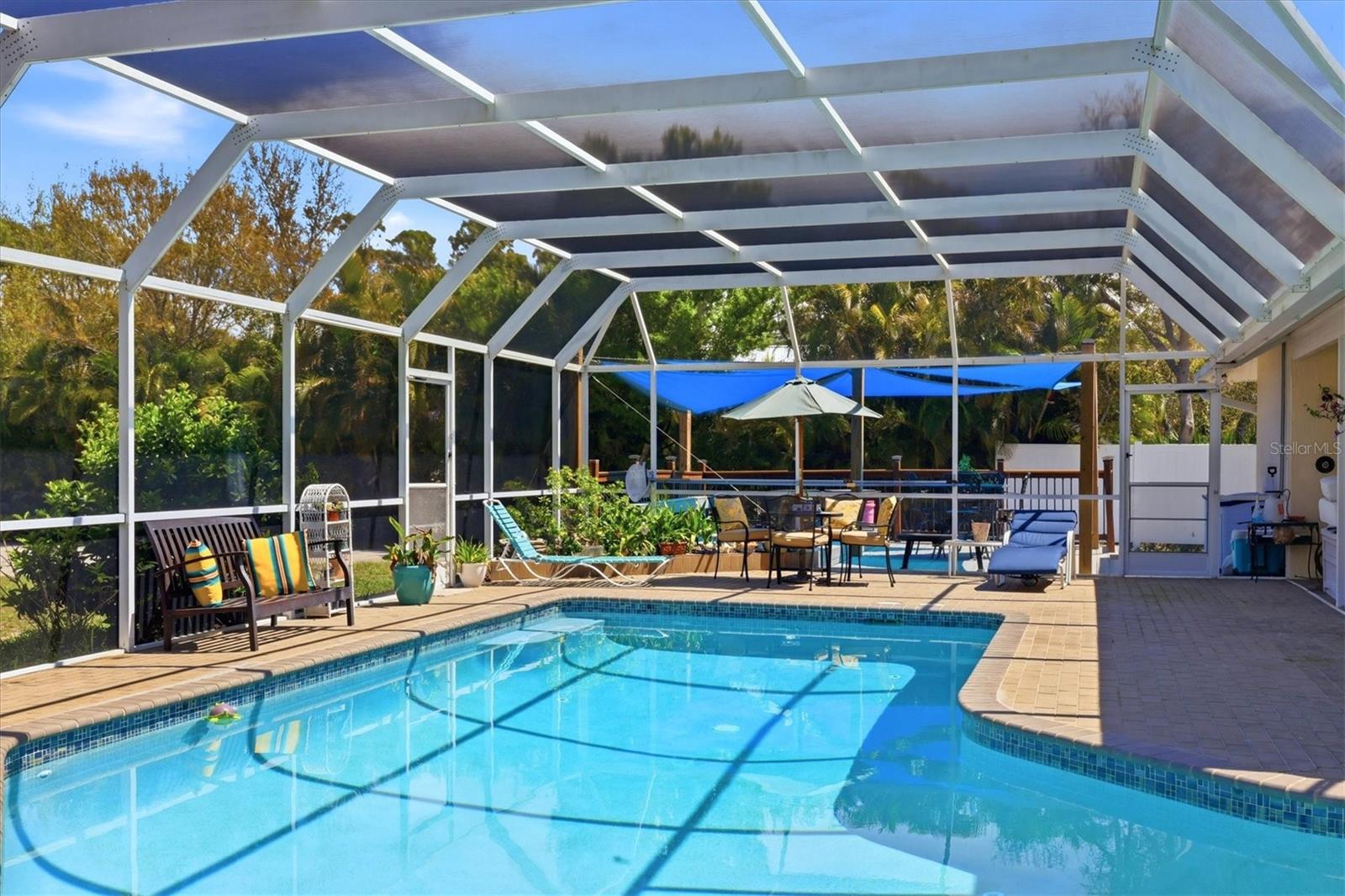 Welcome to a home that lives like a resort. This is a rare opportunity to own a coastal-style estate designed for laid-back luxury on 1.03 acres in Englewood's premier Bayshore area. High and dry, this home did not flood during the storms. Offering 3,100 square feet of living space and garage space for 7 vehicles, this exceptional property features 3 bedrooms, 3.5 bathrooms, 3 fireplaces, impressive upgrades, and a thoughtfully designed layout. A striking double-door entry with an arched transom window and architectural columns welcomes you into the grand foyer and living room, where soaring 20+ foot vaulted ceilings create a dramatic first impression. Designed for everyday comfort and effortless entertaining, the main living spaces flow beautifully. The home's character shines through in the many gathering areas, including a formal living room, comfortable family room, and a chef's kitchen that serves as the heart of the home. The kitchen is anchored by a large island with abundant cabinetry and storage, generous prep space, a breakfast bar, an eat-in area, newer dishwasher, built-in convection oven and microwave, and a new Sub-Zero refrigerator. The recreation/billiards room, with an interior half bath, offers flexibility and could easily be transformed into a media room, fourth-bedroom suite, or in-law suite. Step outside and enjoy a private tropical oasis. The large resort-style lanai and pool area are designed for entertaining, featuring a wet bar beneath a pass-through window with an ice maker and wine fridge. Swim in the oversized lap pool while enjoying the privacy and beauty of this lush property. Meticulously upgraded for comfort and peace of mind, this home includes two-zone HVAC, a 15,000-watt emergency generator, a newer roof, soffit, and gutters, a newer solar system, newer stucco and exterior paint, two newer hot water heaters, and a newly resurfaced pool- with Upgraded finish, new drains, vents, returns, light niches & glass waterline tile. Air Ducts were cleaned/sanitized. The grounds feature multiple decking, patio, and lanai areas for relaxing and enjoying the surroundings. The detached 5-car garage and attached climate-controlled oversized 2-car garage provide exceptional space for vehicles, hobbies, storage, or workshop use. The semi-circular double-gated entry leads to the residence, while the extended driveway continues beyond the home to the triple-bay detached garage of over 1,200 square feet, complete with three hurricane-rated garage doors, and an oversized center door. Inside, the home offers privacy and flexibility. The primary suite is spa-inspired with a fireplace, a jetted tub, dual vanities, dual walk-in closets, a private water closet with a toilet + bidet, and sliding glass doors to the pool lanai. Behind a pocket door off the family room, guests or family members will appreciate a private bedroom wing with the second and third bedrooms, including one en-suite bedroom and a third bath off the third bedroom. Oversized interior laundry room. Fully fenced yard + dog run. Perfectly located, with partial water views of the bay (ICW), this property offers the best of coastal living, just one mile from Manasota Key's beach and minutes from restaurants, shopping, and dining. With hundreds of thousands of dollars in upgrades throughout the home and property, this is a rare opportunity to own a one-of-a-kind estate at an incredible value. Add your finishing touches and make this exceptional property your own.