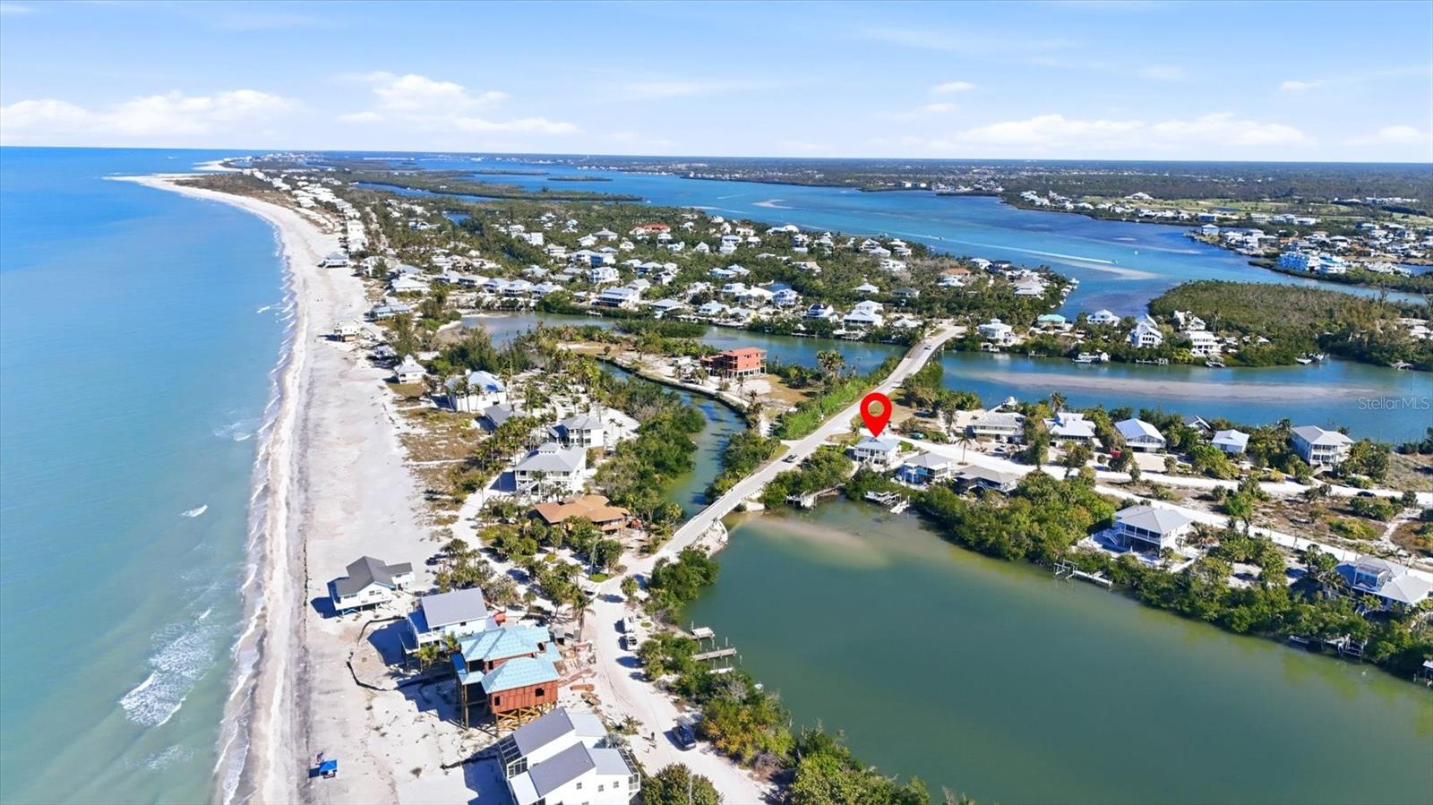 BOCILLA LAGOON COASTAL COTTAGE | PALM ISLANDWelcome to your island escape on sought-after "Palm" Island, where relaxed coastal living and natural beauty come together. This charming 2 bedroom, 2 bath cottage is perfectly positioned on Bocilla Lagoon with partial Gulf views, offering the best of both sunrise serenity and sunset skies.Inside, the home is full of warmth and character with beautiful hardwood flooring, French doors, and an open, light-filled layout that captures the essence of island living. The primary suite features a private ensuite bath, while guest accommodations provide comfort and privacy for family and visitors alike. Large bonus room/loft leaves room for overflow guests or possible office/studio.Step out onto the front porch and unwind as you watch breathtaking sunsets each evening, or take a short stroll to the beach to dip your toes in the sand as the sun meets the horizon.For boating and water enthusiasts, the private dock and 10,000 LB lift on Bocilla Lagoon provide quick access--approximately 5 minutes to the Intracoastal Waterway and just 20 minutes to the Gulf via two bridges. Launch a kayak right from your backyard or relax in your private dockside sitting area while the day's catch is cleaned.Whether you're looking for a personal retreat, investment opportunity, or both, this property offers excellent rental potential.Palm Island is one of the few places left where life slows down--featuring quiet, pristine beaches filled with shells and sharks' teeth, world-class fishing, and year-round sunshine.