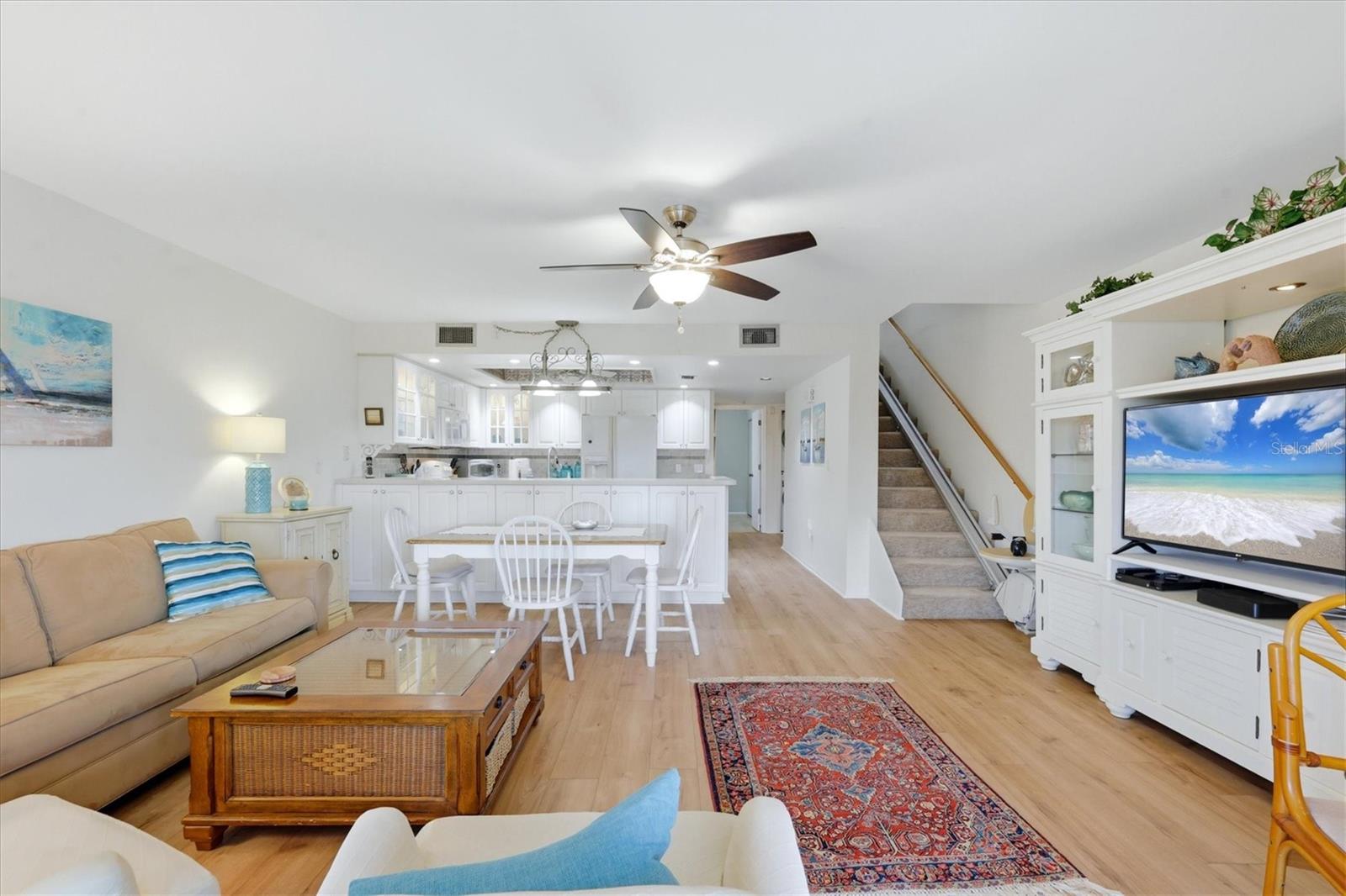 Fiddlers Green has a limited number of townhouses available. It gives you the opportunity to have a private garage, screened in porch, open balcony & additional living space along with extra storage area. This one comes fully furnished & is in excellent move-in ready condition. The primary bedroom & bath are located on the top floor for ultimate privacy. The screened-in porch, living room & kitchen have plenty of open space for socializing. The windows, glass sliders & garage door are all hurricane code & protected this home from any current damage. The community offers a clubhouse, pool & tennis / pickleball courts. It is located minutes away from sandy beaches, marinas that are close to the Gulf of America for excellent boating & fishing along with several golf courses for the avid golfer. Restaurants & shopping centers are plentiful in the immediate area. Fiddlers Green is not a 55 or older community making it ideal for a winter retreat or permanent retirement location.