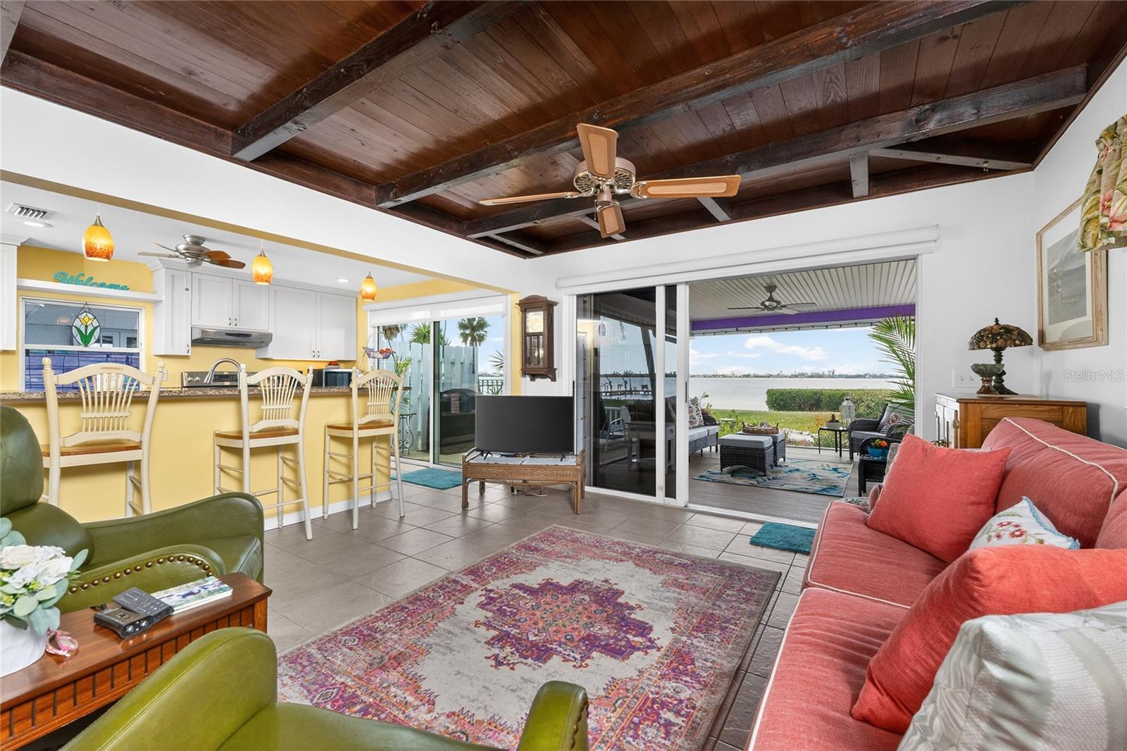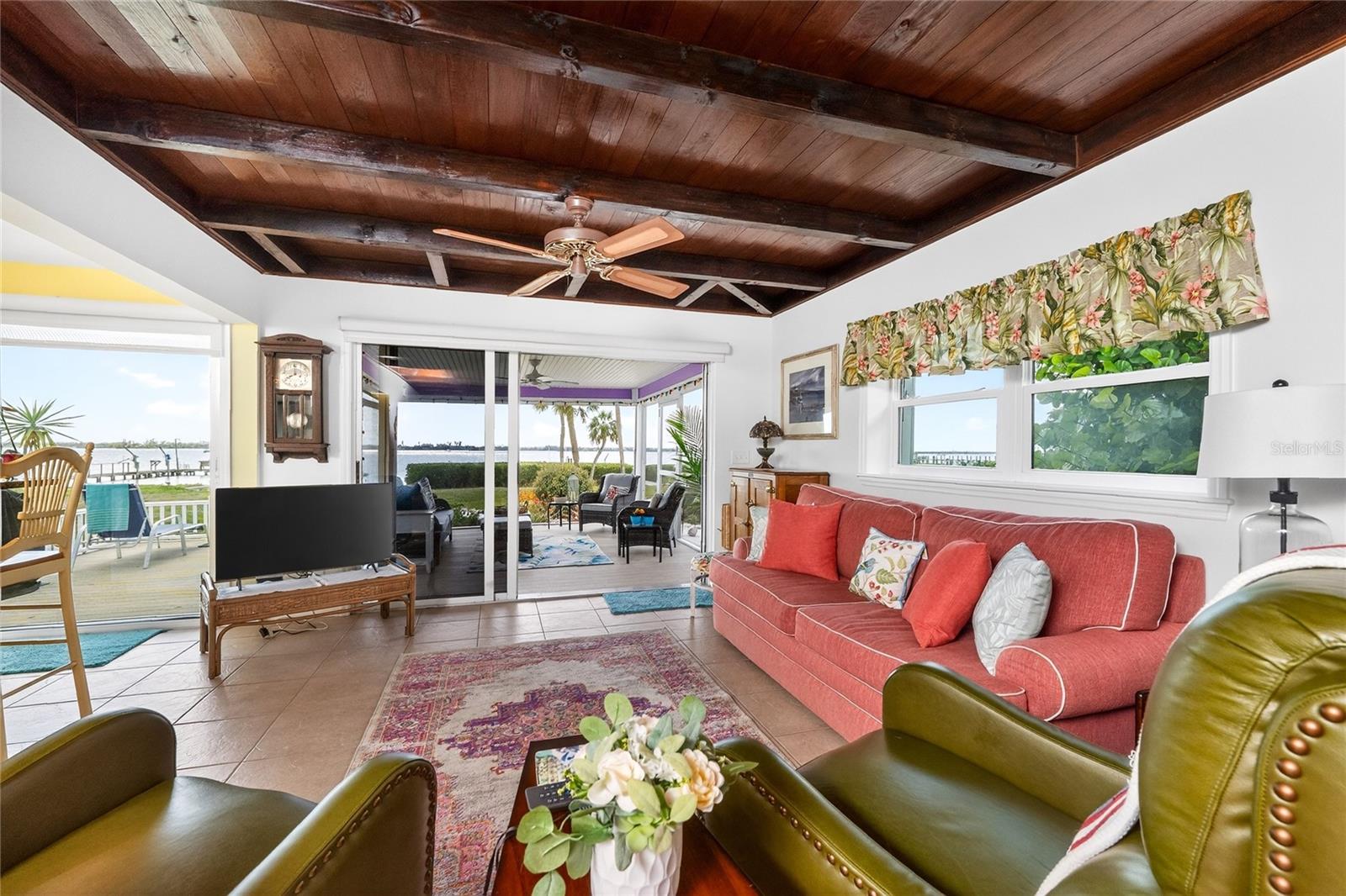 Indulge in the pinnacle of waterfront living with this charming Western exposure home with Lemon Bay Access, boasting some of the most captivating views in Southwest Florida. Whether you're a year-round resident, a host to visitors, an astute investor, or simply seeking a splendid winter retreat, this beautiful Englewood home presents an irresistible opportunity. From the moment you pull into the driveway, you will notice the mature tropical landscaping and meticulous attention to detail that went into this home. This old Florida home comprises three bedrooms, three bathrooms, a kitchen, a spacious living room, a formal dining room, a family room, a convenient inside laundry room, and a detached two-car garage with a workshop, and much more! Stepping inside, you'll be greeted by beautiful wood ceilings and beams that usher you into a sprawling, open-concept layout. The expansive kitchen features white shaker cabinets, granite countertops, tile flooring, stainless steel appliances, recessed lighting, pendant lights, bar top seating, a pantry, and much more! The 18x13 living room impresses with its tile flooring, fireplace, wood beams, and sliding glass door with captivating Lemon Bay views. The 18x13 formal dining room boasts ample space for a sizable dining table and water views. The 23x15 family room has history behind it and was from the old schoolhouse from Boca Grande. The Primary Suite is a sanctuary unto itself, showcasing a generously sized walk-in closet, pocket beautifully tiled walk-in shower, two separate vanities, updated lighting, and much more! The second bedroom features a tray ceiling, ceiling fan, and a private bathroom. Upstairs you will be greeted by a spacious third bedroom with a private bathroom and an additional loft room. The interior laundry room is complete with an extra closet for storage, tile flooring, washer, and dryer. The spacious detached two-car garage of this home features ample storage space and a 16x9 workshop area. Step outside, and you'll be greeted by a truly exceptional outdoor living area. The 16x13 under roof lanai features a ceiling fan and breathtaking views of Lemon Bay. The 16x11 outdoor porch is perfect for grilling or catching some sun. Did I mention that this home also has a 2022 roof, two 2024 Air Conditioners, hurricane shutters, and a dock on Lemon Bay? Enjoy your very own slice of paradise in Englewood with all the amenities you need from restaurants to beaches just right around the corner!