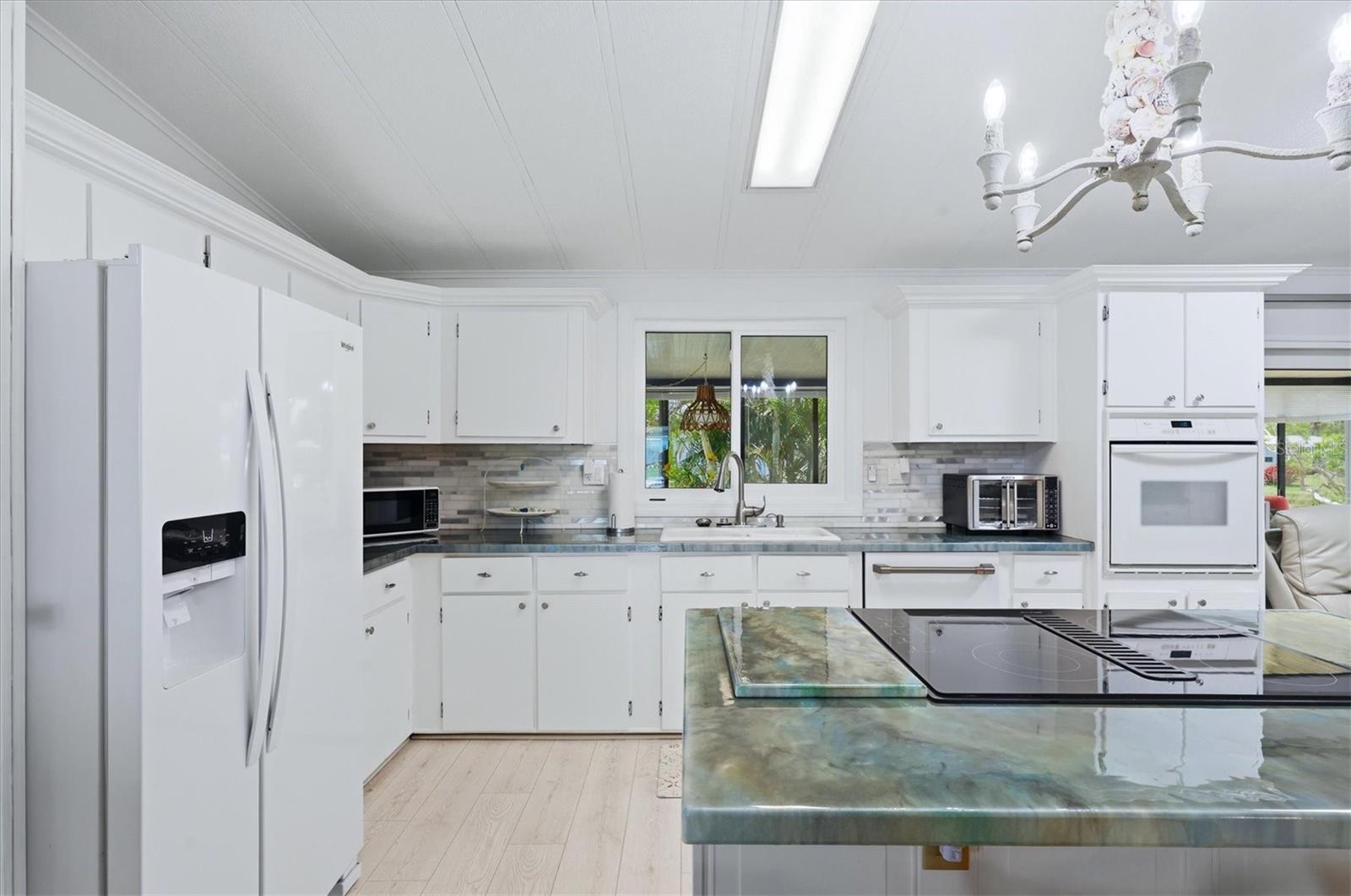 A serene lake view enhances this nicely maintained, 2-bedroom, 2-bathroom home in Tangerine Woods. This highly sought after, over 55 community, is an active and friendly place to live! For your leisurely pleasure, this community provides you with a large heated pool and clubhouse, an exercise room and library, tennis and pickleball courts, walking trails, shuffleboard and so much more! This turn-key furnished home, tucked away on a quiet cul-de-sac, has ceramic tile and carpeted floors, which offset the light and bright living, dining, and family room settings. Your front door entry welcomes you to the open, airy, and neatly decorated living and dining rooms. The spacious kitchen has an abundance of counter space and cupboards, breakfast bar, pantry, cooktop and oven, and is a chef's delight. The large beautifully furnished master bedroom, is enhanced with its wonderfully remodeled ensuite bathroom and large walk-in closet. The guest bedroom includes a barn door entry guest bathroom that has been updated and includes a tub and shower. A family room, with a built-in for your TV and media equipment, is just perfect for entertaining your guests. The screen enclosed lanai just off the family room, boasts a tranquil lake view, and offers you a comfortable second space for outdoor enjoyment and a place to unwind and relax. Off the lanai is a patio, which is ideal for your outdoor grilling. For peace of mind, this home has a new roof in 2022, new siding and new windows, and located in an X Flood Zone. Space galore is the perfect description of this home, that won't last long. Tangerine Woods is located just minutes from the quaint locally owned shops & restaurants of historic Dearborn Street, world class fishing, and many golf courses. This home offers an ideal Florida lifestyle. Schedule your showing today!