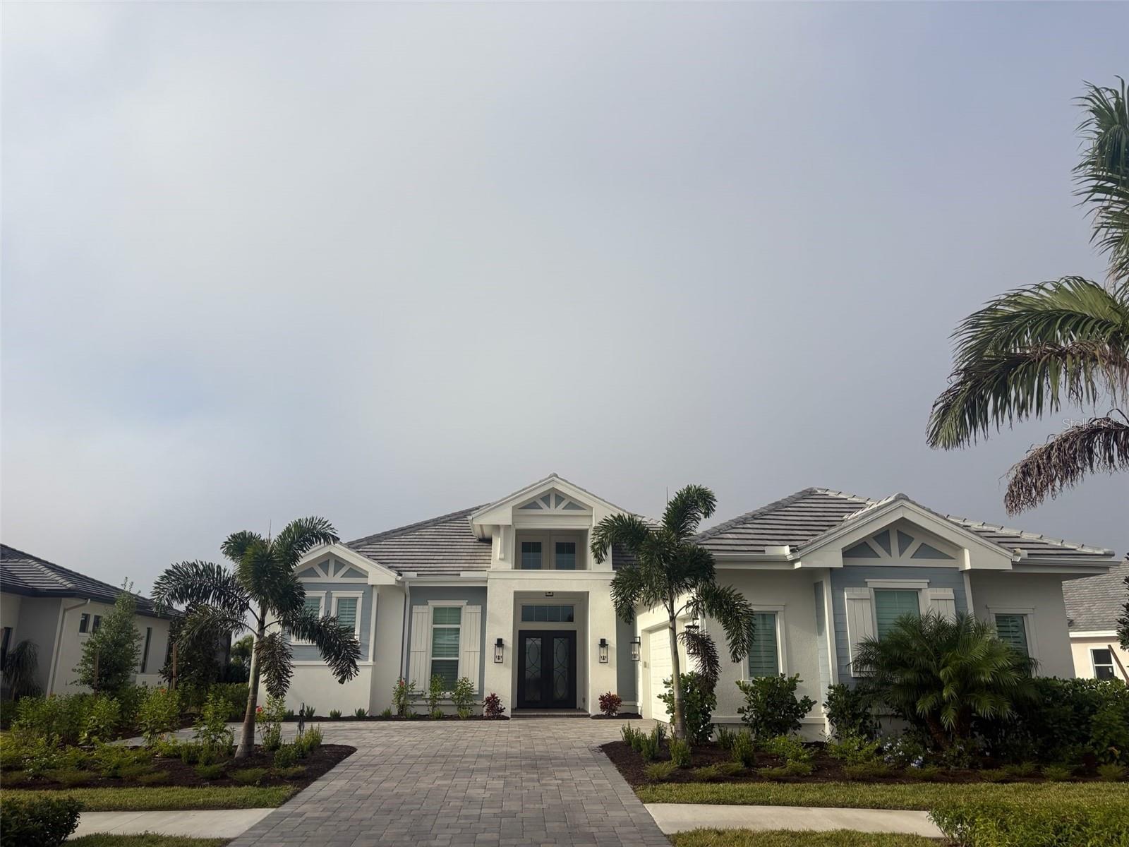 Exterior: French Doors, Lighting, Outdoor Grill, Outdoor Kitchen, Rain Gutters, Sidewalk, Sliding Doors