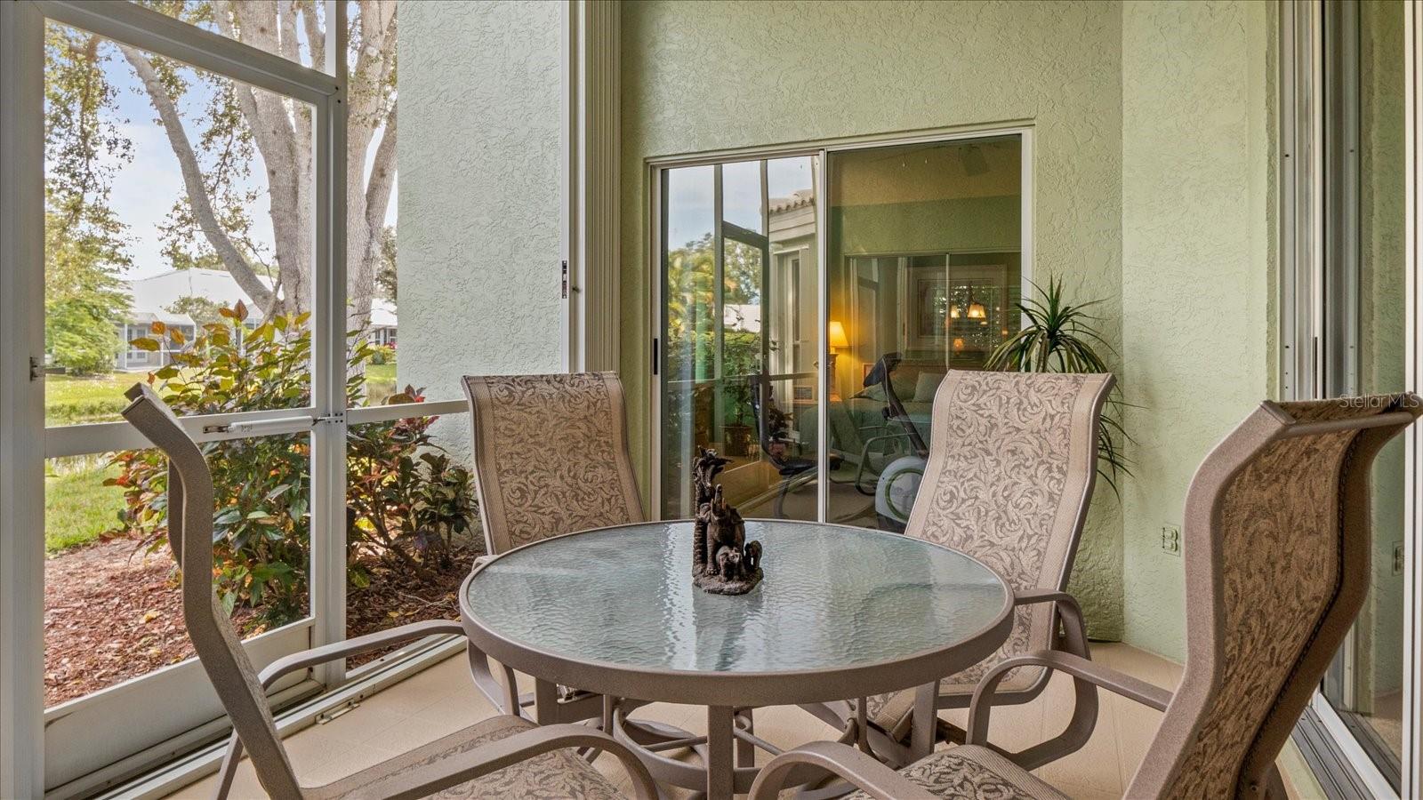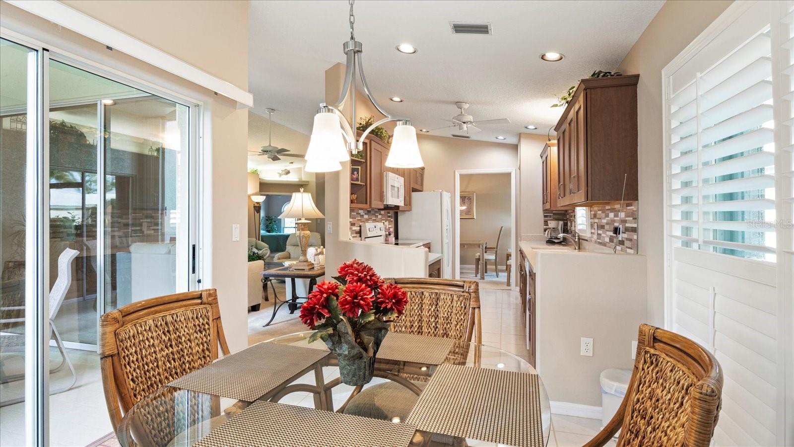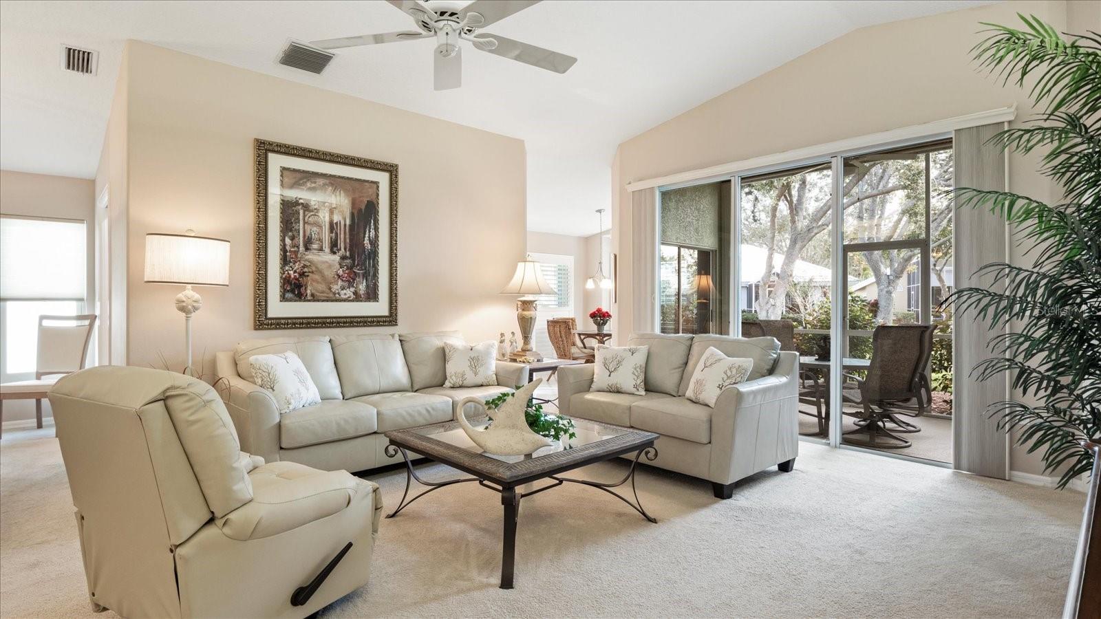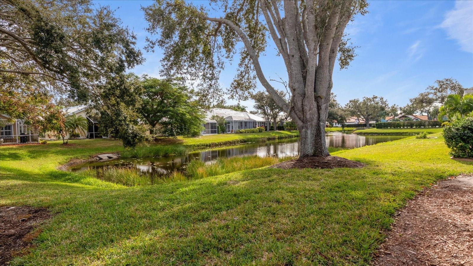 The Patios of Chestnut Creek is truly a wonderful place to call home. As you drive into the community, you'll be greeted by a beautiful tunnel of trees that leads you to a lovely lake. The Rookery, located in the middle, is just a short walk from your new home and offers the perfect spot to enjoy watching a multitude of birds coming and going. Entering this home, you'll be welcomed into a light and bright open living and dining area with vaulted ceilings and lighted shelves, creating a spacious and inviting atmosphere. The screened-in lanai provides a peaceful water view, allowing you to relax and enjoy the serenity of your surroundings. The updated custom kitchen is sure to impress with its beautiful cabinets, modern appliances, and quartz countertops. It's the perfect space for cooking and entertaining.The main suite of this home is truly a retreat, featuring two walk-in closets, vaulted ceilings, and a patio door that leads to the lanai. The master bath offers double sinks, a separate tub, and a shower providing both convenience and luxury.The en-suite guestroom is perfectly private, allowing your guests to have their own space. The extra-large bathroom adds to their comfort and convenience. The third room can be used as a bedroom or for any other purpose that suits your needs. The new windows with solar coating and the accordion shutters throughout provide both energy efficiency and storm protection.The community itself is maintenance free, allowing you to spend your time enjoying the clubhouse, heated and cooled pool, tennis/pickleball court and participating in the numerous social activities available. The friendly neighbors add to the sense of community and make it a great place to live.In addition to all the amenities within the community, you'll also find that historic Venice and its wonderful beach are just minutes away. So whether you want to relax at home or venture out to explore the area, you'll have plenty of options.Overall, The Patios of Chestnut Creek offers a beautiful and convenient place to call home, with its peaceful surrounds, updated features and abundance of amenities.