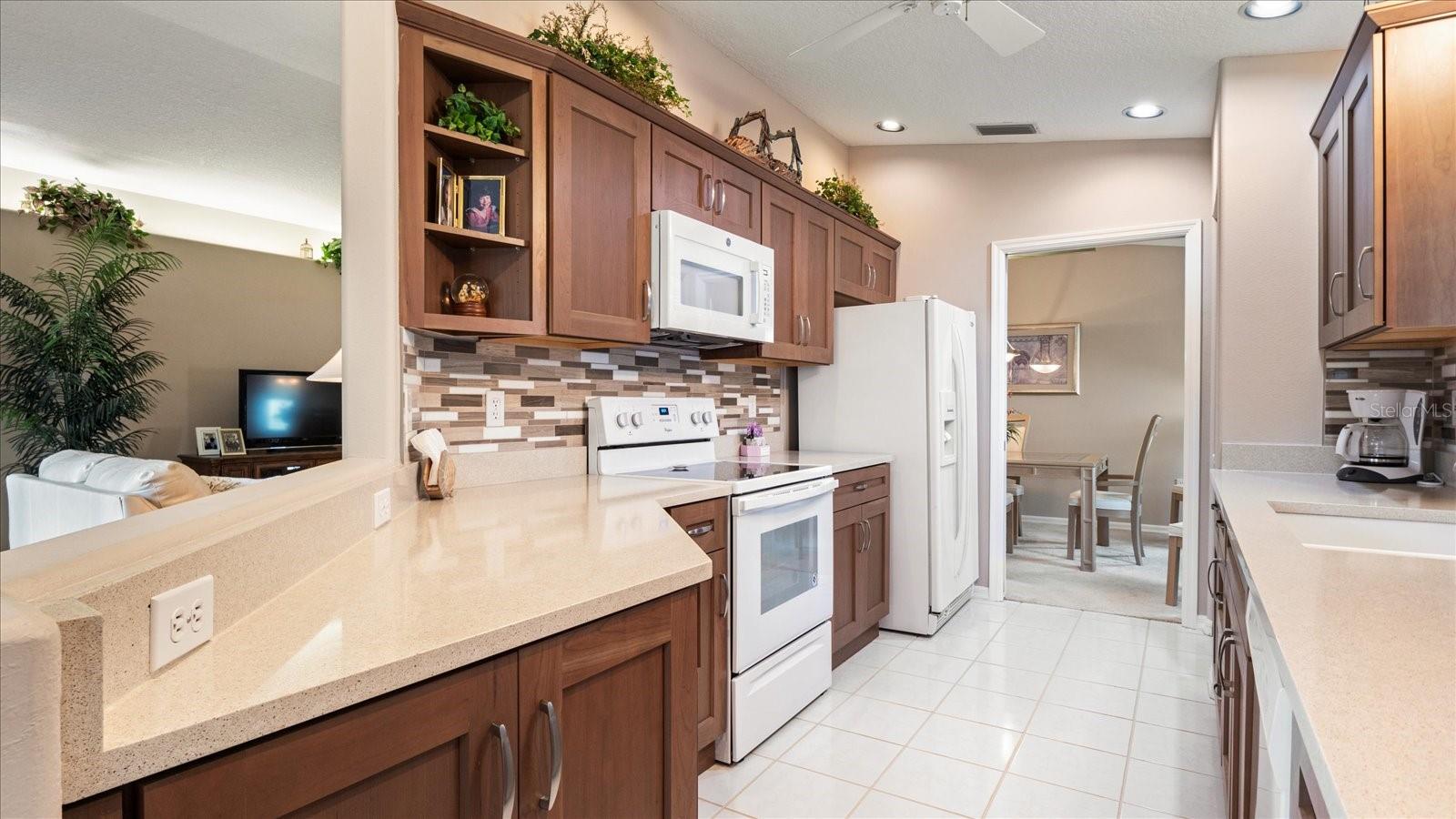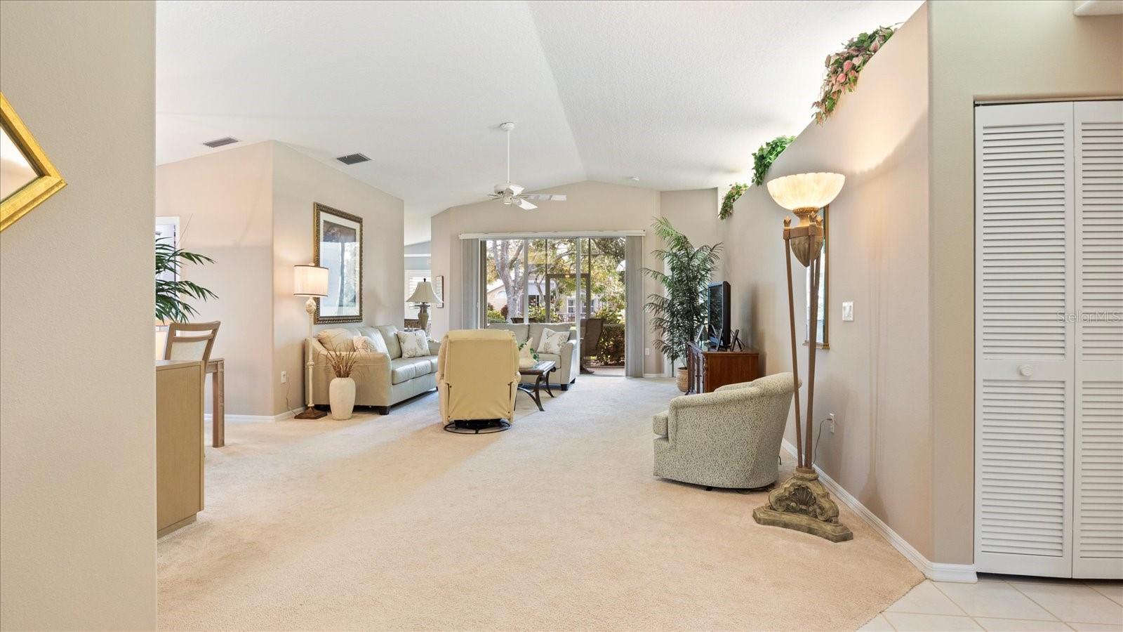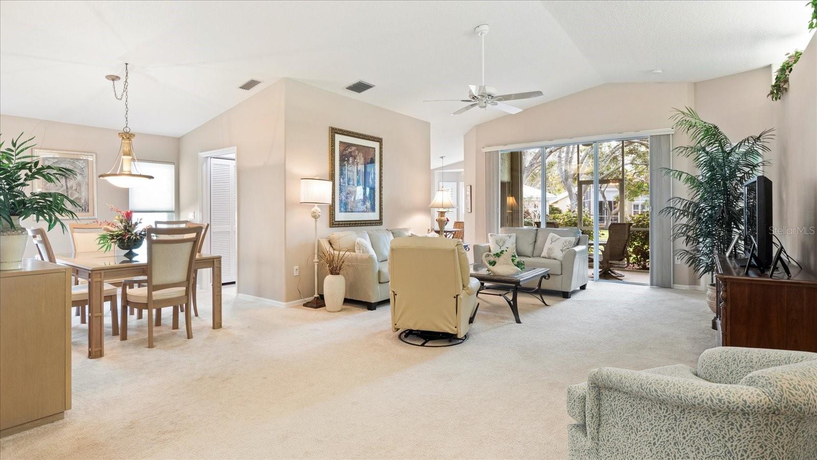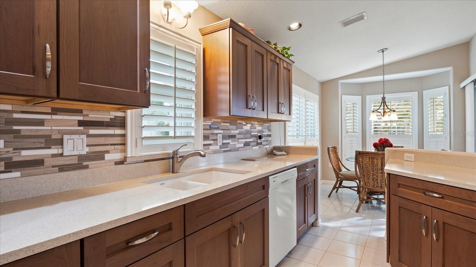 The Patios of Chestnut Creek is truly a wonderful place to call home. As you drive into the community, you'll be greeted by a beautiful tunnel of trees that leads you to a lovely lake. The Rookery, located in the middle, is just a short walk from your new home and offers the perfect spot to enjoy watching a multitude of birds coming and going. Entering this home, you'll be welcomed into a light and bright open living and dining area with vaulted ceilings and lighted shelves, creating a spacious and inviting atmosphere. The screened-in lanai provides a peaceful water view, allowing you to relax and enjoy the serenity of your surroundings. The updated custom kitchen is sure to impress with its beautiful cabinets, modern appliances, and quartz countertops. It's the perfect space for cooking and entertaining.The main suite of this home is truly a retreat, featuring two walk-in closets, vaulted ceilings, and a patio door that leads to the lanai. The master bath offers double sinks, a separate tub, and a shower providing both convenience and luxury.The en-suite guestroom is perfectly private, allowing your guests to have their own space. The extra-large bathroom adds to their comfort and convenience. The third room can be used as a bedroom or for any other purpose that suits your needs. The new windows with solar coating and the accordion shutters throughout provide both energy efficiency and storm protection.The community itself is maintenance free, allowing you to spend your time enjoying the clubhouse, heated and cooled pool, tennis/pickleball court and participating in the numerous social activities available. The friendly neighbors add to the sense of community and make it a great place to live.In addition to all the amenities within the community, you'll also find that historic Venice and its wonderful beach are just minutes away. So whether you want to relax at home or venture out to explore the area, you'll have plenty of options.Overall, The Patios of Chestnut Creek offers a beautiful and convenient place to call home, with its peaceful surrounds, updated features and abundance of amenities.