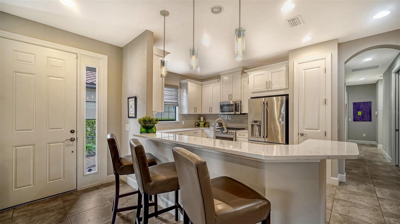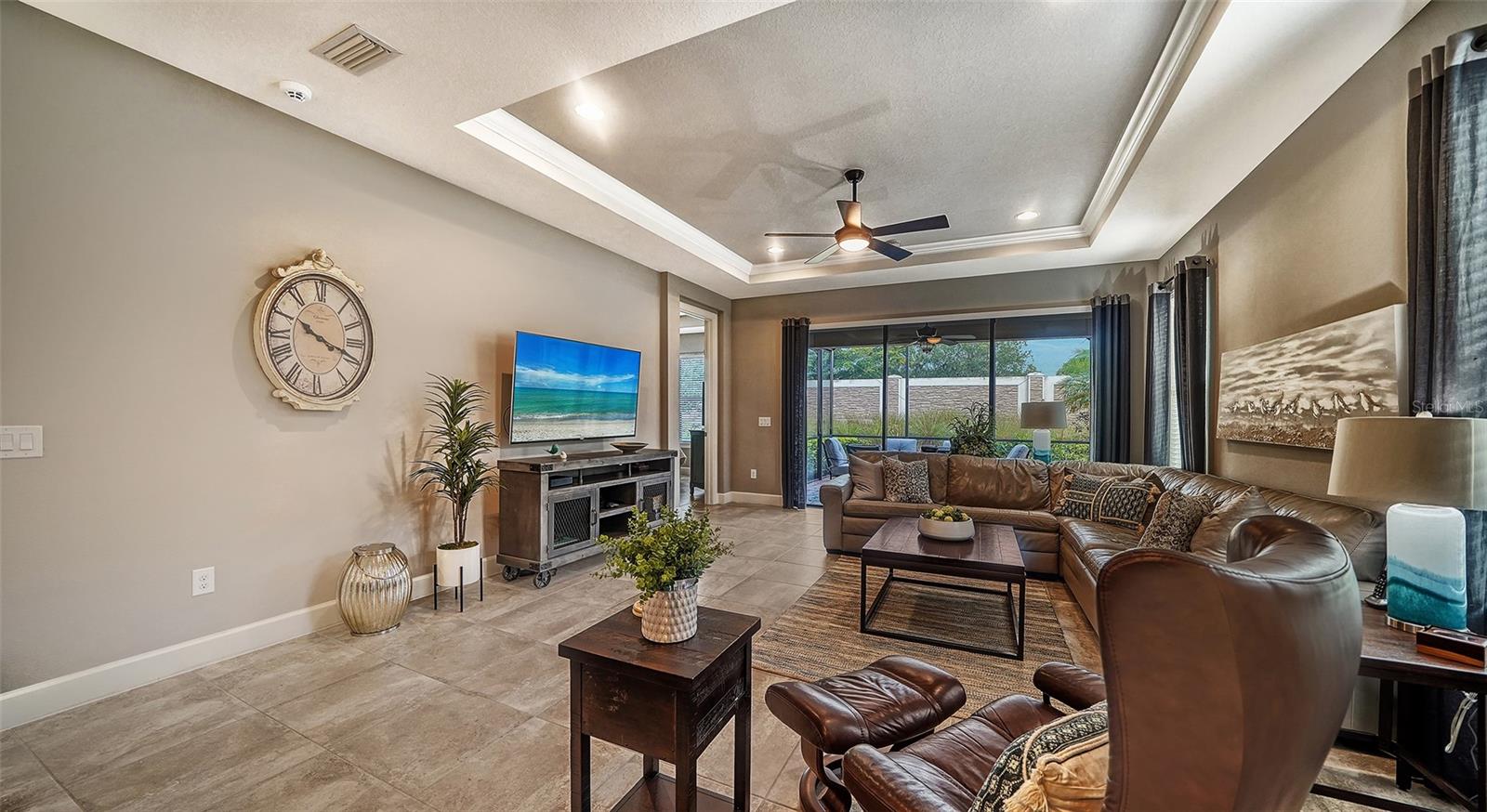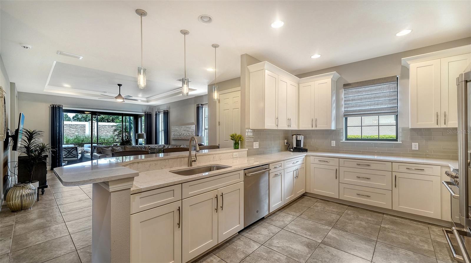 PRICE IMPROVEMENT!! $625,000!! PLUS $5,000 CLOSING CREDIT!! Experience the perfect blend of modern living, luxurious finishes, and a prime location - Welcome to your new home where every detail has been carefully curated for you! This elegant Arrezzo model has 3-bedrooms, 2-bathrooms, PLUS DEN, and an extended 2-car garage that seamlessly blends comfort, style, and functionality. As you step inside, you'll be captivated by the inviting open floor plan, creating a spacious and interconnected living space that effortlessly combines the kitchen, dining, and living areas. The heart of this home is the meticulous Chef's dream kitchen, adorned with elegant quartz countertops and equipped with top-of-the-line GE Cafe Series stainless steel appliances. The ceramic tile flooring throughout adds a touch of sophistication while ensuring easy maintenance, making this space as practical as it is beautiful. The charm of this home extends outdoors to an extended lanai, providing a perfect retreat for outdoor living and entertaining. Surrounded by lush and meticulously maintained landscaping, the extended lanai offers a serene oasis to enjoy the beauty of nature and the tranquility of your surroundings. This home is located on a quiet street with a cul-de-sac, and is a short walking distance to the focal point of the Bellacina by Casey Key community, which is the well-appointed Amenity Center. It features a clubhouse with Chef's kitchen, an activities room overlooking the resort-style heated swimming pool with cabanas, spa, firepit, fitness center, pickleball courts, tennis court, bocce ball, cornhole, playground, 2 dog parks and a full-time activities director. There is also access to the Sarasota County Legacy Trail from inside the community. Convenience is key, and this property is ideally situated, offering 2.7 miles to the beautiful Nokomis beach, 5 miles to downtown Venice Island, 15 minutes to Siesta Key Beach, and 25 minutes to downtown Sarasota. As a BONUS, the custom drapes, window treatments, washer and dryer and a list of furnishings convey!! Whether you're in the mood for a day by the ocean or exploring the vibrant city life, everything is within reach. All enhancing the overall Florida lifestyle experience! **Please see list of furnishings that convey with home in attachments!