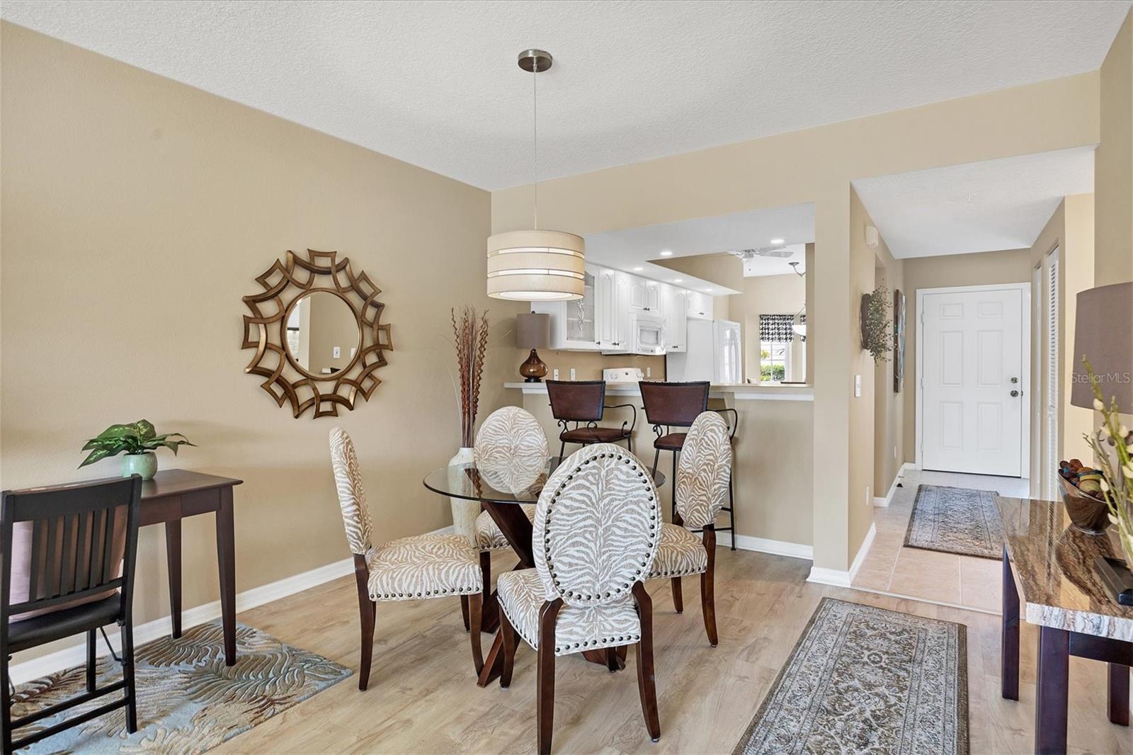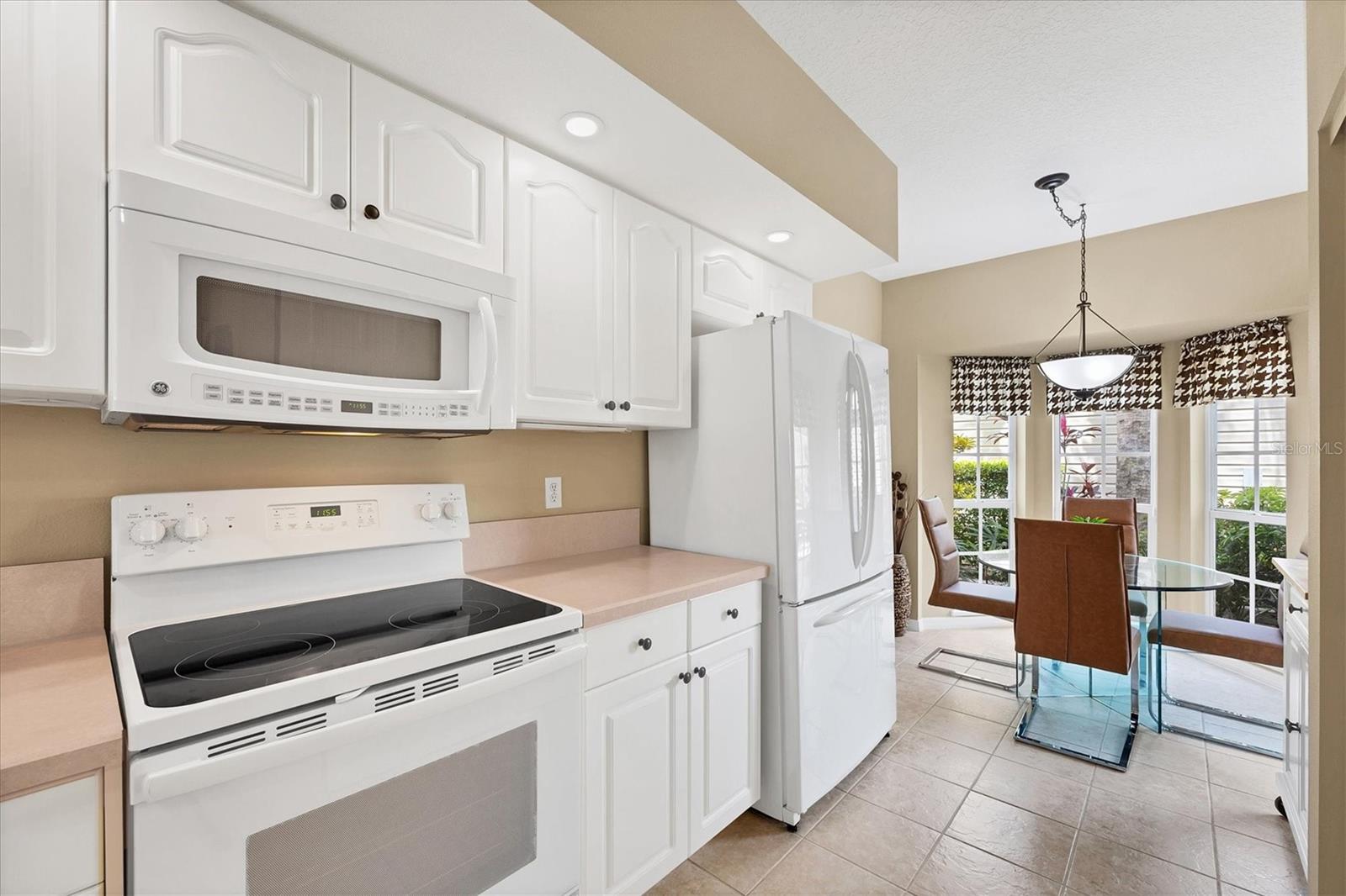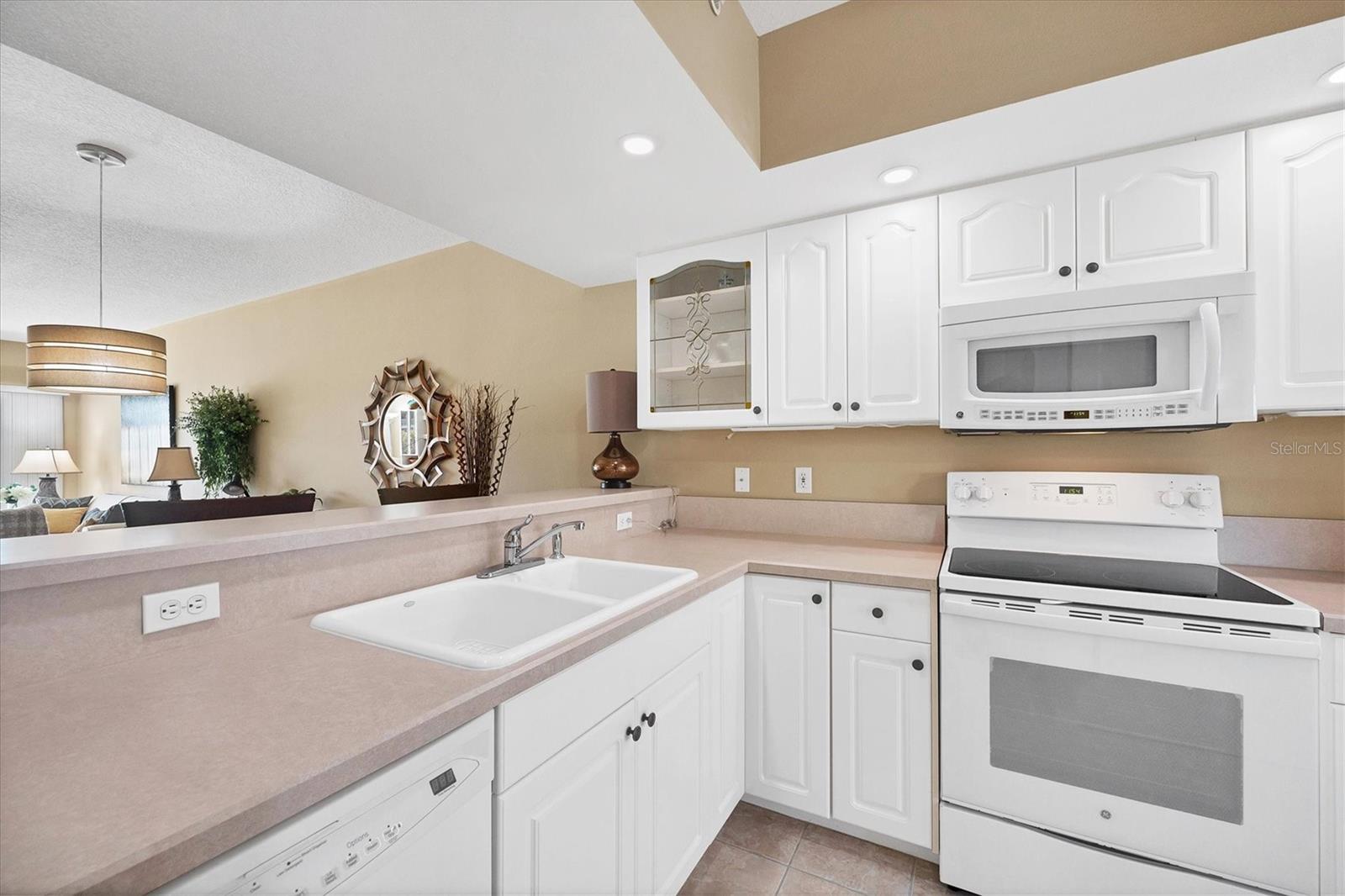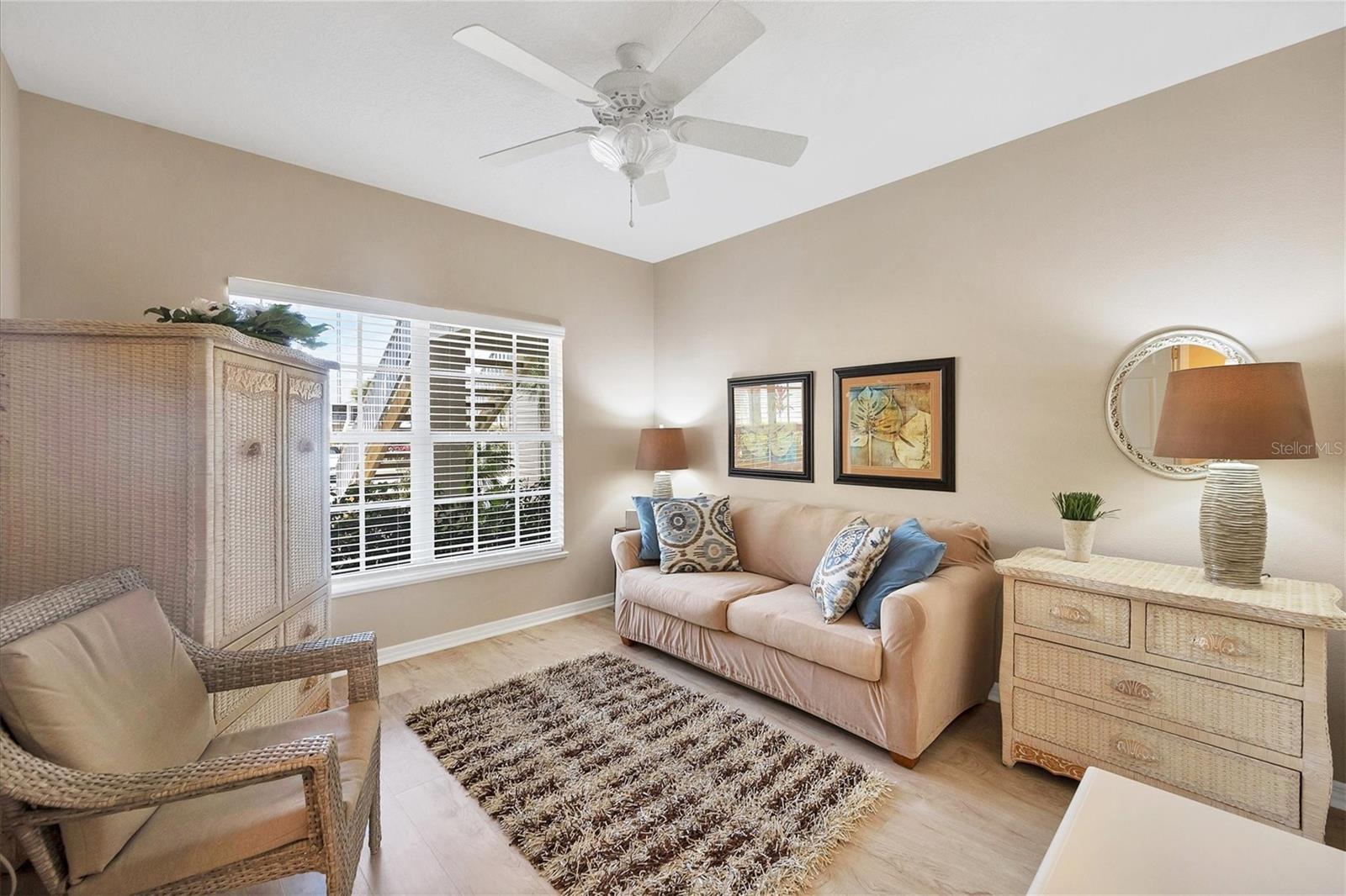 Panoramic lake views from this "first floor" ground unit being offered furnished and ready for your personal items!! One of the few condos with an oversized, glass enclosed lanai to enjoy year around!! Don't miss this awesome opportunity to "just move in", home is clean as a whistle, shows beautifully and waiting for you. Nestled among beautiful trees, lakes, ponds, winding roads, near walking and bicycling paths AND just minutes to Historical Downtown Venice and the beautiful Beaches on the Gulf of Mexico/Intracoastal Waterway, a "one of a kind location!" This home is in pristine condition, it has been loved, well taken care of and now waiting for you! Enter into lovely foyer with tile flooring then luxury vinyl extends thru out most of the home. Well appointed kitchen with tile floors, breakfast nook w/bay window overlooks your tropical gardens for your morning coffee. Multiple cabinets compliment the kitchen and breakfast bar to the dining area/living room. Dining area is adjacent to breakfast bar then to open, spacious living room. There are 2 bedrooms, one used as a Guest/den/TV room/office with a pull out couch to accommodate guests, blt in closet, your choice of uses. Bath #2 just steps away. Master bedroom has walk in closet, nice master bath w/double vanities, large shower w/sliding door. Sliding glass doors from living room and master bedroom to Florida room joins home together giving great views and ambiance of outdoors and wildlife. An overhead ceiling fan (5 thru out) provides great air flow and ventilation to this 22 x 8 ft Florida room (approx 176 sq ft not included in living area tax records) and extends the living area in home to approx 1352 sq ft living area. Sliding glass doors and window treatments compliment the entire area while giving direct access to your waterfront, 15x 8 ft patio and tropical landscaped paradise!!