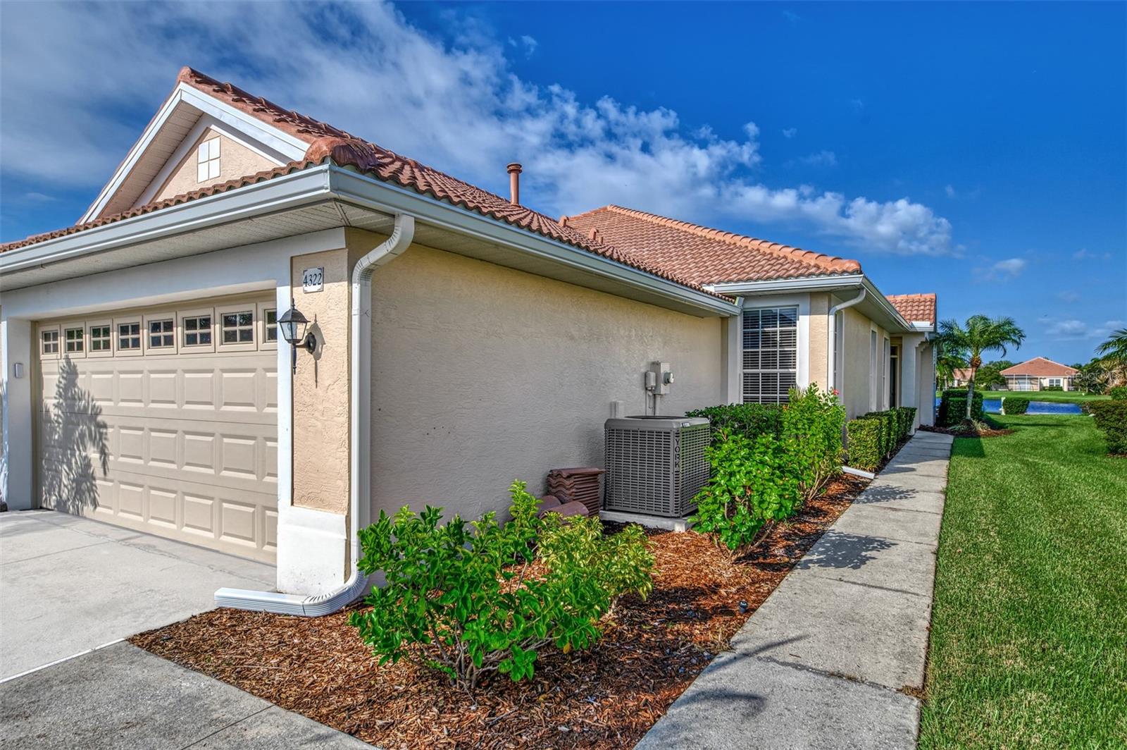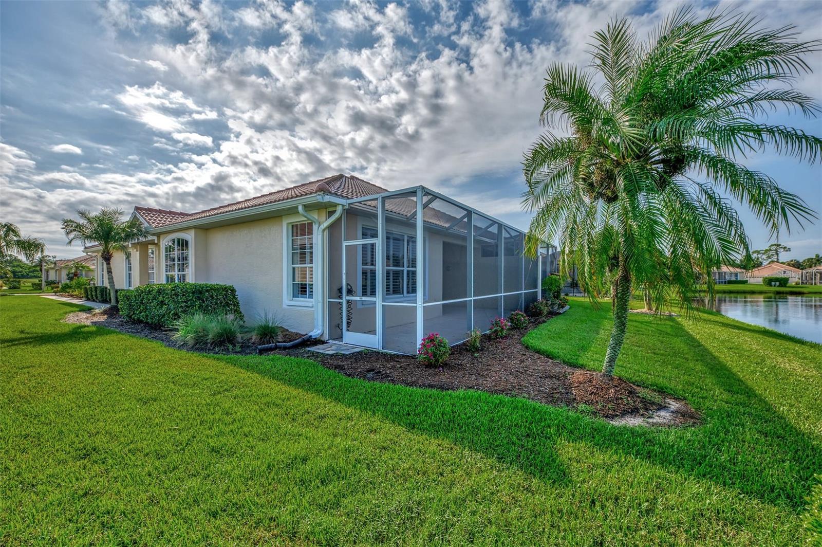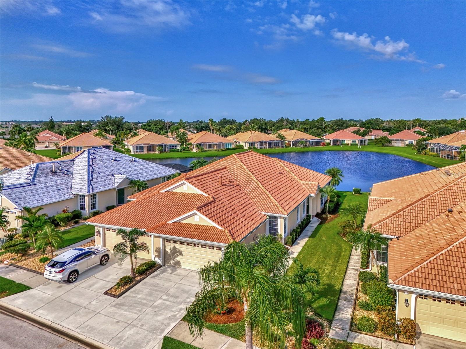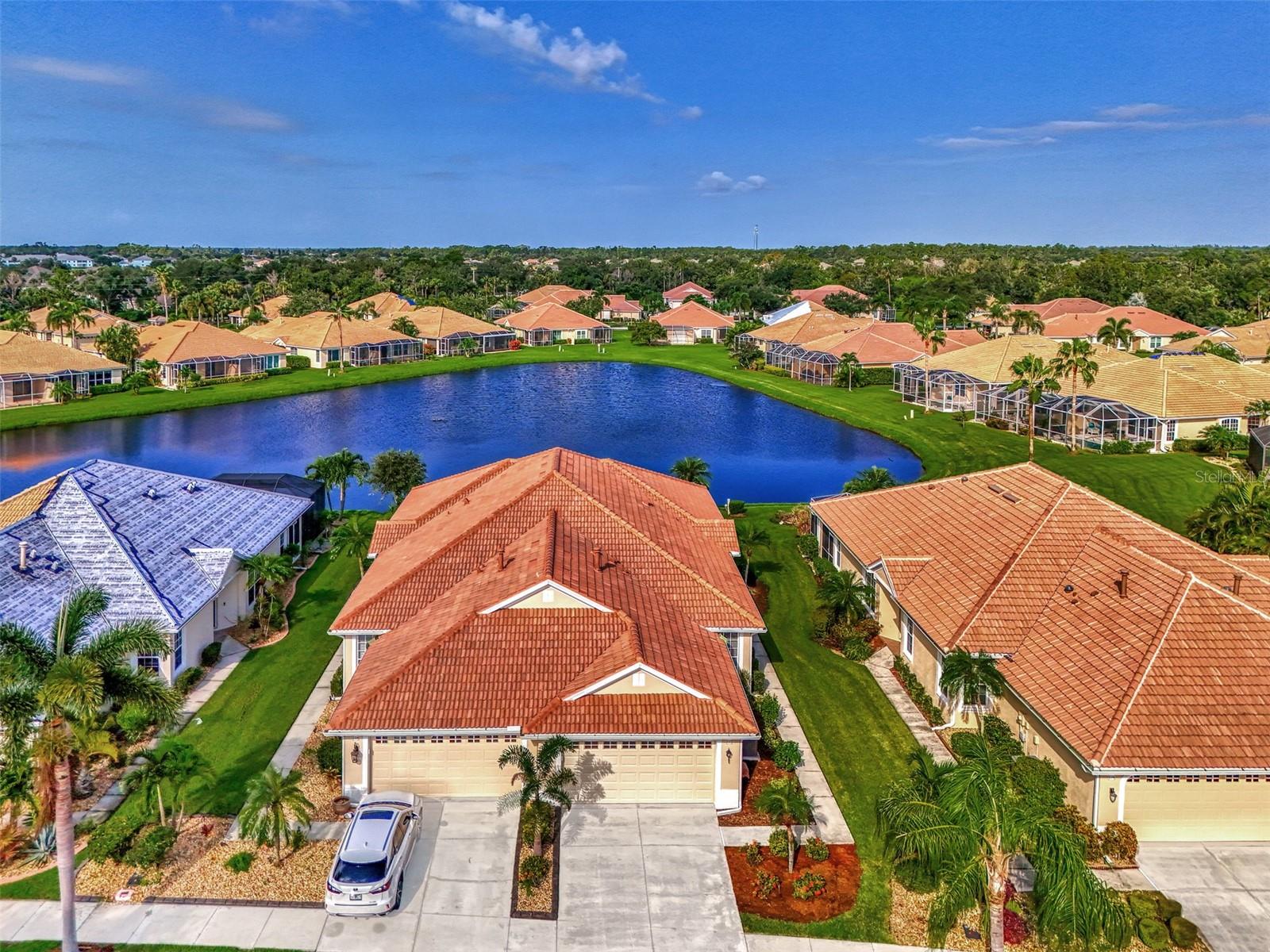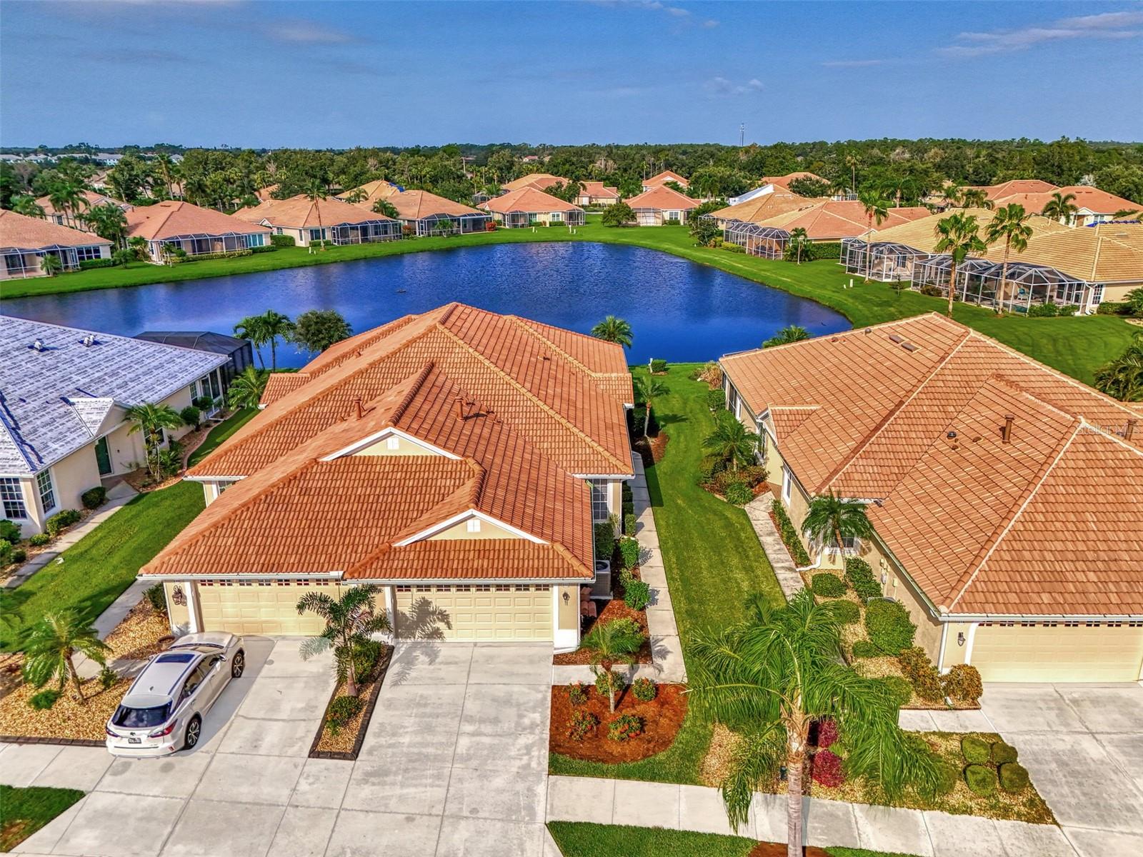 HERON CREEK GOLF AND CC *** Stunning UPDATED 1731 Sq Ft Paired Villa with PANORAMIC LAKE VIEW! No need to wait ..and don't hesitate because the Seller is EXTREMELY MOTIVATED and will PRE-PAY HOA DUES & Bronze MEMBERSHIP DUES through 12/31/24 for the lucky buyer! This PRISTINE villa is MOVE-IN ready and boasts a NEW BARREL TILE ROOF, newer AC and WATER HEATER (2022) as well as a lengthy list of stylish interior updates. The ever-popular Hemmingway floor plan features 2 bedrooms, 2 full baths, a FLEX-Room perfect for an in-home office, hobby room or convertible third bedroom, a spacious Kitchen that would make larger single-family homes jealous, an open Great Room and an extended lakefront lanai. Tranquility Found! This immaculate Villa is like a breath of fresh air, it is light & bright, it is MODERN and UPDATED and enjoys a Premium homesite w/ breathtaking water view. With over 1700 square feet of living space the OPEN CONCEPT design flows seamlessly making entertaining & relaxing effortless! Along the entry walkway there is lush tropical foliage and the covered side entrance is flanked by a lush Pygmy Palm that waves "Welcome In" to all who visit. Once you walk into this villa a Zen like calm envelopes you.... The home is so light and bright and open, with high ceilings, cool ceramic tile and LVT flooring throughout, crisp classic Plantation Shutters, rich crown molding, and a soothing paint color palette that lets the decor set the scene for comfort & serenity. Upon entering the foyer you will immediately appreciate the beautiful lake view from the great room area. The spacious Kitchen has been thoughtfully upgraded with rich wood cabinetry and freshly updated with timeless gray subway tile, exotic granite countertops and SS appliances. There is a sun filled dining area adjacent to the kitchen with more than ample room to gather with family and friends. The Flex room/Den sports double French doors provides a versatile space for a work at home office or media room or an additional bedroom. Guests will feel right at home in their own private accommodations with full bath at the front of the home while the Primary Bedroom enjoys serene lake views, lots of closet space (2 closets including a spacious walk -in) an updated ensuite bath with garden tub, easy entry shower, separate water closet, granite topped vanity with 2 sinks and all new modern hardware and fixtures. The Great Room and primary bedroom both open wide to the lanai bringing the outside in. Savor the evening sunset as you sip a glass of wine on the expansive lanai and delight in the amazzing array of native birds and wildlife on and along the lake. This lovely villa really checks all the boxes so look no further.... Heron Creek offers exceptional amenities including a 21,000 sq ft club house, 27 holes of Championship golf Arthur Hills design, resort style pool & spa, a robust social activity calendar, fitness center, Tennis courts & formal & casual dining options! Club Membership is required w/3 membership levels offered beginning at $259/month.*NO CDD FEES * LOW HOA FEES include lawn care, exterior painting, trimming of low lying trees and shrubs, mulching, irrigation, Cable & HIGH-SPEED INTERNET, Gated entry. Heron Creek is conveniently located w/easy access to I-75 &US-41, the Cocoa Plum Shopping , Myakkahatchee Creek trails, Blue Ridge Park, WELLEN PARK, Braves Stadium, COSTCO & the SMH health SYSTEM. PROFESSIONAL PHOTOS COMING SOON