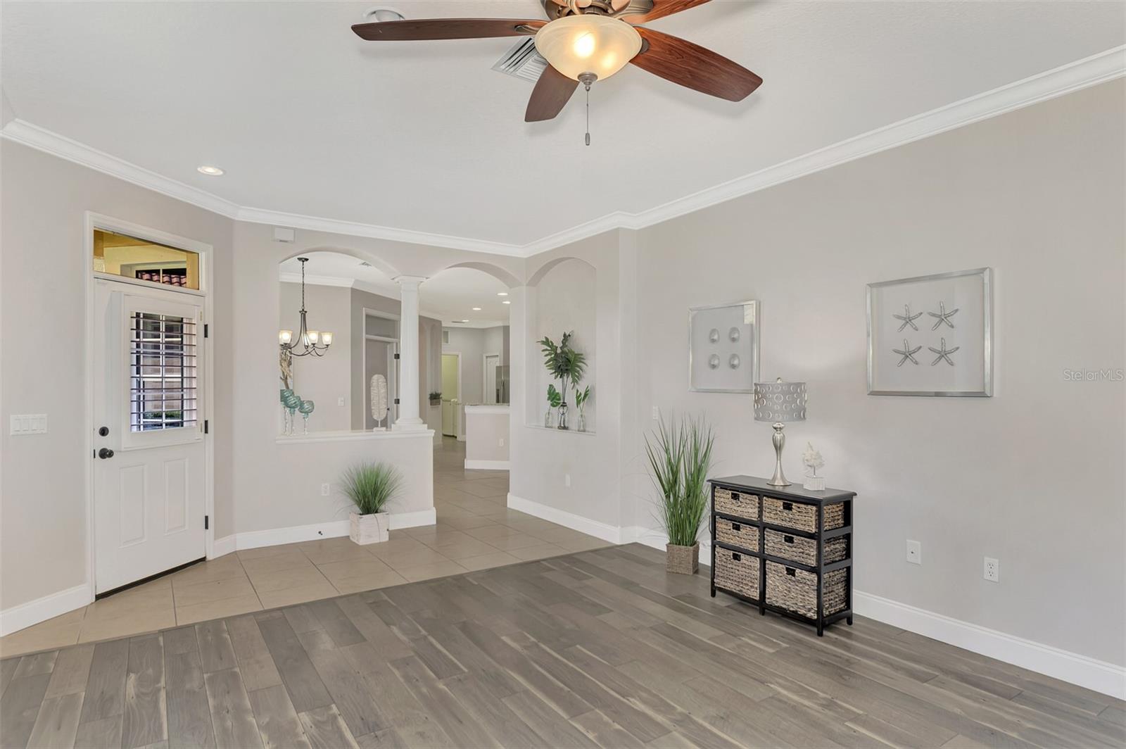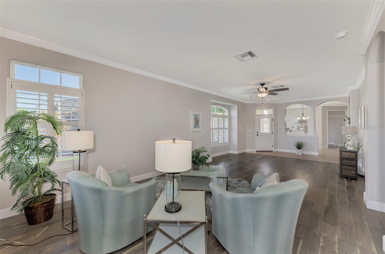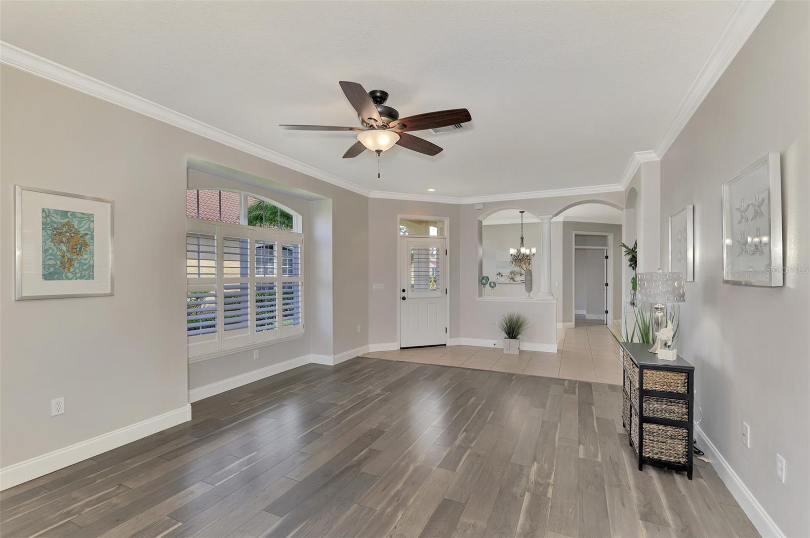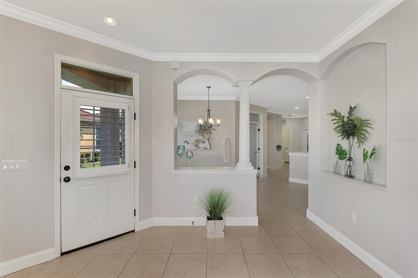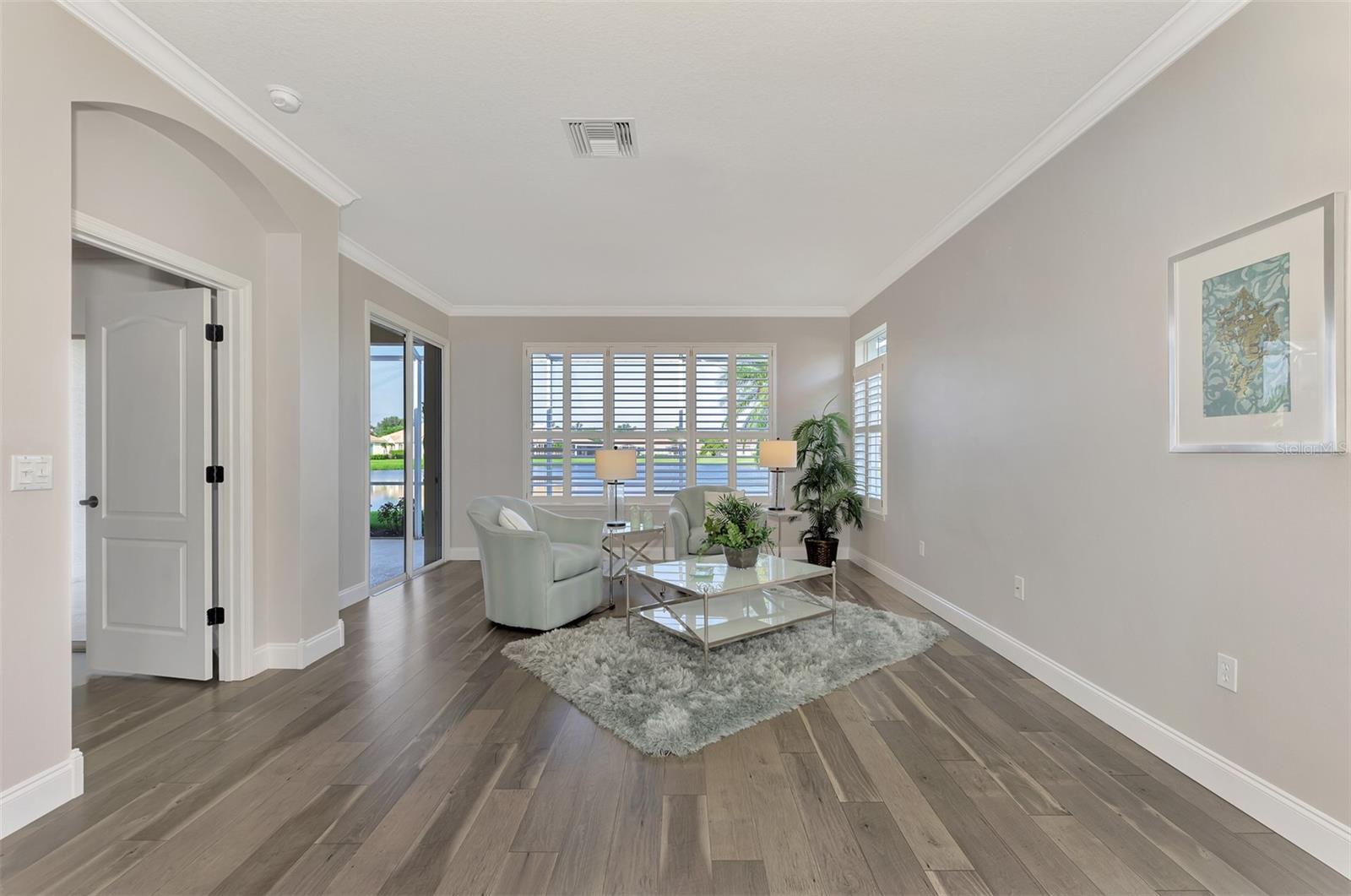 HERON CREEK GOLF AND CC *** Stunning UPDATED 1731 Sq Ft Paired Villa with PANORAMIC LAKE VIEW! No need to wait ..and don't hesitate because the Seller is EXTREMELY MOTIVATED and will PRE-PAY HOA DUES & Bronze MEMBERSHIP DUES through 12/31/24 for the lucky buyer! This PRISTINE villa is MOVE-IN ready and boasts a NEW BARREL TILE ROOF, newer AC and WATER HEATER (2022) as well as a lengthy list of stylish interior updates. The ever-popular Hemmingway floor plan features 2 bedrooms, 2 full baths, a FLEX-Room perfect for an in-home office, hobby room or convertible third bedroom, a spacious Kitchen that would make larger single-family homes jealous, an open Great Room and an extended lakefront lanai. Tranquility Found! This immaculate Villa is like a breath of fresh air, it is light & bright, it is MODERN and UPDATED and enjoys a Premium homesite w/ breathtaking water view. With over 1700 square feet of living space the OPEN CONCEPT design flows seamlessly making entertaining & relaxing effortless! Along the entry walkway there is lush tropical foliage and the covered side entrance is flanked by a lush Pygmy Palm that waves "Welcome In" to all who visit. Once you walk into this villa a Zen like calm envelopes you.... The home is so light and bright and open, with high ceilings, cool ceramic tile and LVT flooring throughout, crisp classic Plantation Shutters, rich crown molding, and a soothing paint color palette that lets the decor set the scene for comfort & serenity. Upon entering the foyer you will immediately appreciate the beautiful lake view from the great room area. The spacious Kitchen has been thoughtfully upgraded with rich wood cabinetry and freshly updated with timeless gray subway tile, exotic granite countertops and SS appliances. There is a sun filled dining area adjacent to the kitchen with more than ample room to gather with family and friends. The Flex room/Den sports double French doors provides a versatile space for a work at home office or media room or an additional bedroom. Guests will feel right at home in their own private accommodations with full bath at the front of the home while the Primary Bedroom enjoys serene lake views, lots of closet space (2 closets including a spacious walk -in) an updated ensuite bath with garden tub, easy entry shower, separate water closet, granite topped vanity with 2 sinks and all new modern hardware and fixtures. The Great Room and primary bedroom both open wide to the lanai bringing the outside in. Savor the evening sunset as you sip a glass of wine on the expansive lanai and delight in the amazzing array of native birds and wildlife on and along the lake. This lovely villa really checks all the boxes so look no further.... Heron Creek offers exceptional amenities including a 21,000 sq ft club house, 27 holes of Championship golf Arthur Hills design, resort style pool & spa, a robust social activity calendar, fitness center, Tennis courts & formal & casual dining options! Club Membership is required w/3 membership levels offered beginning at $259/month.*NO CDD FEES * LOW HOA FEES include lawn care, exterior painting, trimming of low lying trees and shrubs, mulching, irrigation, Cable & HIGH-SPEED INTERNET, Gated entry. Heron Creek is conveniently located w/easy access to I-75 &US-41, the Cocoa Plum Shopping , Myakkahatchee Creek trails, Blue Ridge Park, WELLEN PARK, Braves Stadium, COSTCO & the SMH health SYSTEM. PROFESSIONAL PHOTOS COMING SOON