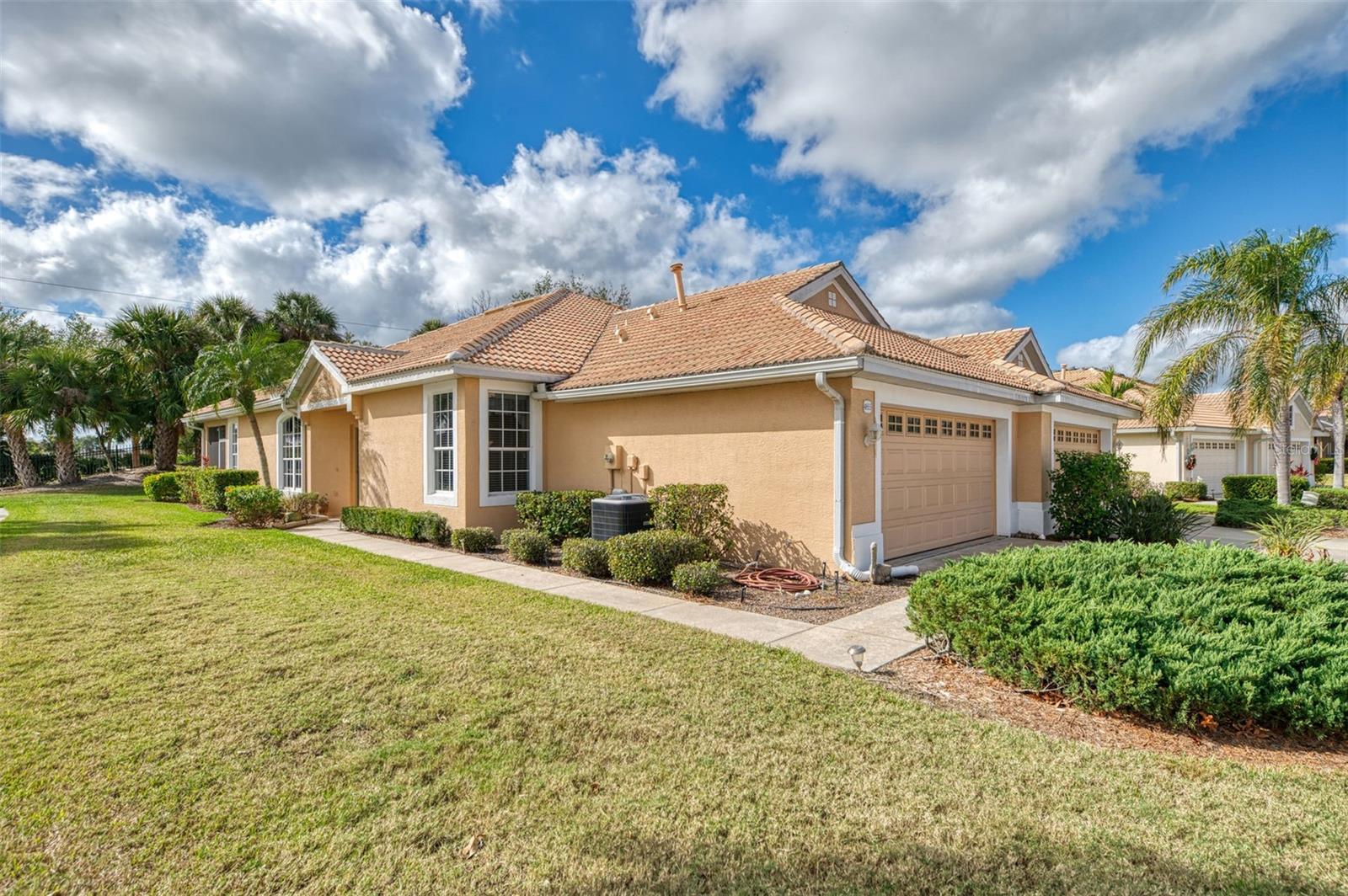 Welcome to the GATED and MAINTENANCE FREE COMMUNITY of HERON CREEK GOLF AND COUNTRY CLUB!! Featuring 27 holes of Arthur Hills Designed Championship Golf Course where you will mostly certainly enjoy the luxurious and resort lifestyle at Heron Creek. Membership plans are available for year-round access to 27 holes of glorious championship golf with limits on the number of membershipsWhether you are searching for a Seasonal, Year Round, or Investment Property this villa awaits you! This lovely Villa features 1341 sq ft of living space, a split floor plan, high ceilings 2 bedrooms, 2 baths, an informal eat in kitchen, as well as dining room and a full 2 car garage. The Primary suite features a tray ceiling, enginerred hardwood floors and an ensuite bathroom. The guest bedroom is charming & bright and is adjacent to a full bath. The open kitchen features ample counterspace, wood cabinetry, a breakfast bar and a kitchenette. The rear covered and screened lanai provides an area to relax and enjoy the Florida outdoors. This villa is located near the rear gate allowing for convenient access in and out of the community. Heron Creek's exceptional amenities include a 21,000 sq ft club house, 27 holes of Golf, a premier golf practice facility, resort style pool & spa, as well as and abundance of social activities, fitness center, Tennis courts & a Restaurant with both formal & casual dining options! Club Membership is required and offers three levels of Club Membership beginning at a reasonable fee of only $268/month. There are NO FLOOD ZONE OR CDD FEES here and HOA Fees include lawn care, exterior painting, trimming trees and shrubs, mulching, irrigation, cable tv and internet. Heron Creek is also conveniently located with easy access to I-75 & US-41, Shopping, Parks, WELLEN PARK, COOL TODAY PARK (The Atlanta Braves Spring Training Stadium), and a Brand New COSTCO. Only a short drive away ..Nearby Venice and Englewood provide access to a multitude of Beautiful Beaches, as well. Please Call to Schedule your showing TODAY, before it's too late !!