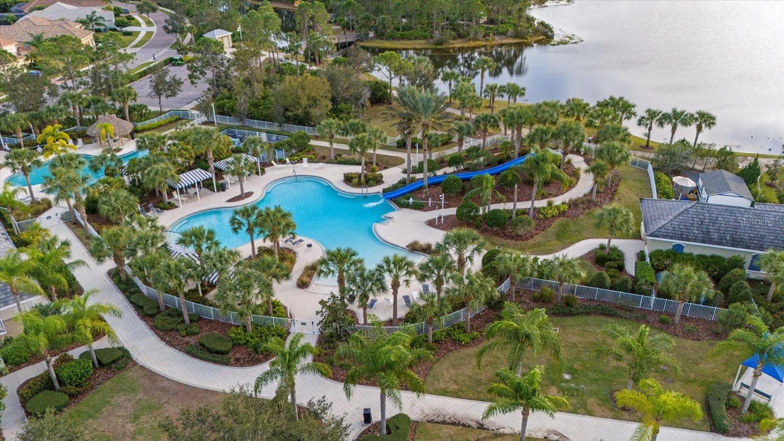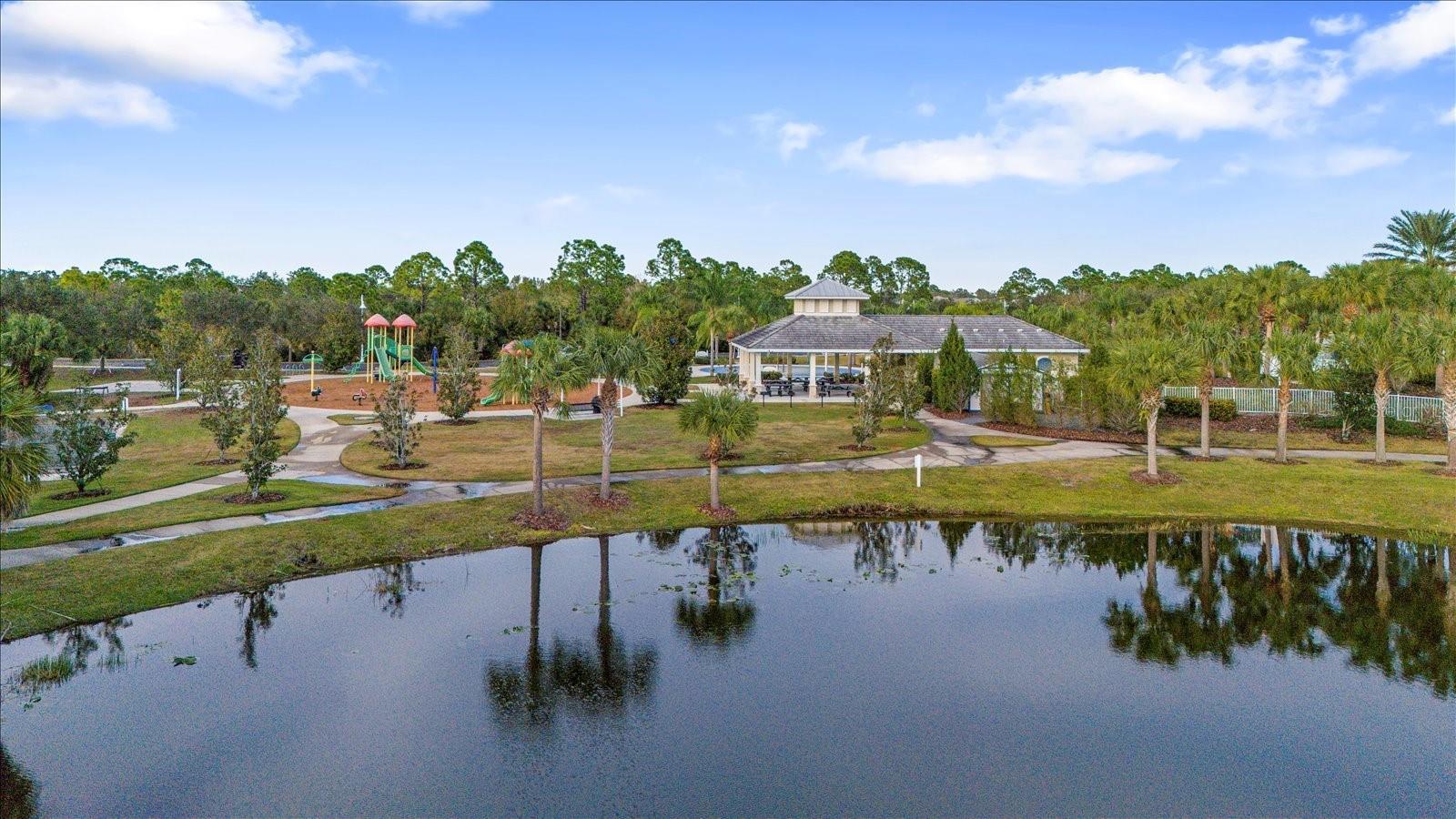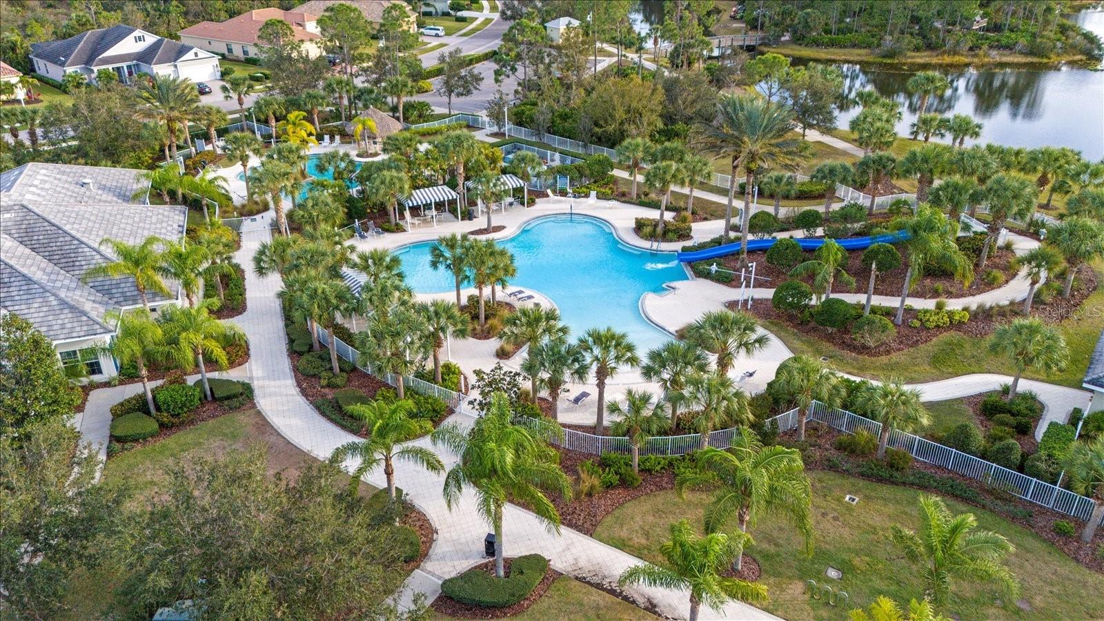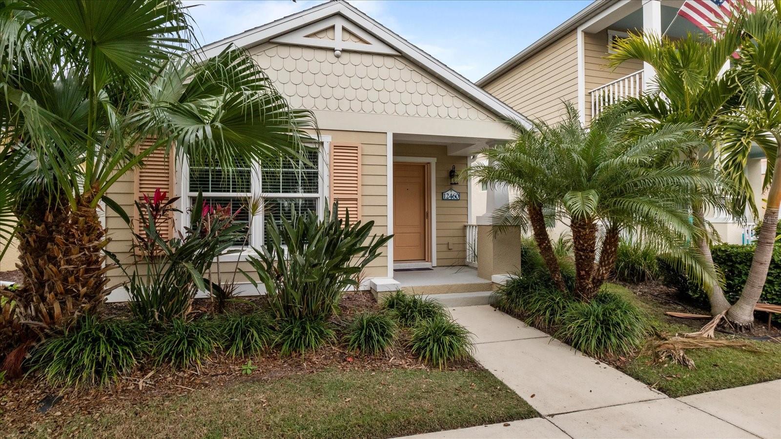 BEST VALUE AT GRAN PALM!! GREAT FOR INVESTORS !! Has porch in the front, in the back the 2 car garage . Amenities, Views and Location!!! This picture perfect Rose Cottage is like walking features 2 Bedrooms, 2 Full Baths and Attached 2 Car Garage impeccably maintained, located in the highly sought after the Gated, Resort like Grand Palm Community. Move-in Ready! Lots and lots of Upgrades! The owner has thought of everything! As you enter the home, you will immediately notice how Open and Bright it is. The Solid Wood Front Door also has a Retractable Screen Door allowing the Florida breezes to come in. The Family Room and beautiful large Kitchen share an open plan, with a breakfast bar with Pendant Lighting easily sits 3 or 4, and there is also a dining area with chandelier. The Kitchen has 36 inch wood cabinets, trimmed with crown molding . Closet Pantry. All Stainless Steel Appliances. Volume Ceilings. Stone Backsplash, Granite Counter Tops. Both Bathrooms have Corrian Counters. Custom Ceiling Fans in Family Room, and each Bedroom. 18 "Neutral tile in living areas. 2" faux wood blinds and shutters throughout. Upgraded luxury vinyl in the Bedrooms. California Closets in each Bedroom. Outdoor Coach Lights on each side of the Garage Door. Inside Laundry Room has additional custom built-in cabinets. Miles of walking and bike trails surround the Lake and Park just outside your front door with lush natural Florida landscaping Maintenance Free Living all year round!