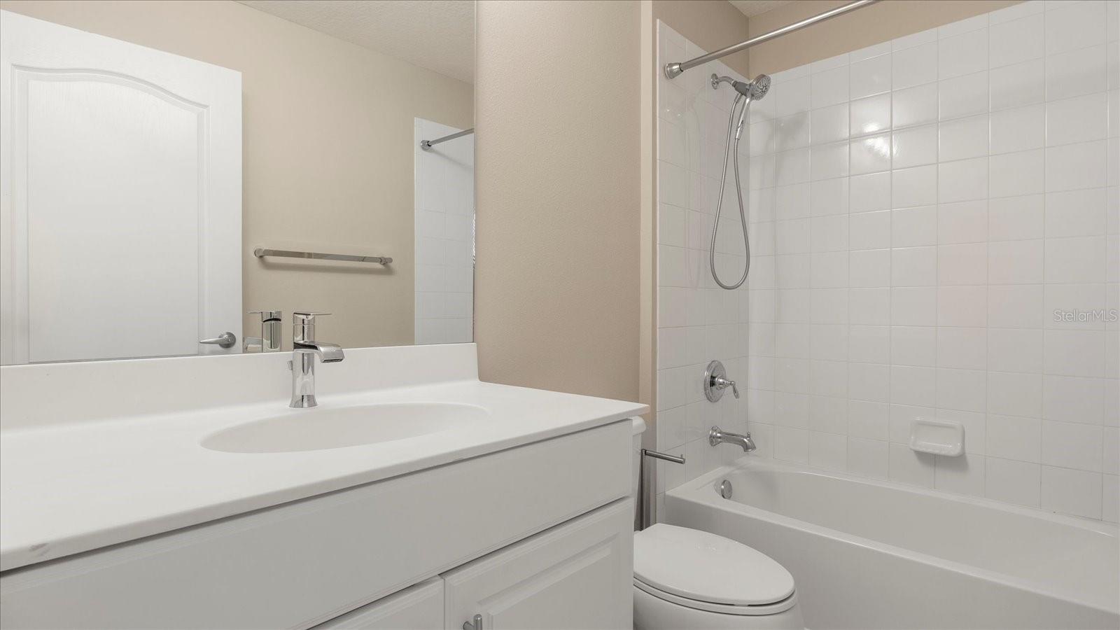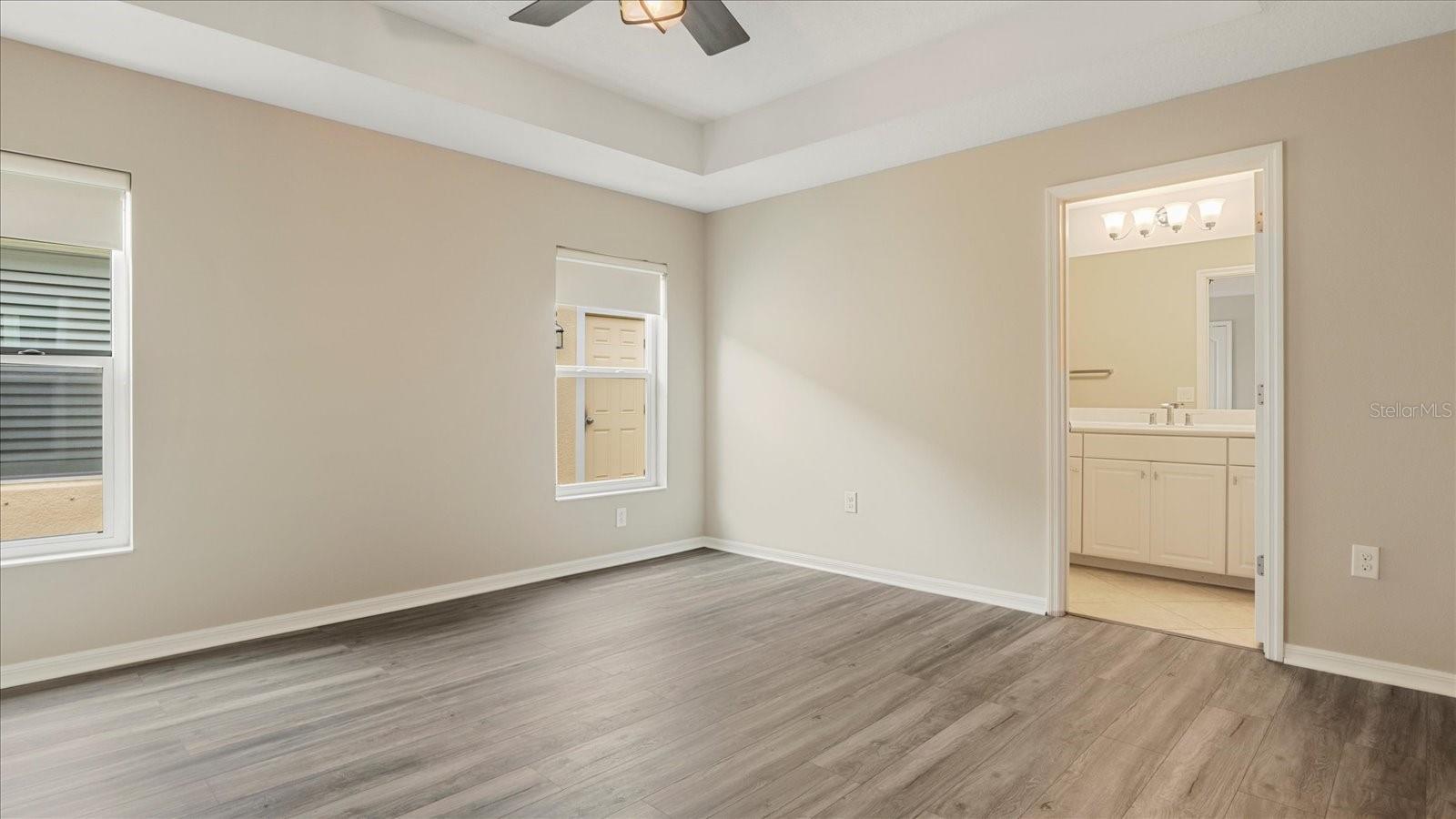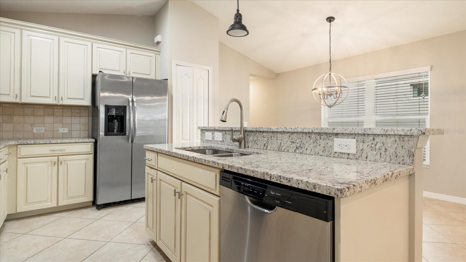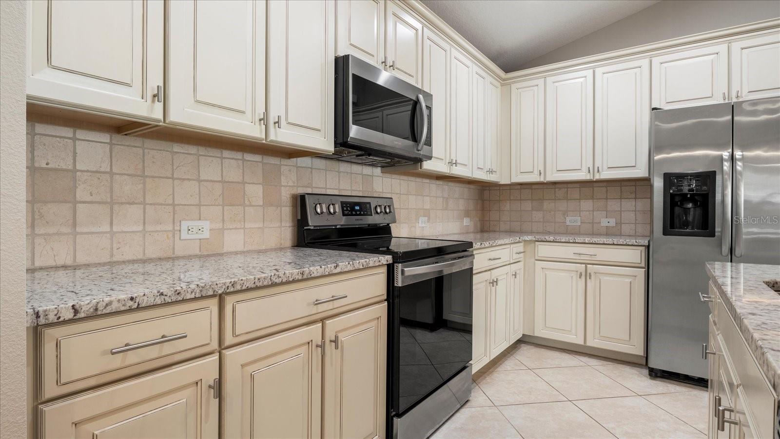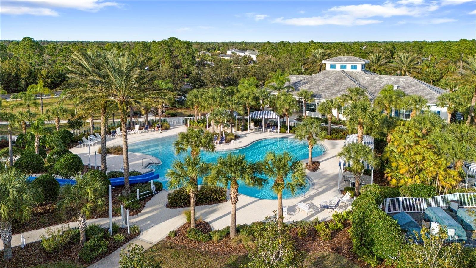 BEST VALUE AT GRAN PALM!! GREAT FOR INVESTORS !! Has porch in the front, in the back the 2 car garage . Amenities, Views and Location!!! This picture perfect Rose Cottage is like walking features 2 Bedrooms, 2 Full Baths and Attached 2 Car Garage impeccably maintained, located in the highly sought after the Gated, Resort like Grand Palm Community. Move-in Ready! Lots and lots of Upgrades! The owner has thought of everything! As you enter the home, you will immediately notice how Open and Bright it is. The Solid Wood Front Door also has a Retractable Screen Door allowing the Florida breezes to come in. The Family Room and beautiful large Kitchen share an open plan, with a breakfast bar with Pendant Lighting easily sits 3 or 4, and there is also a dining area with chandelier. The Kitchen has 36 inch wood cabinets, trimmed with crown molding . Closet Pantry. All Stainless Steel Appliances. Volume Ceilings. Stone Backsplash, Granite Counter Tops. Both Bathrooms have Corrian Counters. Custom Ceiling Fans in Family Room, and each Bedroom. 18 "Neutral tile in living areas. 2" faux wood blinds and shutters throughout. Upgraded luxury vinyl in the Bedrooms. California Closets in each Bedroom. Outdoor Coach Lights on each side of the Garage Door. Inside Laundry Room has additional custom built-in cabinets. Miles of walking and bike trails surround the Lake and Park just outside your front door with lush natural Florida landscaping Maintenance Free Living all year round!