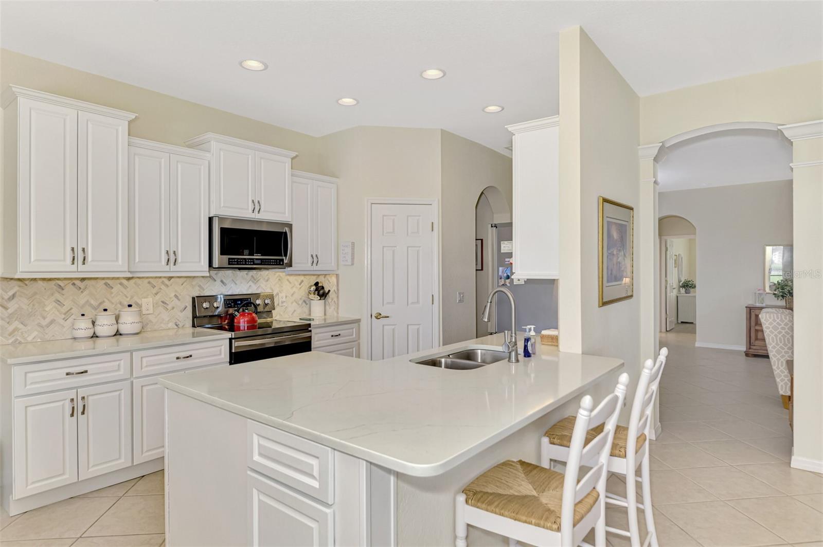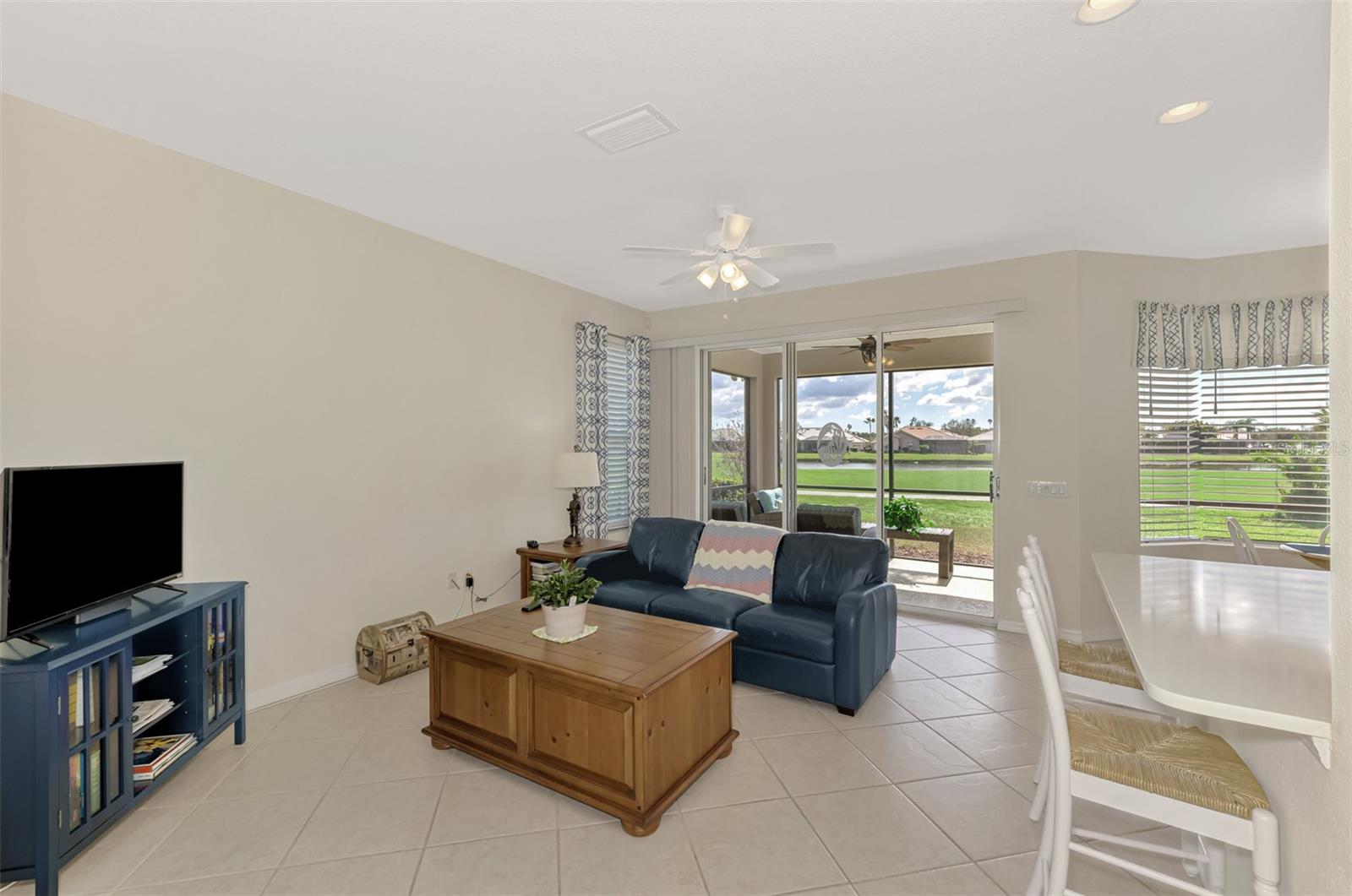 **HERON CREEK GOLF AND COUNTRY CLUB ** Rarely Available 1845 SQ FT WHITEHALL paired Villa with PANORAMIC GOLF and WATER Views! Prepare to fall in love because if you act quickly this sweetheart of a home will be sure to steal your heart and leave a trail of brokenhearted buyers behind. This meticulously maintained home is close to the clubhouse and amenities and is situated on a premium homesite with lush landscaping and a sprawling back yard with coveted SOUTHERN EXPOSURE overlooking #9 FAIRWAY of the Marsh Course. This villa lives large with well over 1800 sq feet of living area perfectly suited to easy living and entertaining alike. The well thought out floor plan features a split bedroom layout with spacious primary retreat with double tray ceilings, more than ample closet space and an ensuite bath w/ dual vanities and spa like walk in shower, There is a private guest bedroom to the front of the home with an adjacent full bath as well as a versatile flex room with large closet that could be a perfect home office hobby room or extra bedroom if needed. There is a a living room as well as a great room area off the kitchen but lovely open arches between the two areas enhance the OPEN CONCEPT feel. The kitchen has been thoughtfully updated with exquisite Quartz counter height counter tops and custom tile backsplash, steepled white wood cabinetry with top crown molding and all SS appliances. There is plenty of room for storage including a deep closet pantry, There is a formal dining area off the kitchen as well as a sun filled breakfast nook overlooking the lanai and golf course. The lanai stretches the whole width of the home so there is lots of room to spread out and relax and a great area for a summer kitchen setup at the far end Note. there is ample room for a custom private pool to be added to the back of the property ( With HOA and City Approval) if so desired. This home is move in ready nothing to do here ! Furnishings and Golf cart may be available under separate contract. Some of the many bonus features include New TILE ROOF, Hurricane rated windows ,Hurricane roll downs and accordion shutters on the lanai, No carpet Ceramic tile throughout living area LVT in the bedrooms. Heron Creek offers exceptional amenities including a 21,000 sq ft club house, 27 holes of Championship golf Arthur Hills design, resort style pool & spa, a robust social activity calendar, fitness center, Tennis courts & formal & casual dining options! Club Membership is required w/3 membership levels offered beginning at $269/month.*NO CDD FEES * LOW HOA FEES include lawn care, trimmings mulching, irrigation, Cable & HIGH-SPEED INTERNET & Gated entry, conveniently located w/easy access to I-75 &US-41, the Cocoa Plum Shopping , Myakkahatchee Creek trails, WELLEN PARK, Braves Stadium, COSTCO & the SMH health