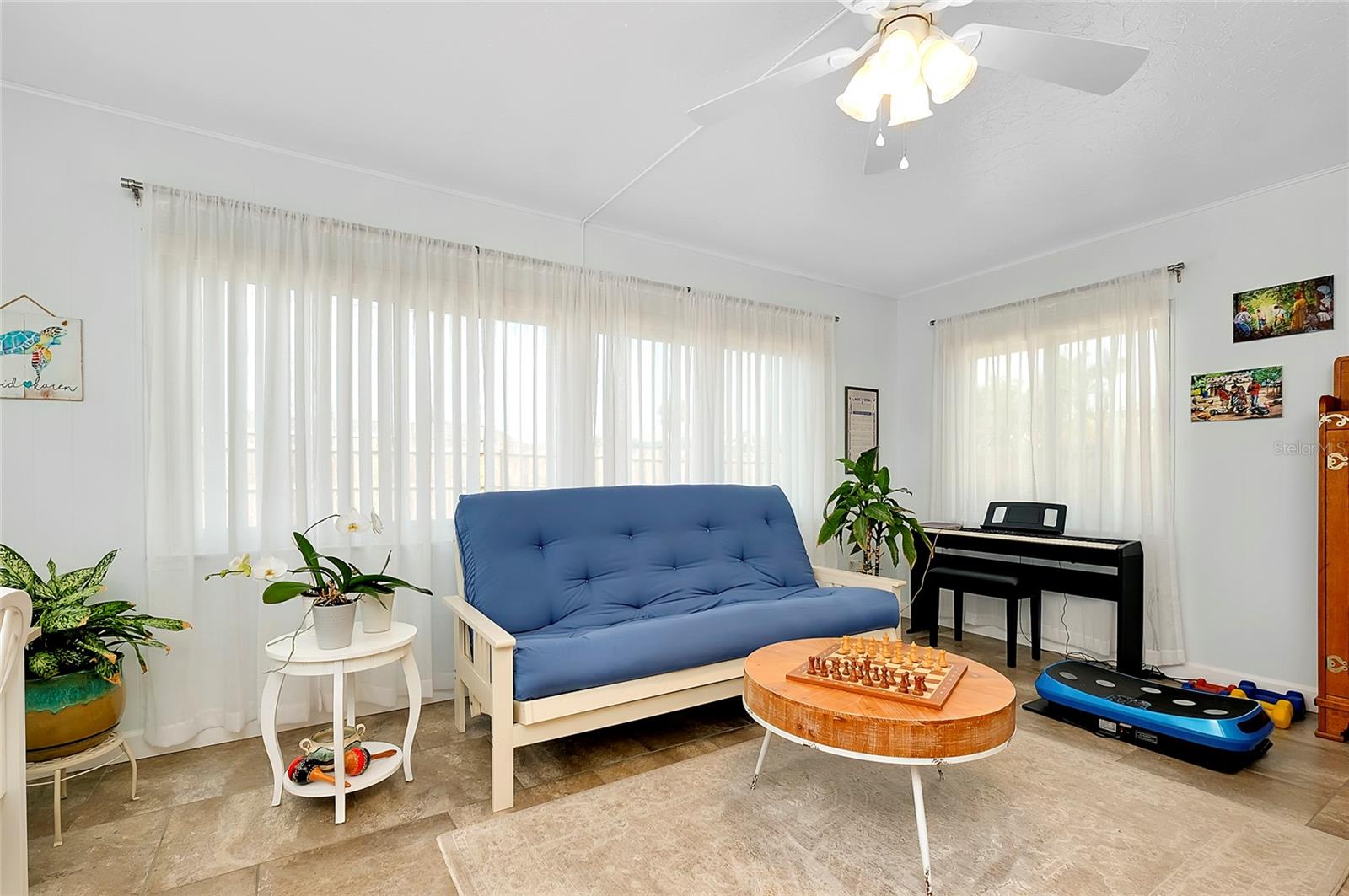 LOCATION LOCATION LOCATION!! This home is close to beaches, shopping, schools and Venice Island! Brand new IMPACT/HURRICANE WINDOWS and front door were installed in 2024! This FURNISHED TURNKEY two-bedroom, two-bathroom, single-family home in Venice Gardens offers 1,369 square feet of living space. The spacious and bright interior features a nice family room as you first enter and leads through the dining area and into the oversized bonus room that is flooded with light from the new windows on every wall. Off the dining room you'll find a recently updated kitchen with newer countertops, cabinets, appliances and garbage disposal. Both bedrooms are generously sized and let in lots of light and have recently been upgraded to LVP flooring - NO CARPET in the home! The two bedrooms share a full bathroom that was updated recently and a second bathroom, conveniently located off the mudroom, is ideal for cleaning up after outdoor activities. Now lets talk about a perfect blank canvas for your future outdoor paradise. This home features an expansive FENCED IN BACKYARD that's perfect for the little ones to play or fun with your K9 friends. Thinking about building a pool? This backyard is the perfect place to build your dream outdoor oasis. The backyard also features two oversized patios, giving you plenty of outdoor space to entertain your friends and family at your weekly BBQ! The beautifully landscaped front yard features a cozy covered porch that is a perfect place to enjoy your morning brew and take in a nice sunrise or a nice cocktail to bask in the glory of another one of our famous daily sunsets. Have a boat or RV and you are wondering where to store it??? Well, problem solved! You can park it right in your side yard and no one will say a thing! That's the benefit of NO HOA. As an added bonus, this home is on PUBLIC WATER and SEWER, so no more messy septic systems or wells to deal with anymore! And don't forget...NO CDD FEES, NO CITY TAXES, NO DEED RESTRICTIONS AND NO HOA fees. Additionally, Venice Gardens Community Center offers an optional and insanely affordable membership that gives you access to a swimming pool, a playground, and a hall for community events if you wish to become member! So what are you waiting for....Call today!!
