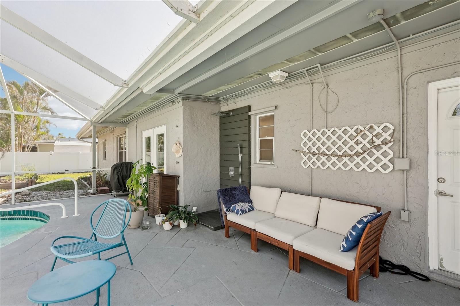 Welcome to your private oasis in the heart of Venice Gardens! This beautifully updated 2-bedroom, 2-bathroom pool home is just minutes from the stunning Gulf beaches, offering the perfect blend of coastal living and modern living. Step inside to discover an updated kitchen featuring sleek countertops, contemporary cabinetry with under cabinet lighting, and stainless-steel appliances perfect for home chefs and entertaining alike. The open-concept living and dining areas provide a bright, airy feel with plenty of natural light. Plenty of room inside for a home office or additional living room space. Outside you'll find a spacious, fully fenced yard with an in-ground pool ideal for relaxing or hosting guests. Rinse off after a beach day in your outdoor shower, then enjoy the Florida sunshine in your private backyard retreat or under the private cabana. Plus, with no deed restrictions, you have the freedom to park your boat, RV, or other recreational vehicles with ease. Located close to shopping, dining, and just a short drive to historic downtown Venice, this home is perfect for year-round living or as a vacation getaway. Don't miss your chance to own a slice of paradise. Schedule your private showing today!