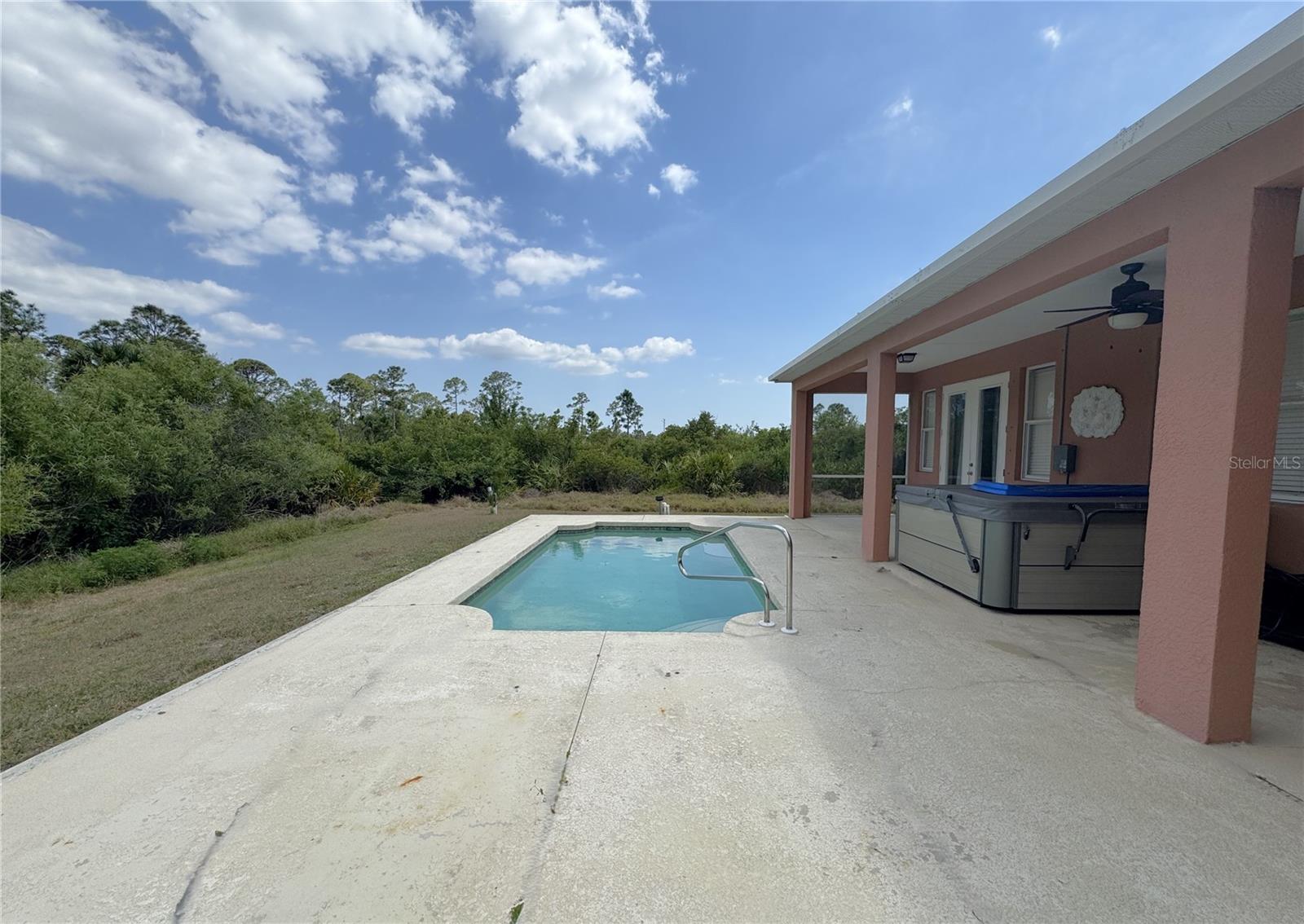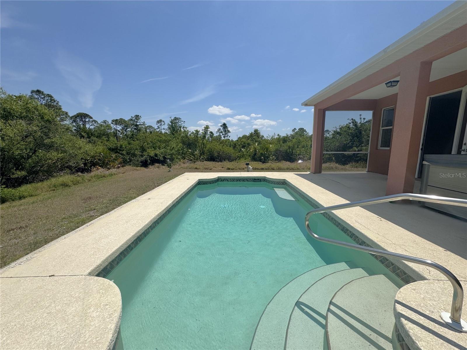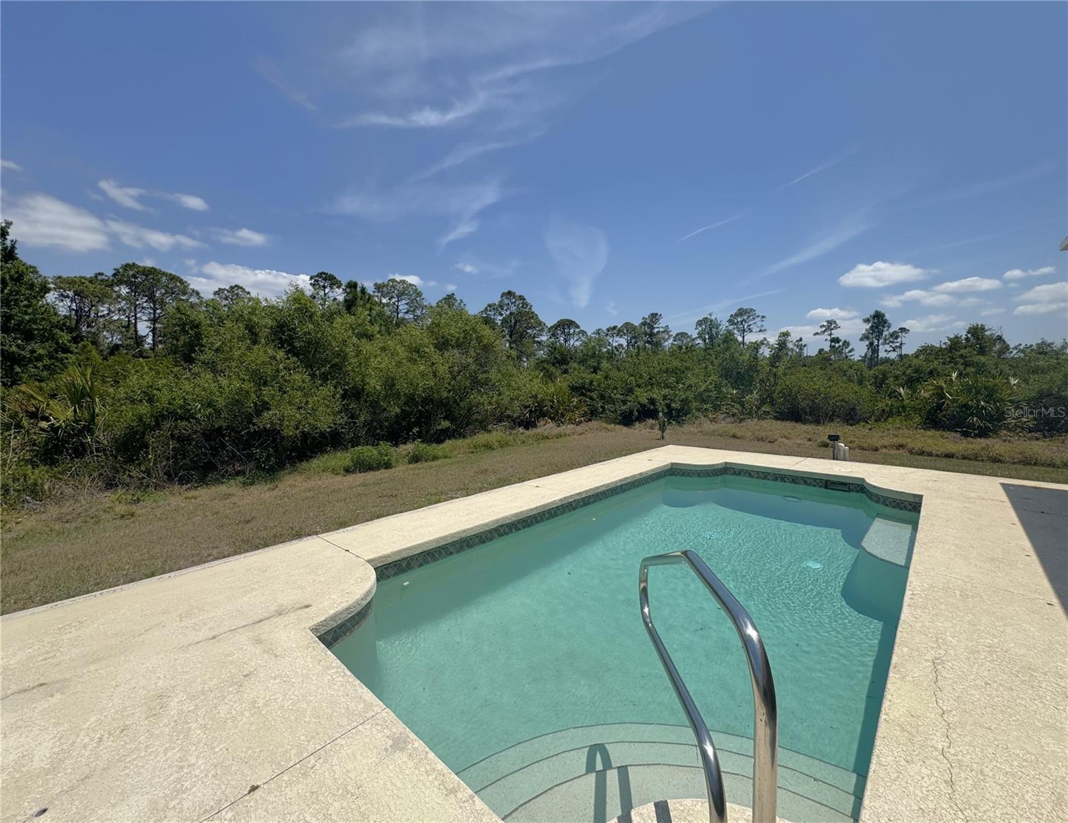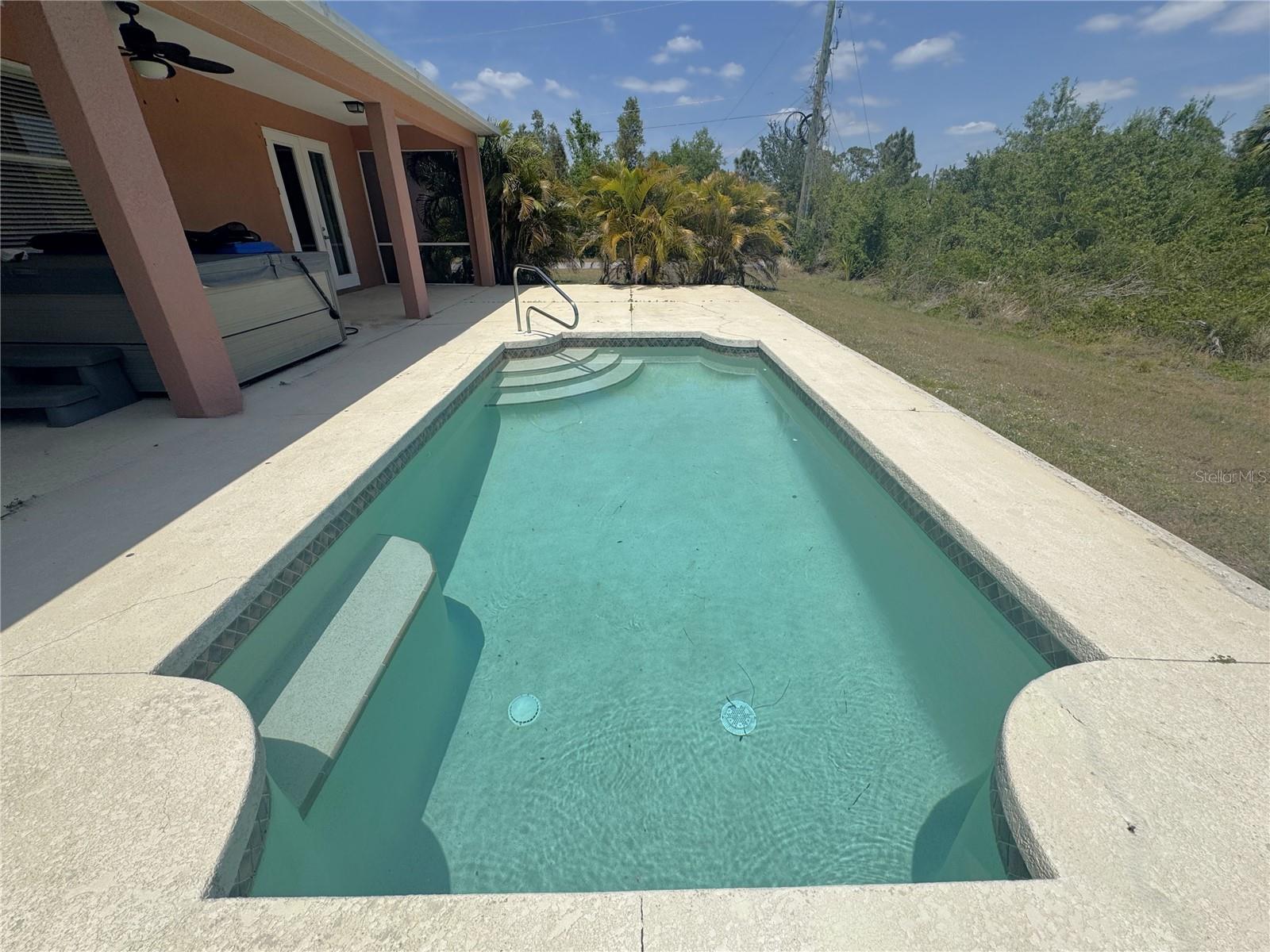 Beautiful corner lot over 1,800 square foot, 4 bedroom, 2 bath, 2 car garage POOL home that DID NOT FLOOD on over a quarter acre with NO HOA, NO CDD, freshly painted, NEW flooring in the bedrooms, 2023 roof, 2022 AC, is awaiting new owners, or could be used a beautiful rental home! The open floorplan is enhanced by high ceilings with recessed lighting, neutral paint, eat in areas in the kitchen, ceramic tile in main living area and baths, laminate flooring in all the bedrooms, two sets of french doors to the partial covered pool oasis, and a plethora of windows to allow natural light to filter through. The well-appointed kitchen presents plenty of counter and cabinetry, kitchen reverse osmosis system, stainless steel appliances, and a breakfast bar that look into the dining and living areas. The primary suite has a set of french doors to provide entry to the lanai, two nicely appointed walk-in closets, and an en-suite bath with a dual sink vanity with make-up area, a walk-in tiled shower, soaking tub, and a water closet. On the other end of the home are three sizable guest bedrooms and a guest bath with a tub and shower combo. Additional features include a covered front porch, a multitude of ceiling fans, gutters and downspouts, laundry inside the oversized garage, and a water heater. This home is near North Port and Port Charlotte restaurants, shopping, golf courses as well as a short drive to various gulf beaches and marinas! Call for your private showing today!
