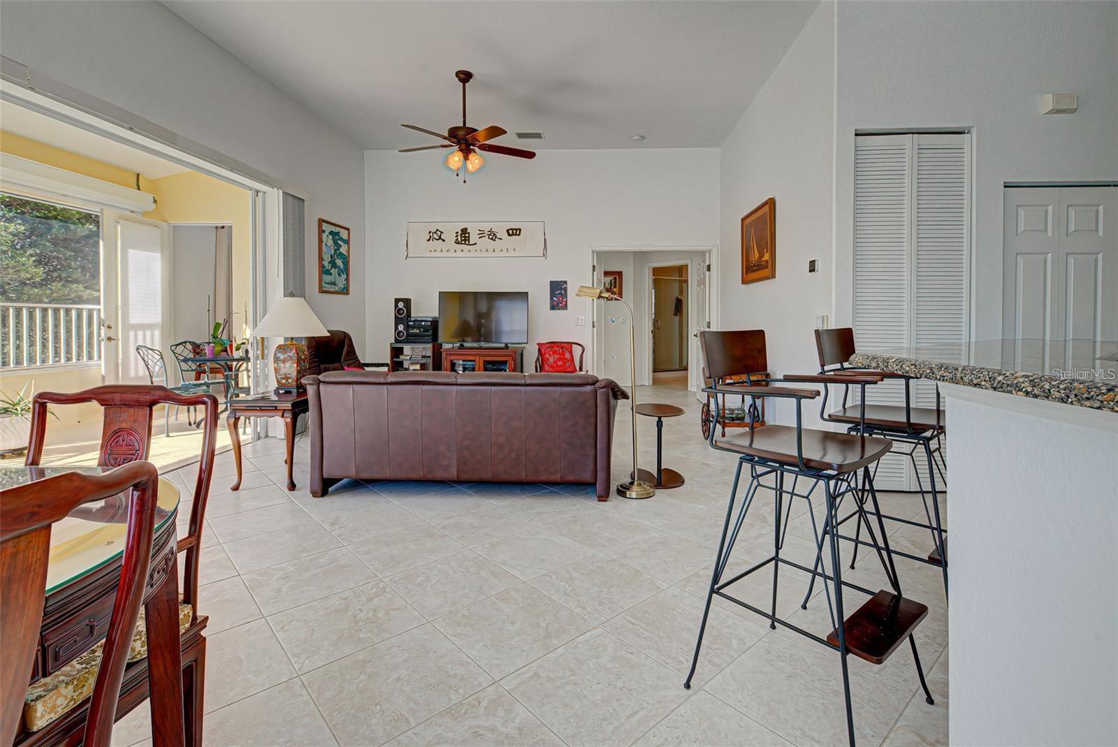 Auction Property. Online Auction June 26 ~ July 2, Register at our website, This Condo unit will be sold at Auction, Online, so any price in this listing or in any advertisement is for reference only and has NO BEARING on what the sales price will be. The sales price will be determined at auction, and you may bid any amount. There is NO starting bid price. Gate community; pet-friendly community has a Tuscan flair and is centrally located in the heart of Venice. In this three bedroom condo, the first floor is home to a spacious 2-car garage, with the living area situated on the second floor to take advantage of the waterfall view and treetop privacy. The kitchen and den/study are open to the living area and dining room, 11' ceilings enhance the feeling of treetop living and bring in tons of natural light. Thoughtfully designed with over 2,000 square feet, tons of storage, an interior laundry room, split plan bedroom layout, and huge 20' screened lanai...The kitchen features wooden cabinetry, granite countertops, a pantry and a breakfast bar open to the living area. A set of elegant double doors leads the way into the comfortable primary bedroom, complete with en suite bathroom, walk-in closet and a French door that opens to the lanai, perfect for lazy morning coffee on the porch. Two additional bedrooms share a bathroom toward the front of the condo, Property improvements made by the seller include a new dishwasher in 2019, new air conditioning system (2017), updated primary bathroom (2016), hot water heater (2015), ceramic tile flooring (2017), carpet (2013), kitchen appliances (2013), sink in laundry room (2013), and high-tech motorized retractable remote-operated storm shutters were installed in the lanai in 2015. Recent community improvements include a NEW TILE ROOF, NEW GUTTERS & EXTERIOR PAINT in 2024. And Walk to Triano's clubhouse and resort-style heated community pool through a lush brick paver pathway, where the pool area is framed by a peaceful lake and surrounded by waterfalls. There is a fitness room so you can maintain an active lifestyle, Triano's central location just minutes from our pristine area beaches, shopping, grocery stores, fabulous restaurants, the historic downtown, convenient to I-75 North or South Bound.
