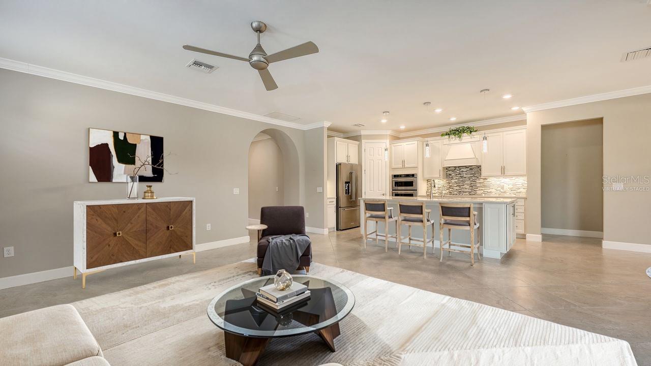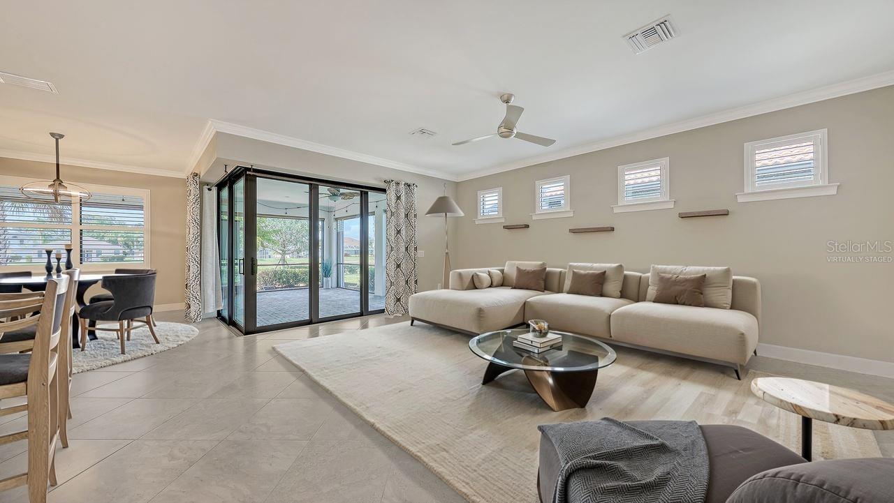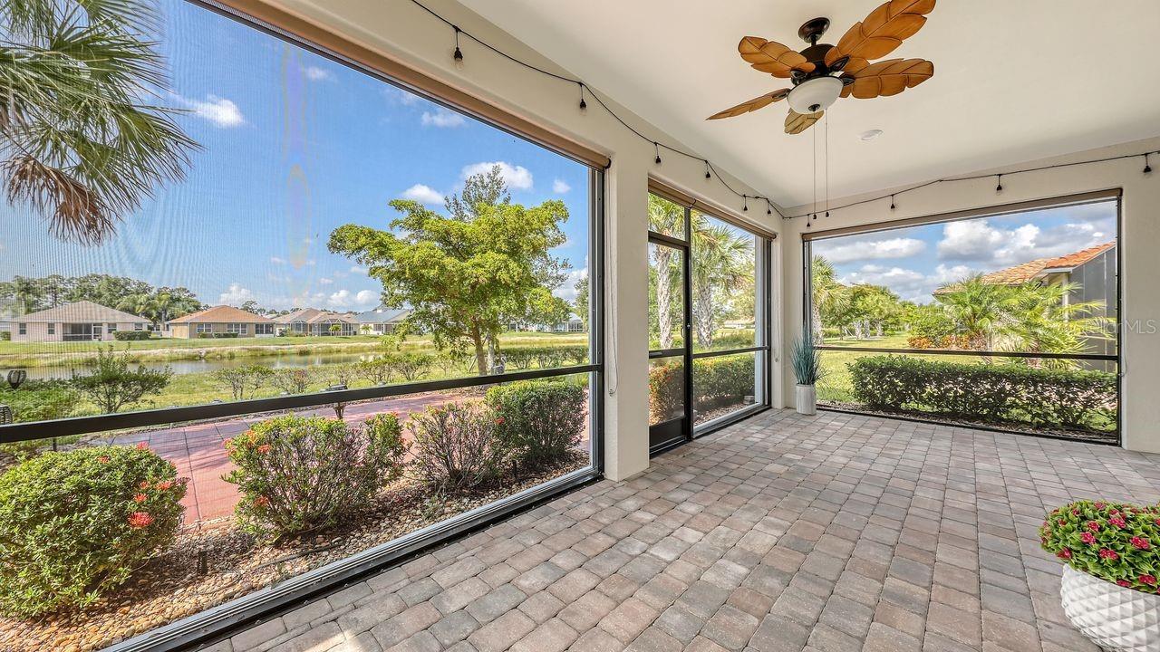 Welcome to a better life in one of Florida's top-rated 55+ communities, where luxury meets convenience and every detail is designed to elevate your day. This impeccably maintained home offers a VA ASSUMABLE LOAN at 2.25%, peaceful WATER VIEWS as your daily backdrop and a floor plan built for both entertaining and effortless living. A fully retractable ZERO-EDGE LANAI DOOR blurs the line between indoor and outdoor space, letting in the breeze and sunshine year-round. Inside, the open-concept layout is light, bright, and thoughtfully upgraded. The kitchen is a standout with SOLID WOOD CABINETRY, QUARTZ COUNTERS, a spacious island with breakfast bar, CONVECTION OVEN, stylish pendant lighting, and an abundance of CABINET and PANTRY space. You'll also enjoy a WATER SOFTENER and REVERSE OSMOSIS system for crystal-clear drinking water. Throughout the home, you'll find PORCELAIN TILE laid on the diagonal, PLANTATION SHUTTERS, 8-FOOT DOORS, and ceiling fans throughout with a 2022 AC and a Reme Halo UV air purifier. The primary suite offers peaceful WATER VIEWS, a WALK-IN CLOSET, DUAL SINKS, a water closet, and a WALK-IN SHOWER. A separate den with a BUILT-IN MURPHY BED and closet easily transitions into an office or guest room. And with an OVERSIZED TANDEM GARAGE featuring an EPOXY FLOOR, OVERHEAD STORAGE RACKS, and ACCORDION-STYLE HURRICANE SHUTTERS, every practical need is already handled. The lifestyle? TRULY UNMATCHED. CYPRESS FALLS is a RESORT-STYLE, GATED 55+ COMMUNITY offering everything from a RESORT POOL and RESISTANCE POOL to PICKLEBALL and TENNIS COURTS, a DOG PARK, STATE-OF-THE-ART FITNESS CENTER, BILLIARDS ROOM, CAFE WITH WI-FI, and even RESIDENT GARDEN PLOTS. A FULL-TIME LIFESTYLE DIRECTOR keeps the calendar full, making it easy to stay social, active, and inspired. Located in NORTH PORT with easy access to COOLTODAY PARK, nearby GOLF COURSES, and the pristine GULF BEACHES, this home delivers more than a place to live, it offers the lifestyle you've been waiting for. Come experience it in person!