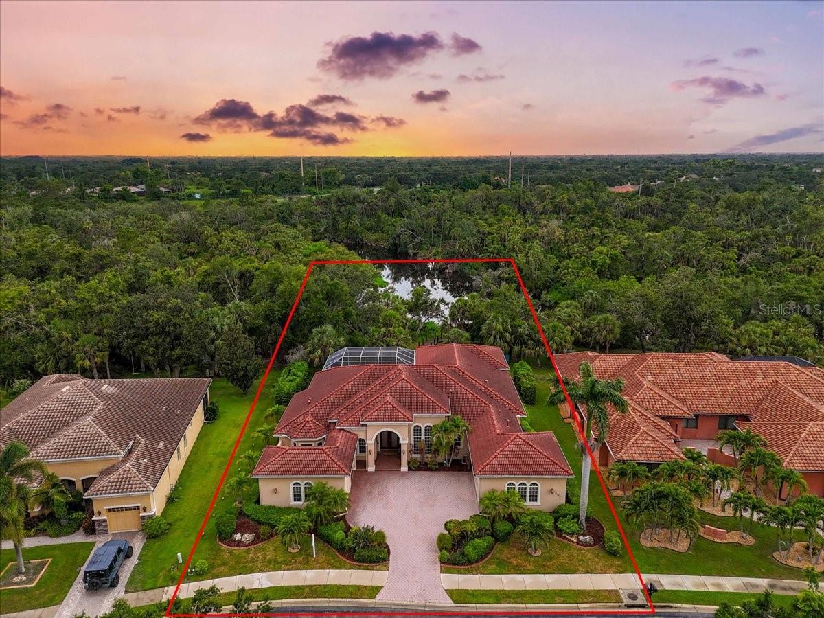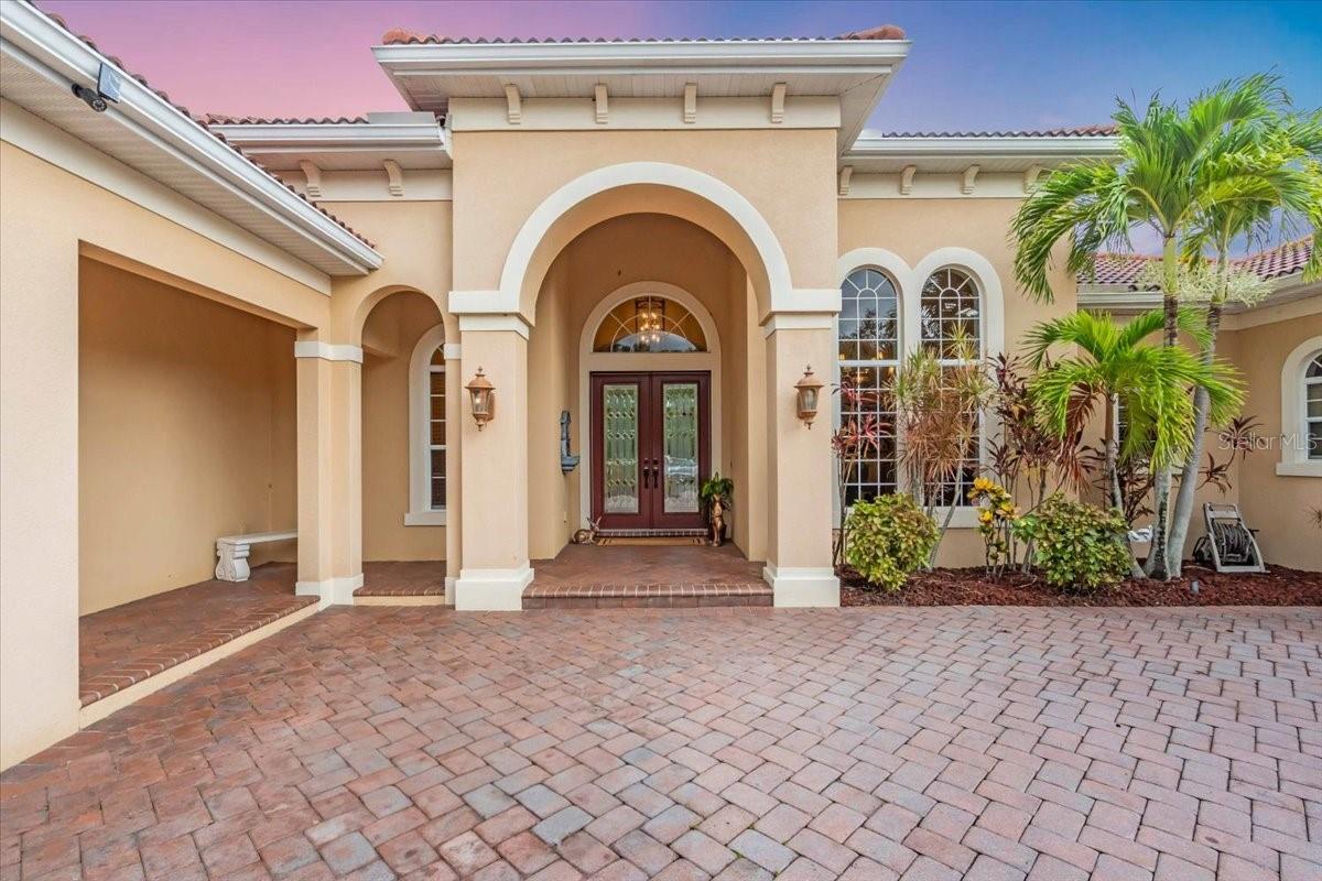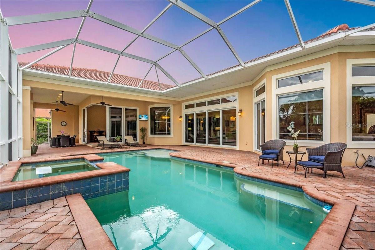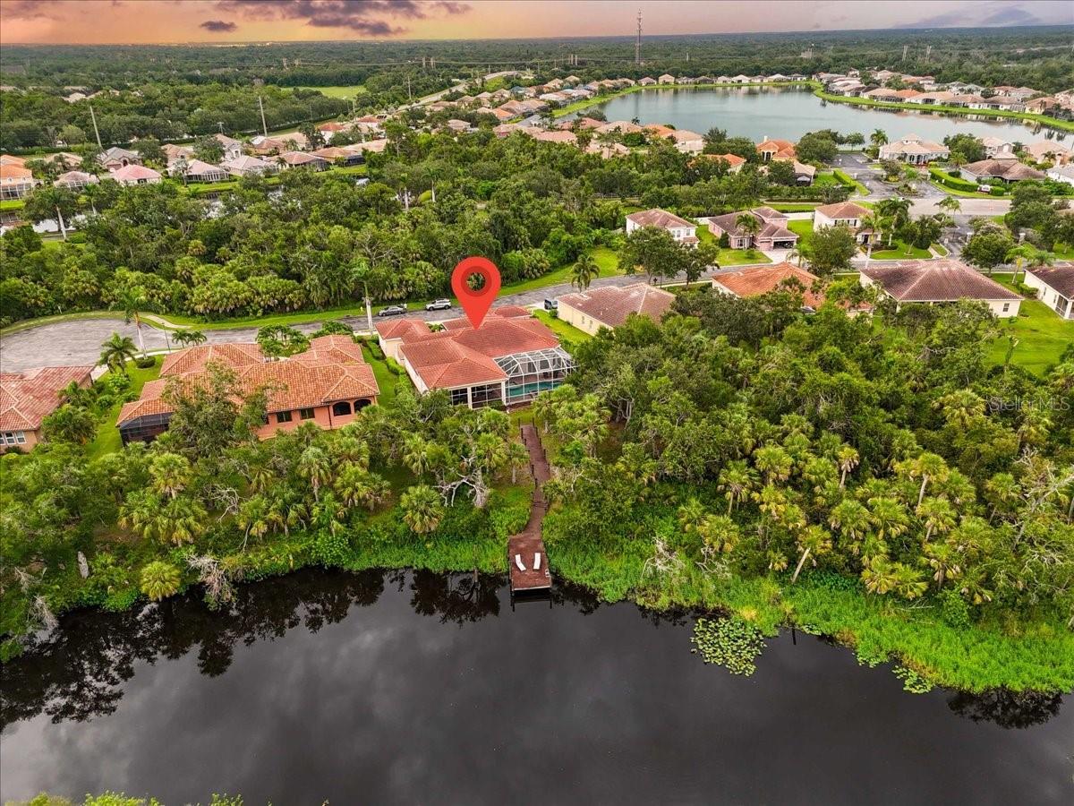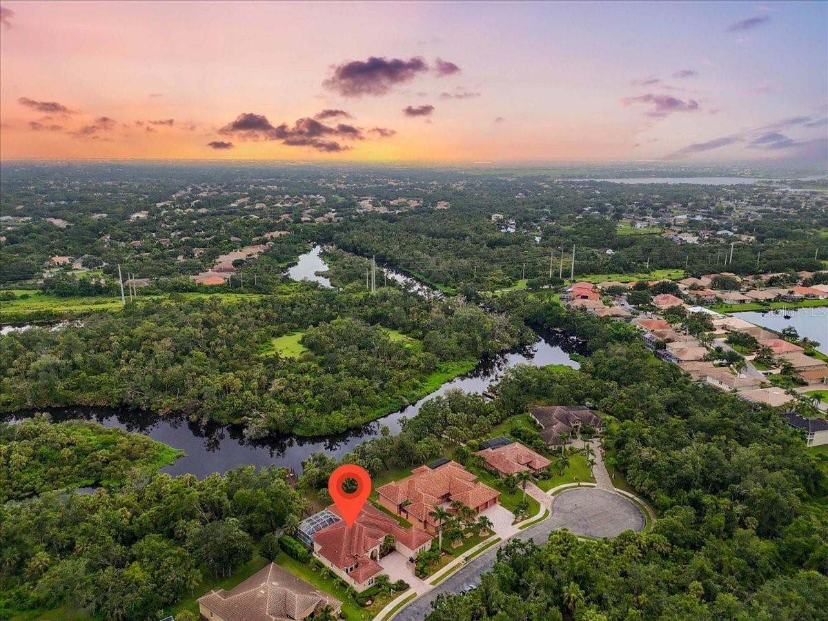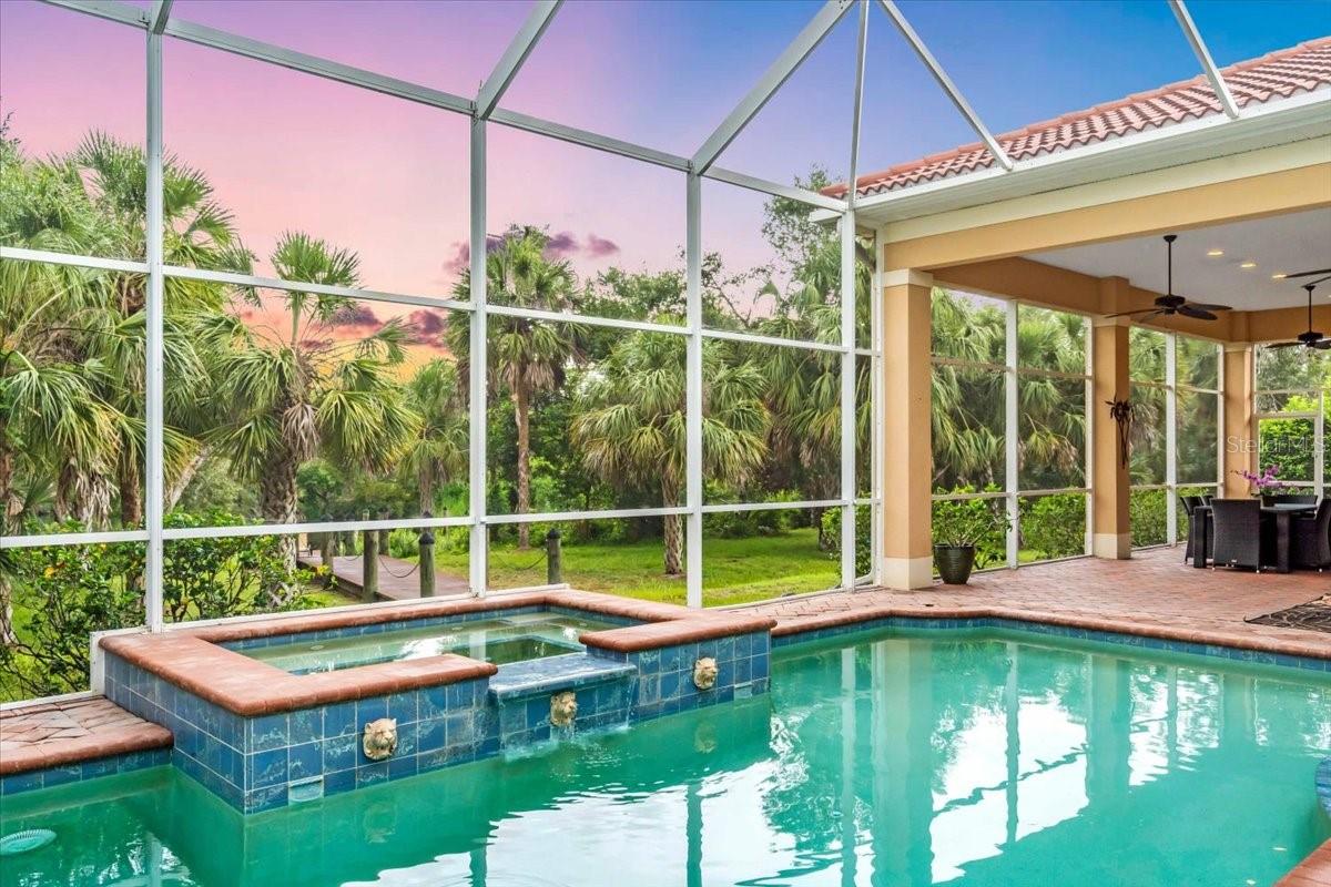 Welcome to a refined sanctuary of elegance and tranquility--this custom-designed estate by renowned builder John Cannon offers the ultimate in Florida waterfront luxury. Perfectly positioned in the highly sought after community of Walker's Cove, on a private cul-de-sac along the serene Braden River, this exquisite residence captures sweeping water views and direct access for boating or quiet moments dockside. With 3 spacious bedrooms, 3.5 bathrooms, a private office, and a den, this thoughtfully designed floorplan combines grand scale with intimate comfort. For the automotive enthusiast, a generous brick-paver driveway leads to both a two-car and single-car garage, offering form, function, and timeless curb appeal.Step through the grand entryway and be captivated by 20-foot ceilings, Palisade palm ceiling fans, and custom light fixtures that set a tone of understated opulence. Zero-corner pocket sliders dissolve the line between indoors and out, filling the home with natural light and inviting you to savor sweeping riverfront vistas from nearly every room.The gourmet kitchen is a culinary dream, anchored by a Thermador 5-burner gas cooktop, hidden integrated refrigerator, and rich custom cabinetry. Overlooking the living space and lush backyard, the aquarium glass window in the dining nook offers a picture-perfect frame of the private pool and garden beyond.The owner's retreat is a peaceful escape with its own climate control, dual walk-in closets, and a spa-like bath featuring a soaking tub, walk-through glass shower, and a secret garden view--an indulgent hideaway within your home.Designed for entertaining, the split floorplan includes a guest wing with a den and wet bar, while outside, the resort-style terrace awaits. Enjoy a dip in the heated pool or six-person spa, fire up the grill, or unwind beneath the stars on the illuminated boat dock, where mornings begin with coffee over the water and evenings end with a toast to the good life.Built with enduring quality and peace of mind--hurricane-impact windows, updated HVAC systems under warranty, and recent upgrades to the pool heater and pump--this home is truly move-in ready.Located just minutes from Lakewood Ranch, Sarasota's world-class beaches, UTC Mall, and I-75, this home in the exclusive gated enclave of Walker's Cove offers not just a residence, but a lifestyle of distinction.