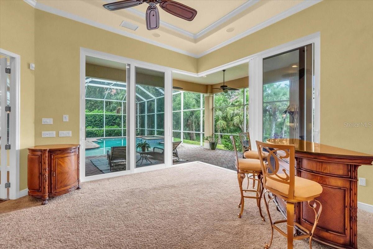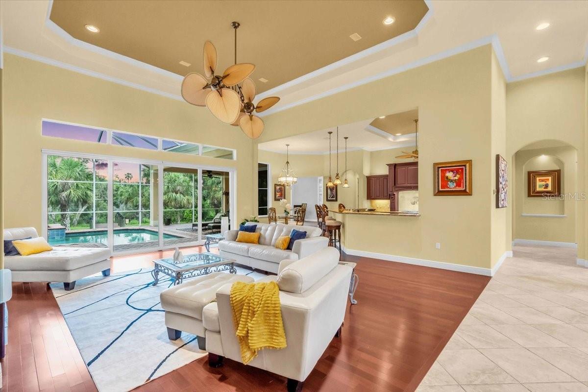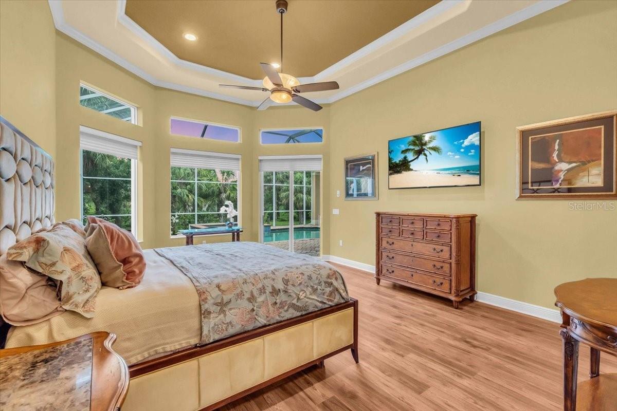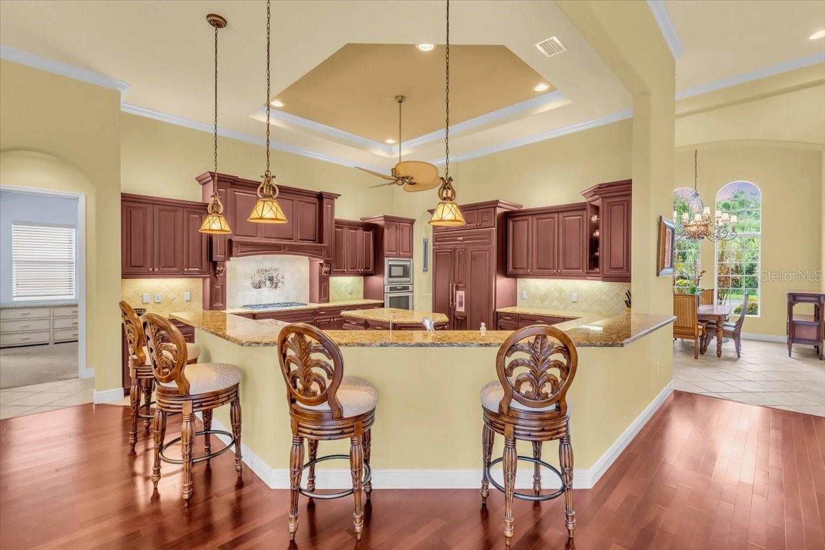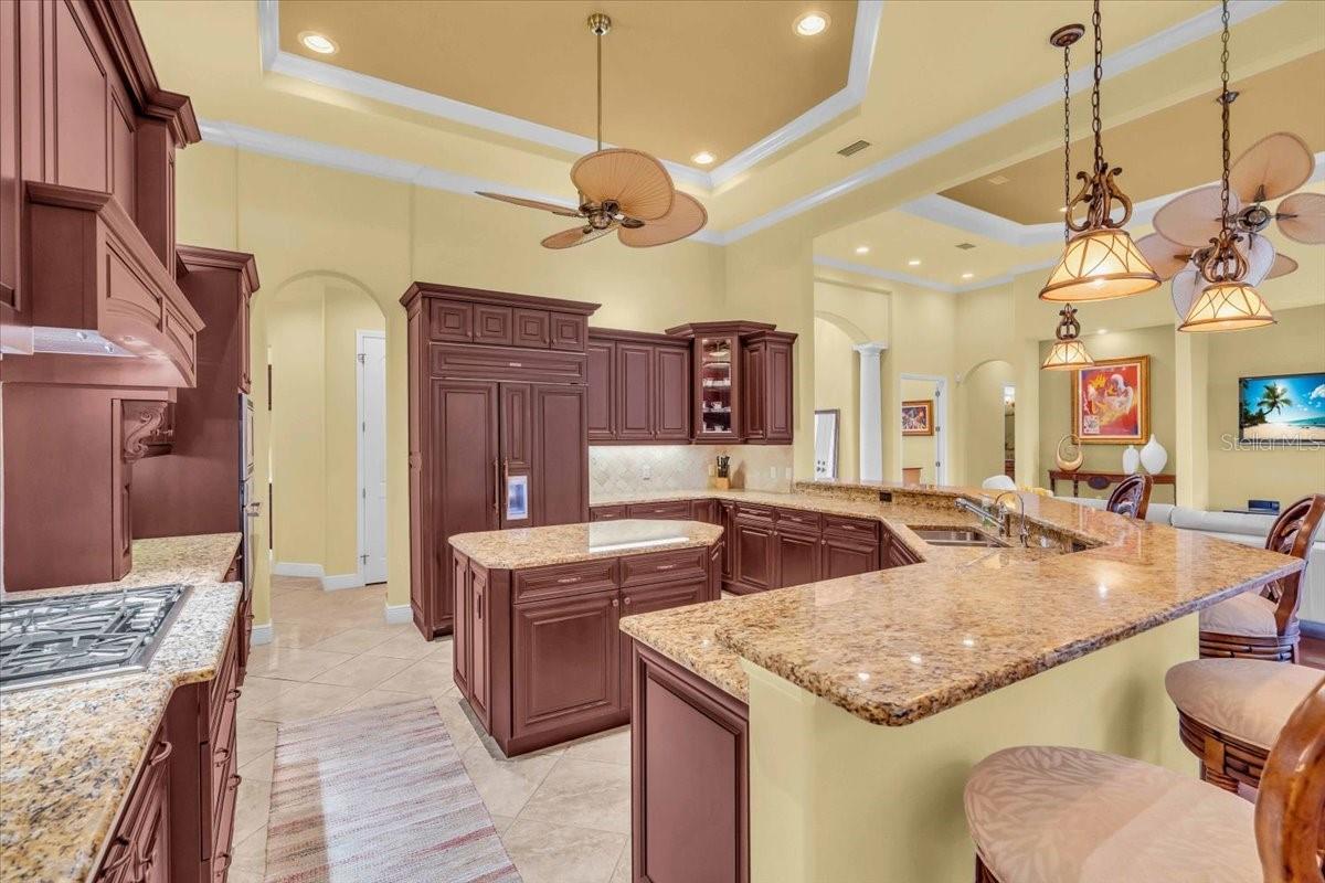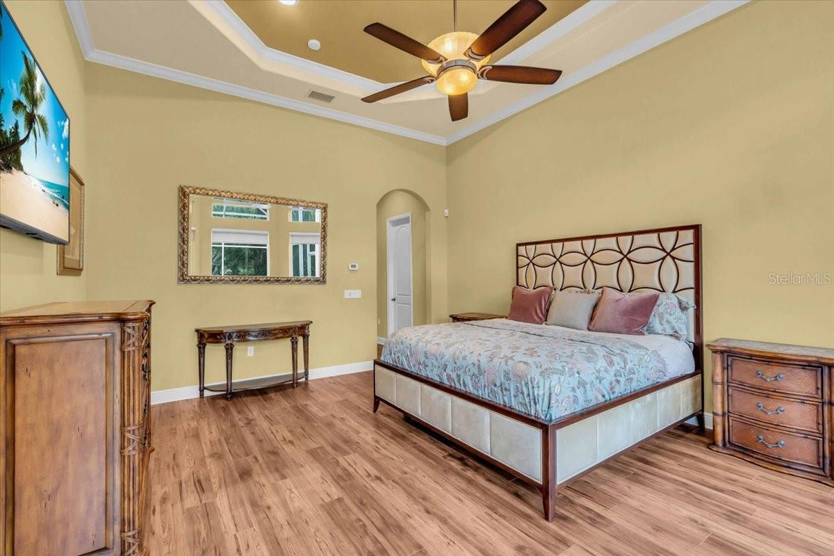 Welcome to a refined sanctuary of elegance and tranquility--this custom-designed estate by renowned builder John Cannon offers the ultimate in Florida waterfront luxury. Perfectly positioned in the highly sought after community of Walker's Cove, on a private cul-de-sac along the serene Braden River, this exquisite residence captures sweeping water views and direct access for boating or quiet moments dockside. With 3 spacious bedrooms, 3.5 bathrooms, a private office, and a den, this thoughtfully designed floorplan combines grand scale with intimate comfort. For the automotive enthusiast, a generous brick-paver driveway leads to both a two-car and single-car garage, offering form, function, and timeless curb appeal.Step through the grand entryway and be captivated by 20-foot ceilings, Palisade palm ceiling fans, and custom light fixtures that set a tone of understated opulence. Zero-corner pocket sliders dissolve the line between indoors and out, filling the home with natural light and inviting you to savor sweeping riverfront vistas from nearly every room.The gourmet kitchen is a culinary dream, anchored by a Thermador 5-burner gas cooktop, hidden integrated refrigerator, and rich custom cabinetry. Overlooking the living space and lush backyard, the aquarium glass window in the dining nook offers a picture-perfect frame of the private pool and garden beyond.The owner's retreat is a peaceful escape with its own climate control, dual walk-in closets, and a spa-like bath featuring a soaking tub, walk-through glass shower, and a secret garden view--an indulgent hideaway within your home.Designed for entertaining, the split floorplan includes a guest wing with a den and wet bar, while outside, the resort-style terrace awaits. Enjoy a dip in the heated pool or six-person spa, fire up the grill, or unwind beneath the stars on the illuminated boat dock, where mornings begin with coffee over the water and evenings end with a toast to the good life.Built with enduring quality and peace of mind--hurricane-impact windows, updated HVAC systems under warranty, and recent upgrades to the pool heater and pump--this home is truly move-in ready.Located just minutes from Lakewood Ranch, Sarasota's world-class beaches, UTC Mall, and I-75, this home in the exclusive gated enclave of Walker's Cove offers not just a residence, but a lifestyle of distinction.