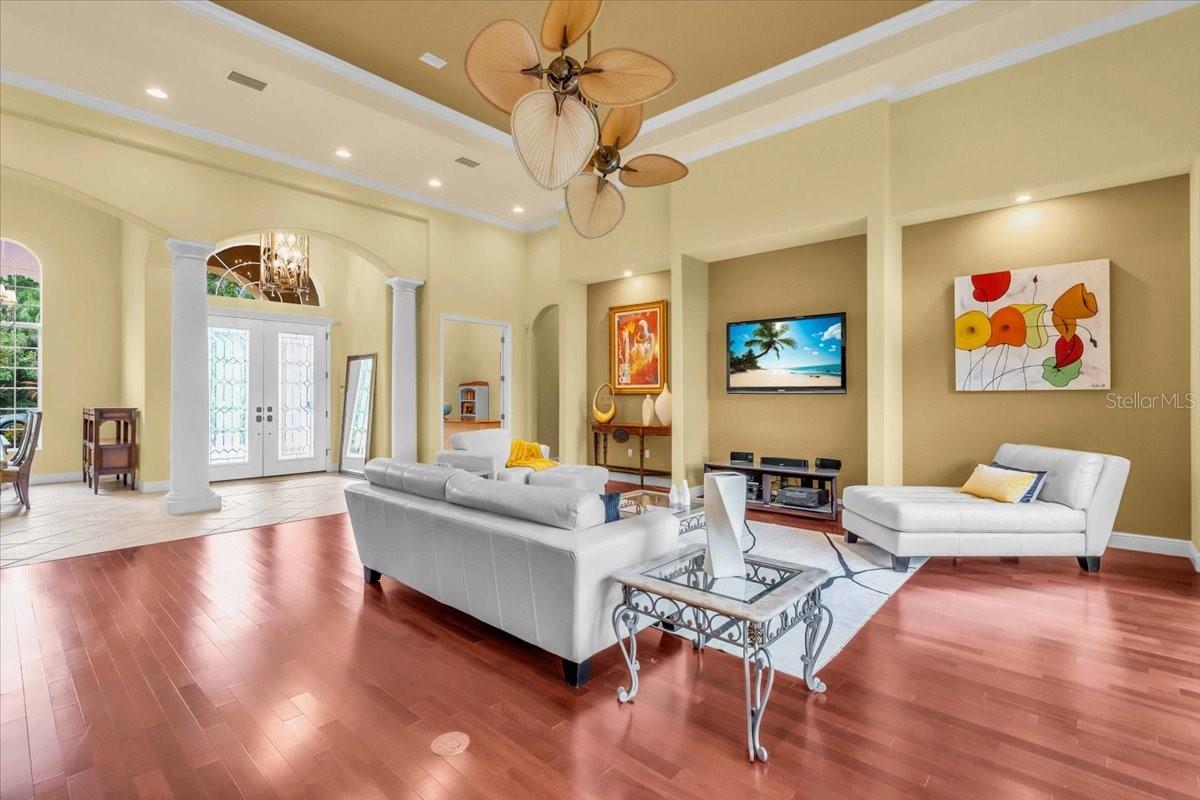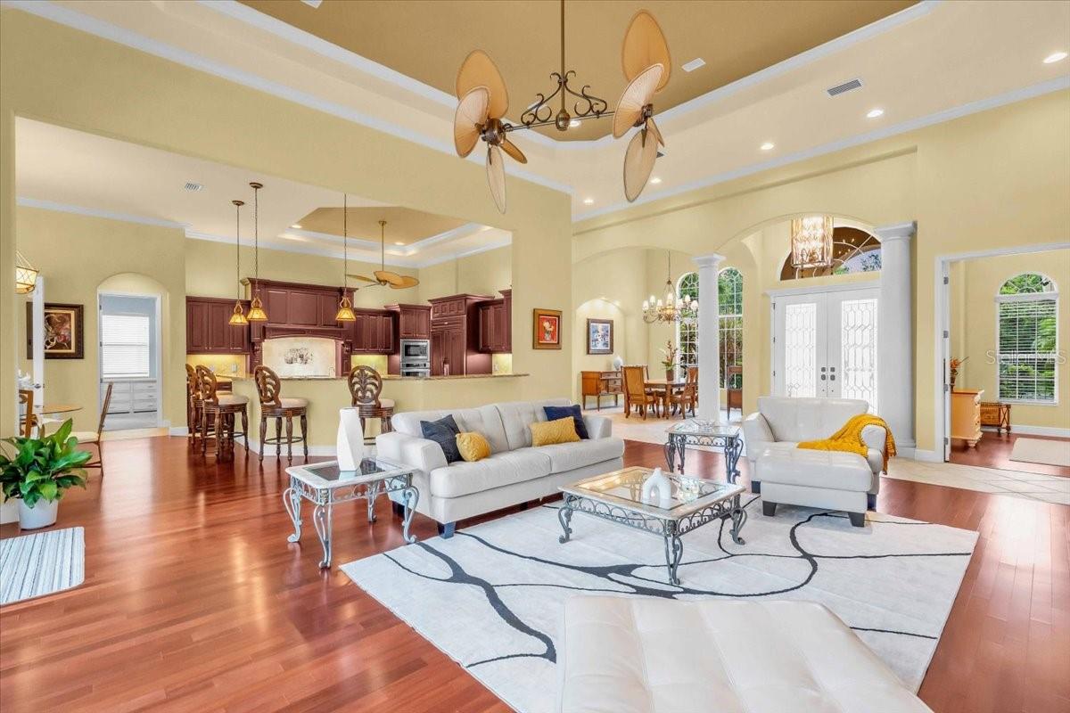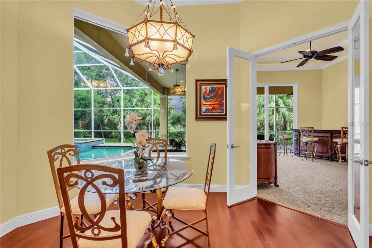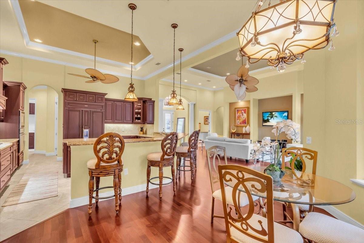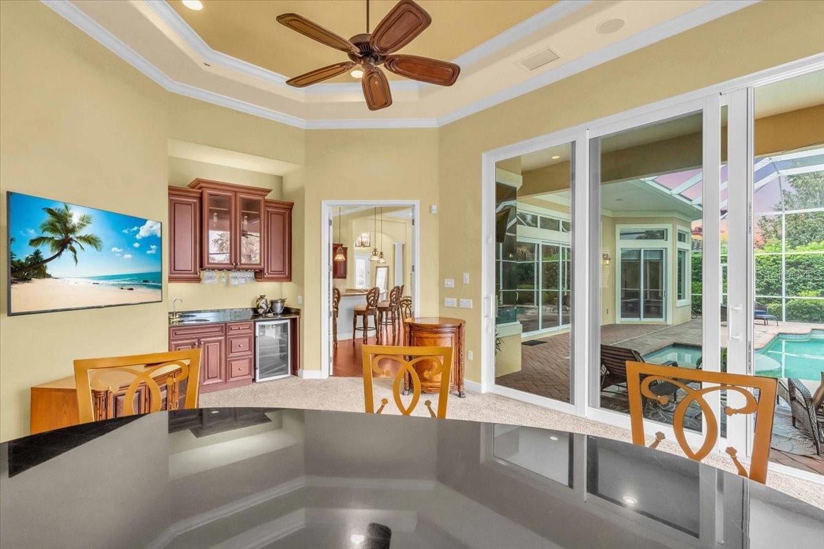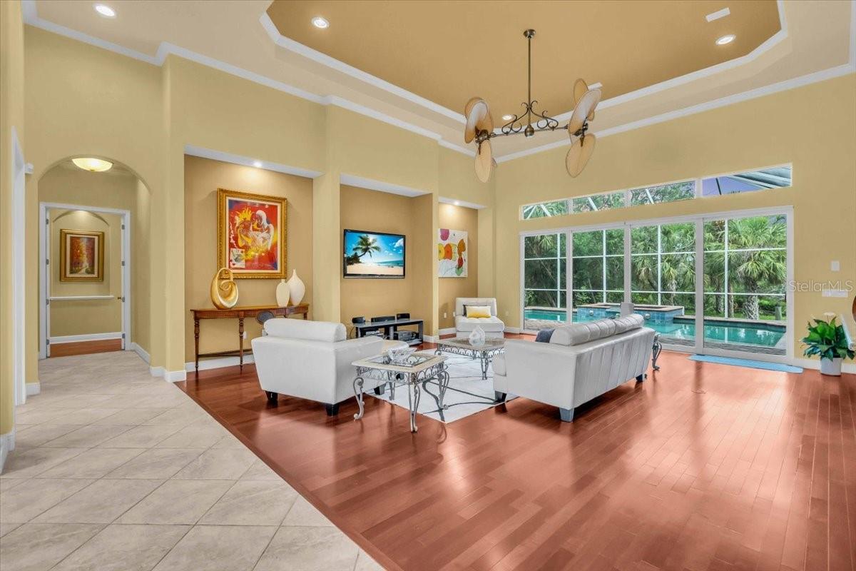 Welcome to a refined sanctuary of elegance and tranquility--this custom-designed estate by renowned builder John Cannon offers the ultimate in Florida waterfront luxury. Perfectly positioned in the highly sought after community of Walker's Cove, on a private cul-de-sac along the serene Braden River, this exquisite residence captures sweeping water views and direct access for boating or quiet moments dockside. With 3 spacious bedrooms, 3.5 bathrooms, a private office, and a den, this thoughtfully designed floorplan combines grand scale with intimate comfort. For the automotive enthusiast, a generous brick-paver driveway leads to both a two-car and single-car garage, offering form, function, and timeless curb appeal.Step through the grand entryway and be captivated by 20-foot ceilings, Palisade palm ceiling fans, and custom light fixtures that set a tone of understated opulence. Zero-corner pocket sliders dissolve the line between indoors and out, filling the home with natural light and inviting you to savor sweeping riverfront vistas from nearly every room.The gourmet kitchen is a culinary dream, anchored by a Thermador 5-burner gas cooktop, hidden integrated refrigerator, and rich custom cabinetry. Overlooking the living space and lush backyard, the aquarium glass window in the dining nook offers a picture-perfect frame of the private pool and garden beyond.The owner's retreat is a peaceful escape with its own climate control, dual walk-in closets, and a spa-like bath featuring a soaking tub, walk-through glass shower, and a secret garden view--an indulgent hideaway within your home.Designed for entertaining, the split floorplan includes a guest wing with a den and wet bar, while outside, the resort-style terrace awaits. Enjoy a dip in the heated pool or six-person spa, fire up the grill, or unwind beneath the stars on the illuminated boat dock, where mornings begin with coffee over the water and evenings end with a toast to the good life.Built with enduring quality and peace of mind--hurricane-impact windows, updated HVAC systems under warranty, and recent upgrades to the pool heater and pump--this home is truly move-in ready.Located just minutes from Lakewood Ranch, Sarasota's world-class beaches, UTC Mall, and I-75, this home in the exclusive gated enclave of Walker's Cove offers not just a residence, but a lifestyle of distinction.