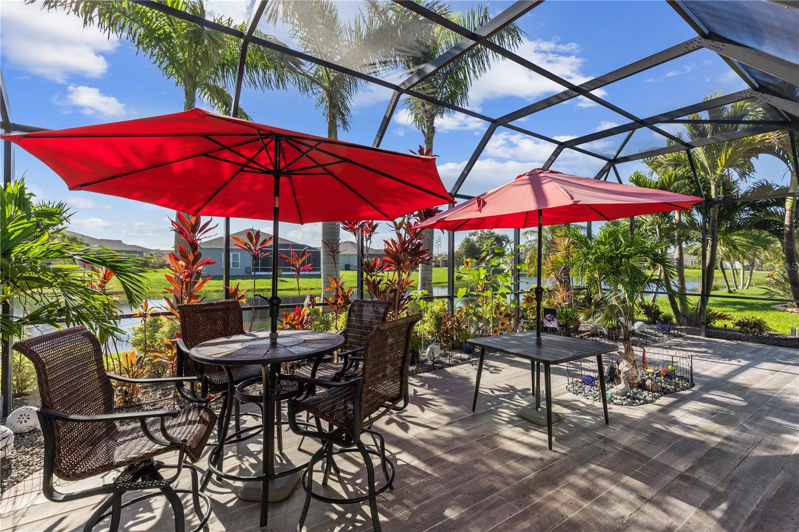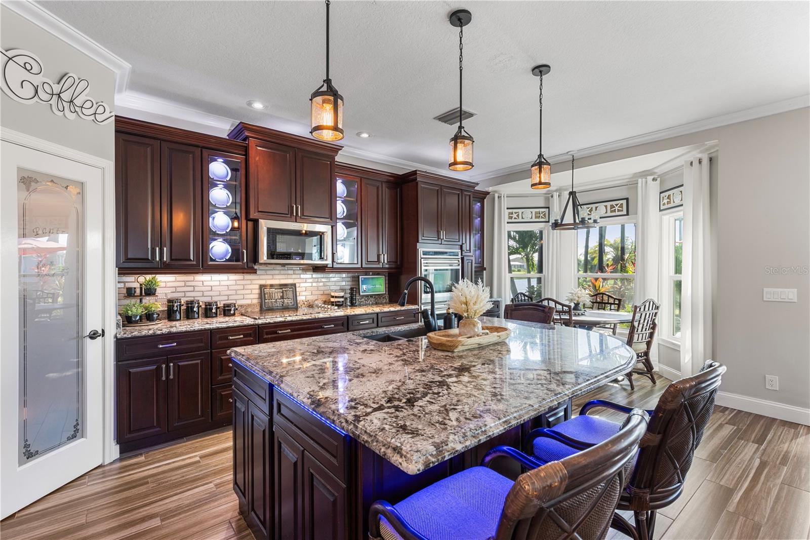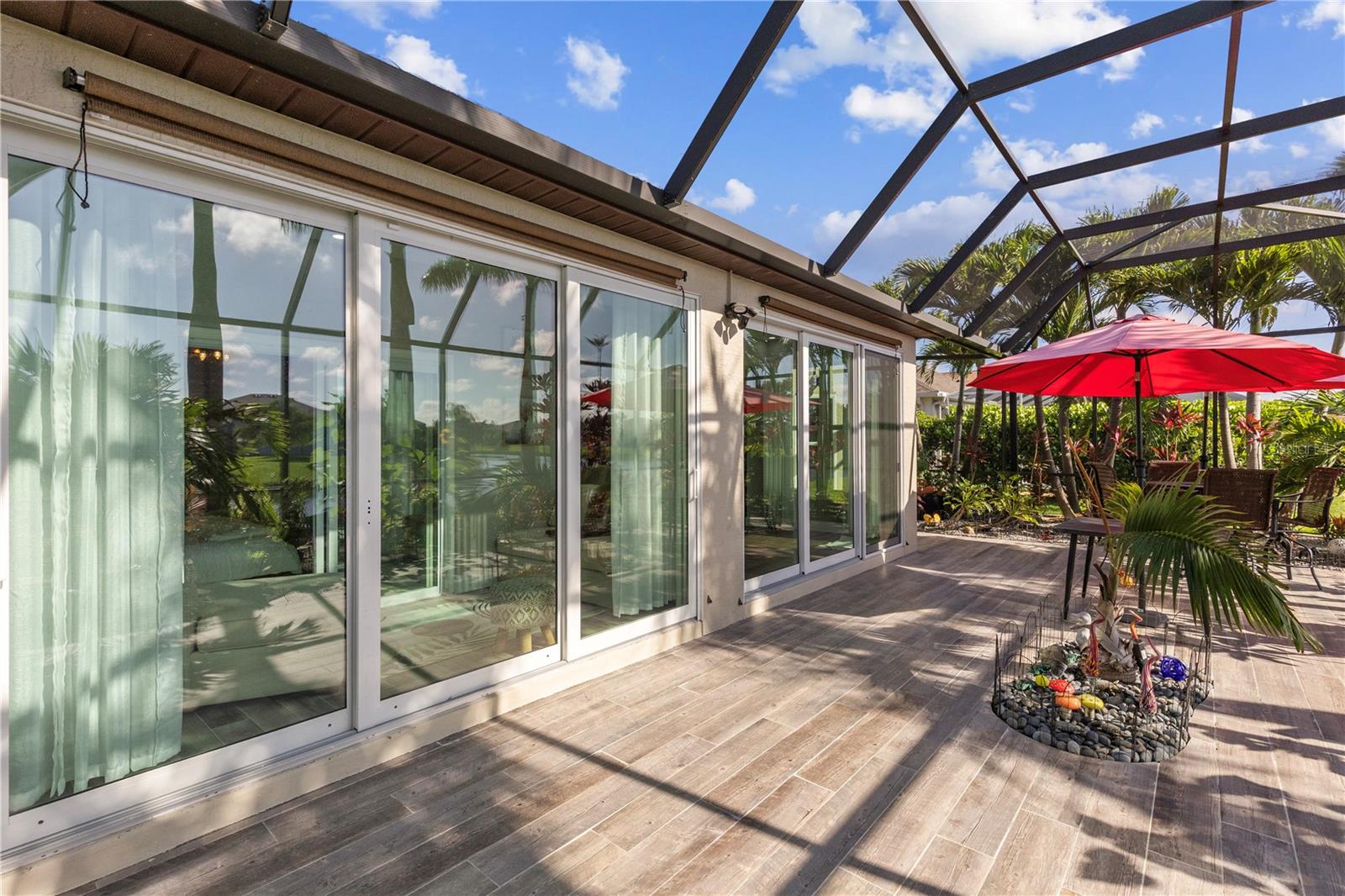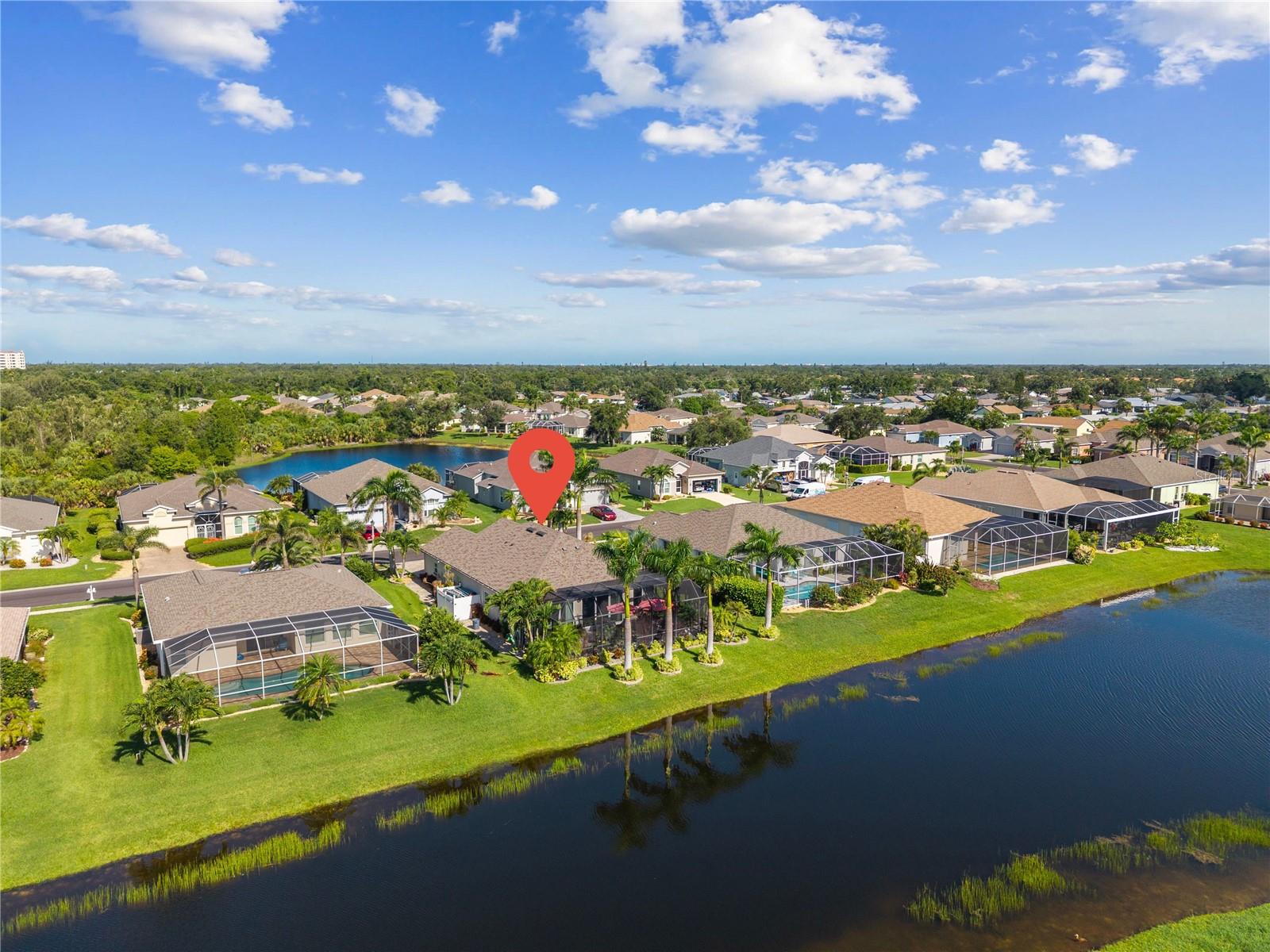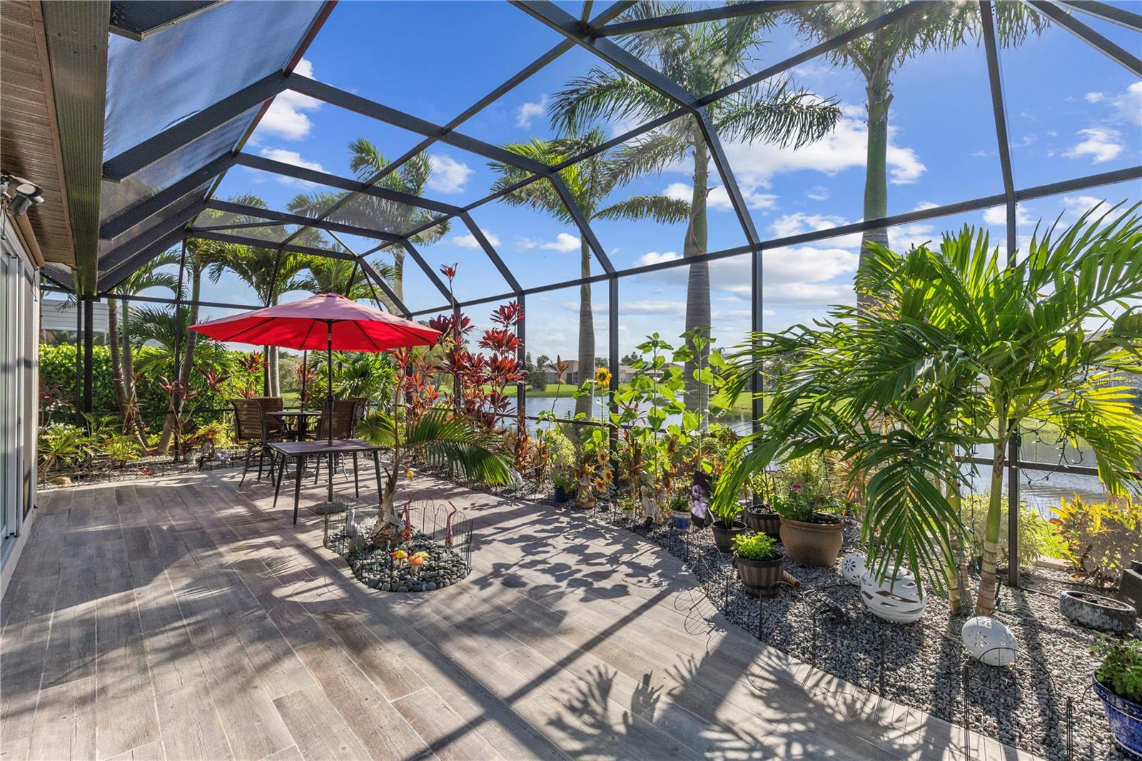 BEAUTIFULLY RENOVATED LAKEFRONT HOME WITH HIGH-END FINISHES AND THOUGHTFUL UPGRADES. Enjoy peace of mind with a new roof (2024), new impact-rated PGT windows and sliders (2023), and a new HVAC system (2024). Wood-plank tile flooring flows through all main living areas, complemented by crown molding throughout. The custom kitchen features solid cherry wood cabinets with glass inserts and pull-outs, a large center island, corner pantry, and breakfast nook with lake views. Appliances include a Viking induction cooktop (2023), Wolf built-in double ovens (2023), Bosch dishwasher (2025), and KitchenAid refrigerator (2023), and vented microwave (2023).The lanai was enclosed with impact glass sliders to create a sunny Florida room with views of the lake. The outdoor space includes a wood-look tiled floor, lush landscape and updated screen cage (2021). The spacious primary suite offers double closets and the ensuite bath has been fully renovated with a modern glass enclosed walk-in shower, separate soaking tub, double vanities, and a tankless on-demand water heater (2024).There are two guest bedrooms with a shared bath, plus a fourth bedroom with double glass doors currently used as a den. Ample storage includes added attic decking and custom cabinetry in the garage. The garage also features a mini-split A/C system (2023), tool chest, and freezer--all included.Additional features include LED lighting, permanent app-controlled exterior holiday lights, and a private deep well for irrigation to keep the lawn green and costs low. Located in Woodmere Lakes, a deed-restricted neighborhood close to shopping, restaurants, and everything Venice has to offer.