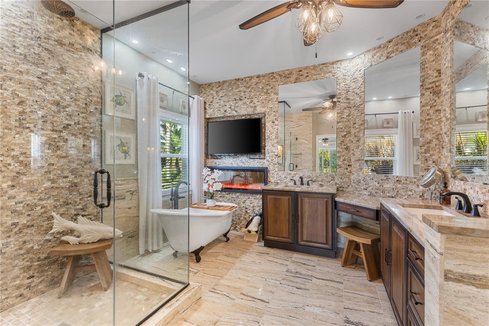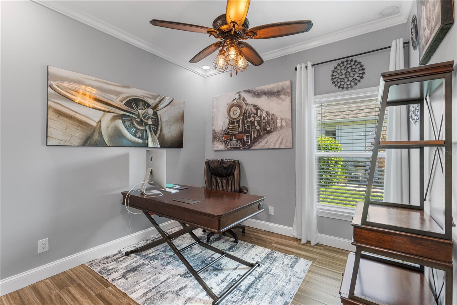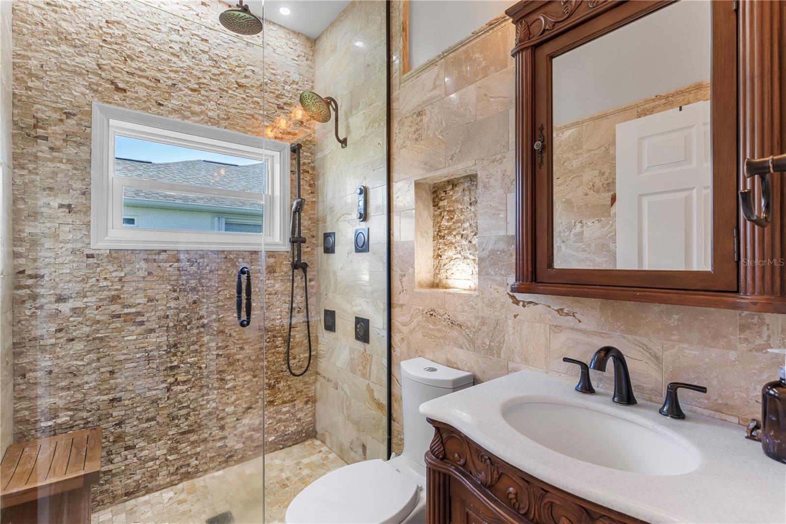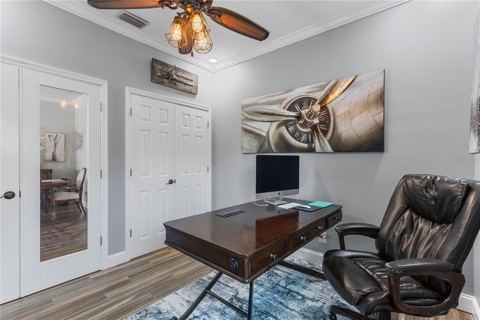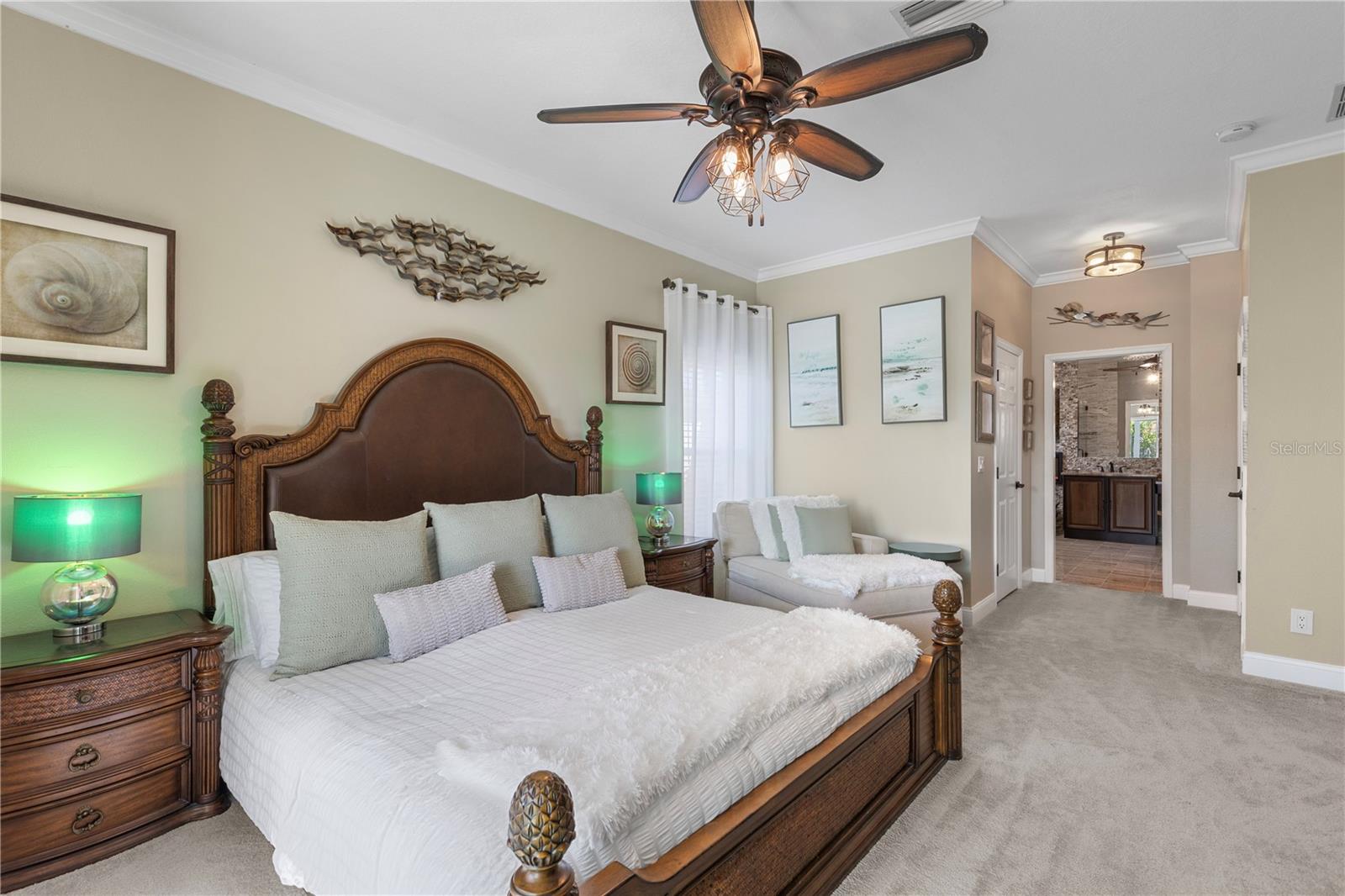 BEAUTIFULLY RENOVATED LAKEFRONT HOME WITH HIGH-END FINISHES AND THOUGHTFUL UPGRADES. Enjoy peace of mind with a new roof (2024), new impact-rated PGT windows and sliders (2023), and a new HVAC system (2024). Wood-plank tile flooring flows through all main living areas, complemented by crown molding throughout. The custom kitchen features solid cherry wood cabinets with glass inserts and pull-outs, a large center island, corner pantry, and breakfast nook with lake views. Appliances include a Viking induction cooktop (2023), Wolf built-in double ovens (2023), Bosch dishwasher (2025), and KitchenAid refrigerator (2023), and vented microwave (2023).The lanai was enclosed with impact glass sliders to create a sunny Florida room with views of the lake. The outdoor space includes a wood-look tiled floor, lush landscape and updated screen cage (2021). The spacious primary suite offers double closets and the ensuite bath has been fully renovated with a modern glass enclosed walk-in shower, separate soaking tub, double vanities, and a tankless on-demand water heater (2024).There are two guest bedrooms with a shared bath, plus a fourth bedroom with double glass doors currently used as a den. Ample storage includes added attic decking and custom cabinetry in the garage. The garage also features a mini-split A/C system (2023), tool chest, and freezer--all included.Additional features include LED lighting, permanent app-controlled exterior holiday lights, and a private deep well for irrigation to keep the lawn green and costs low. Located in Woodmere Lakes, a deed-restricted neighborhood close to shopping, restaurants, and everything Venice has to offer.