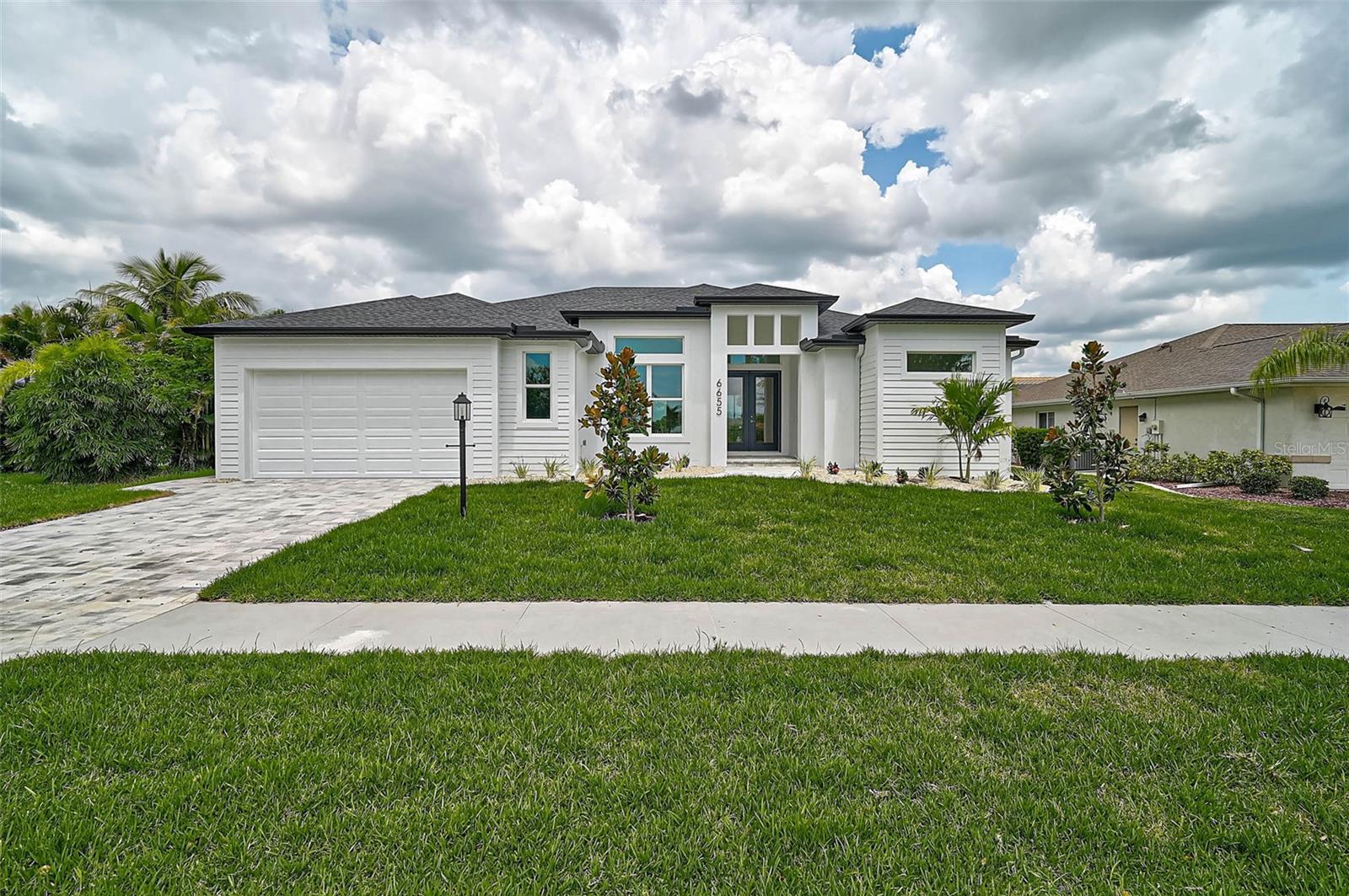 Discover this BEAUTIFULLY crafted, high quality waterfront home offering the perfect blend of luxury, comfort, and durability. With direct water access and dock-ready capability, this home is a boater's dream. Enjoy outdoor living at its finest with a sparkling pool, expansive paver lanai, and a fully landscaped yard featuring lush St. Augustine grass and a full irrigation system. Inside you'll find soaring high ceilings, tile flooring throughout, and energy efficient Low-E insulated impact windows and doors that fill the home with natural light. The spacious layout includes an office/den, an oversized garage, and a kitchen outfitted with solid stone countertops, soft-close Craftsman-style cabinetry, and premium finishes throughout. Built by a reputable local builder with attention to structural excellence, the home includes spray foam insulation, wire mat and fiber mesh reinforcement in the foundation, and is connected to city water and city sewer. This home offers the ideal Florida lifestyle-luxurious, efficient, and built to last!
