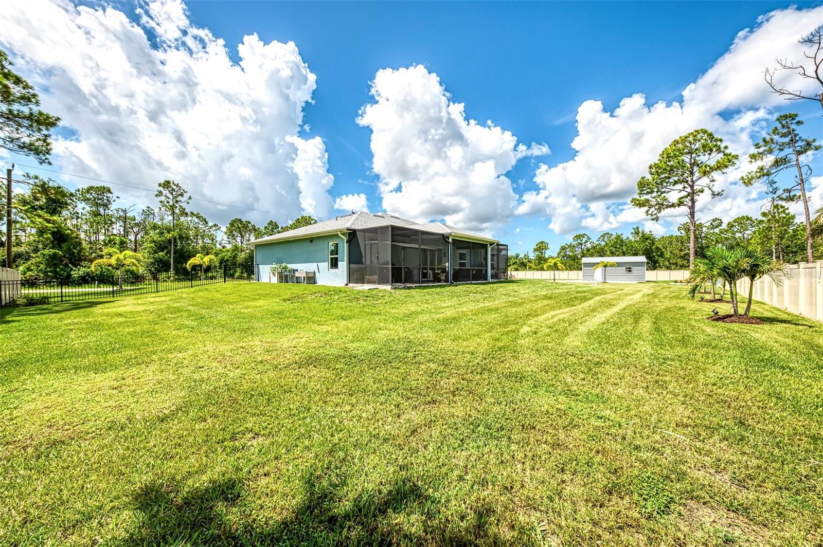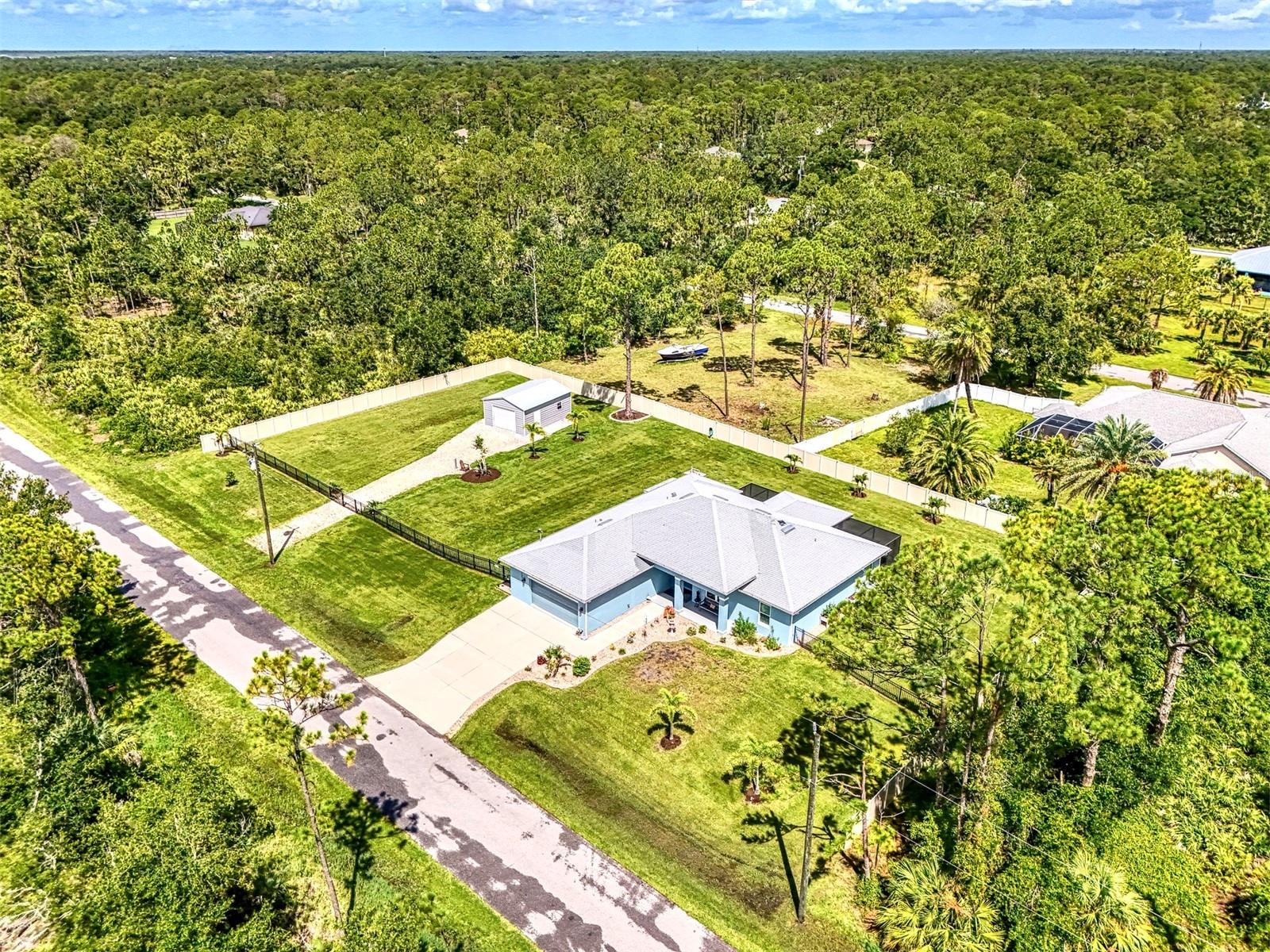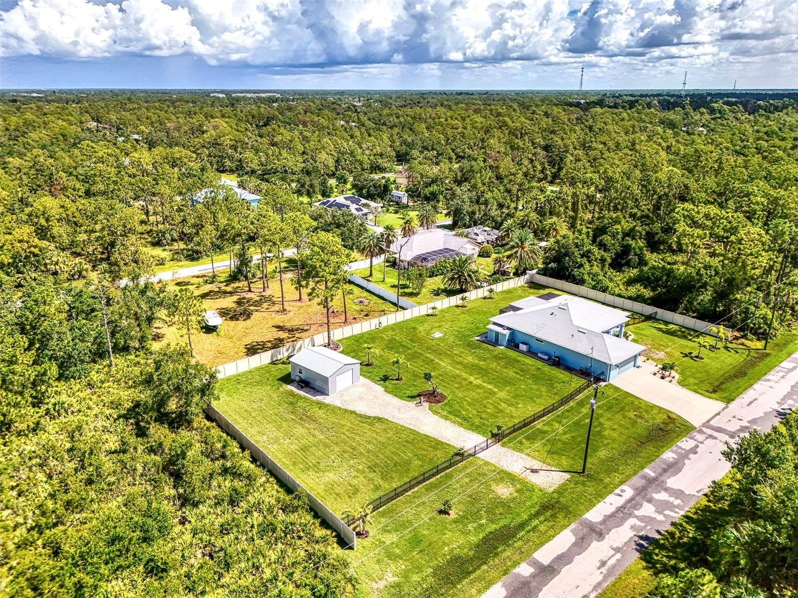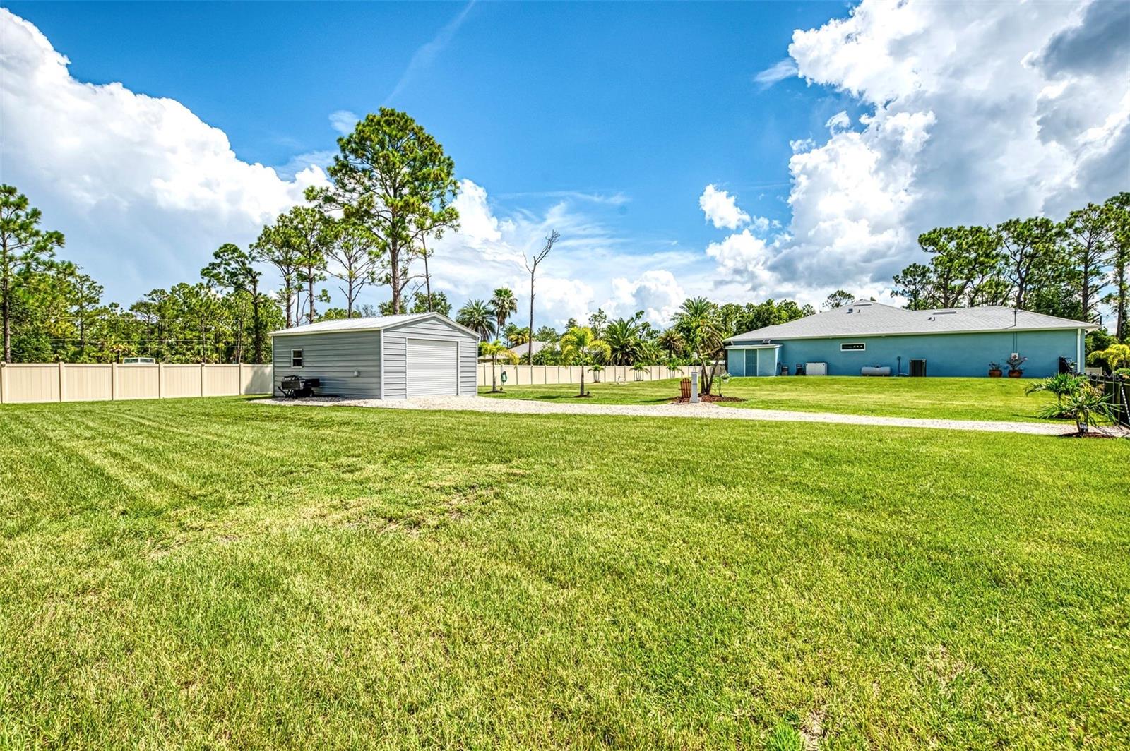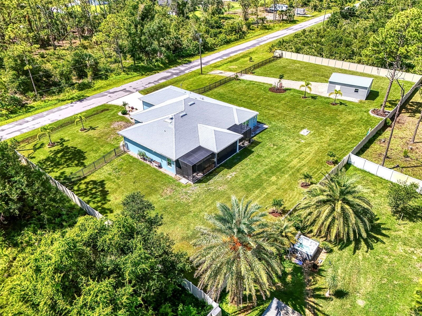 SPECTACULAR PRICE REDUCTION . . . Homebuyers Seeking a RECENTLY CONSTRUCTED, ELEGANT CUSTOM BUILT (2023) 3 Bedroom, 2 Bath + Den HOME with an OPEN FLOOR PLAN, HIGH CEILINGS and COFFERED Great Room Ceiling, PRIVACY, NO HOA FEES, NO CDD FEES . . . PLUS . . . Situated on a TRIPLE LOT HOMESITE Measuring (240'x145') Just Under One Acre of Land (.80 Acreage) . . . You Have Found What You've Been Looking for! This GEM has An ATTACHED OVER-SIZED 2-Car Garage (23'X21.8') Plus a DETACHED GARAGE (18'X26') with Electric, Lighting and Workshop Space. RV and BOAT Owners . . . Bring Them Here. . .You'll have Plenty of Room to Park and Hook Up to the 50 Amp Pedestal. This Remarkable Property is TOTALLY FENCED for Pets and Play, with PRIVACY VINYL on Back and Sides with ALUMINUM FRONTAGE for Great Curb Appeal. A Modern COASTAL DESIGN and PREMIUM FEATURES Create a Home that Truly Stands Out. TOP-OF-THE-LINE LUXURY WHOLE-HOUSE ECO WATER REVERSE OSMOSIS SYSTEM Gives Peace-of-Mind for Cooking, Drinking Water and Showering for the Entire Family. When Inclement Weather Approaches, You'll Have No Worries as this Home has HURRICANE IMPACT WINDOWS and HURRICANE IMPACT TRIPLE SLIDER! And, If You Lose Power, there's a GENERATOR HOOK-UP. Relax in the Great Room with Family and Friends as You Gather Around the Touchstone Elite Electric Fireplace Providing (with Heater) an Ambient Atmosphere. A Dream GOURMET KITCHEN Features SMART OVENS, Soft-Close 42" Cabinets, Tiled Backsplash and SAMSUNG Appliances (2023) plus a Beautiful Stainless Range Hood are Showcased in the OPEN FLOOR PLAN with an OVER-SIZED GRANITE Kitchen Island and a Coffee Bar. Upgraded PORCELAIN TILE Throughout ALL Public Rooms and LUXURY VINYL FLOORING in ALL Bedrooms and the Den/Study Makes Vacuuming a Breeze. For the Pets in Your Family, Bath Time is Stressless, as the Laundry Room has a Pet-Friendly TILED-WALK-IN SHOWER. . . Washup After Working in the Yard, or a Day at the Beach. A Security System is Also On-Site. Conveniently Located within Minutes of Shopping, Dining, Entertainment, Medical Facilities and Sports Venues. This EXCEPTIONAL OPPORTUNITY Awaits Those Who Want SPACE and PRIVACY, INDEPENDENCE and EVERYTHING COMPLETED to Begin Enjoying the Endless Possibilities of Keeping All of Your "Toys" with You! Call to See this AMAZING HOME and PROPERTY Today and Make It Your Own.