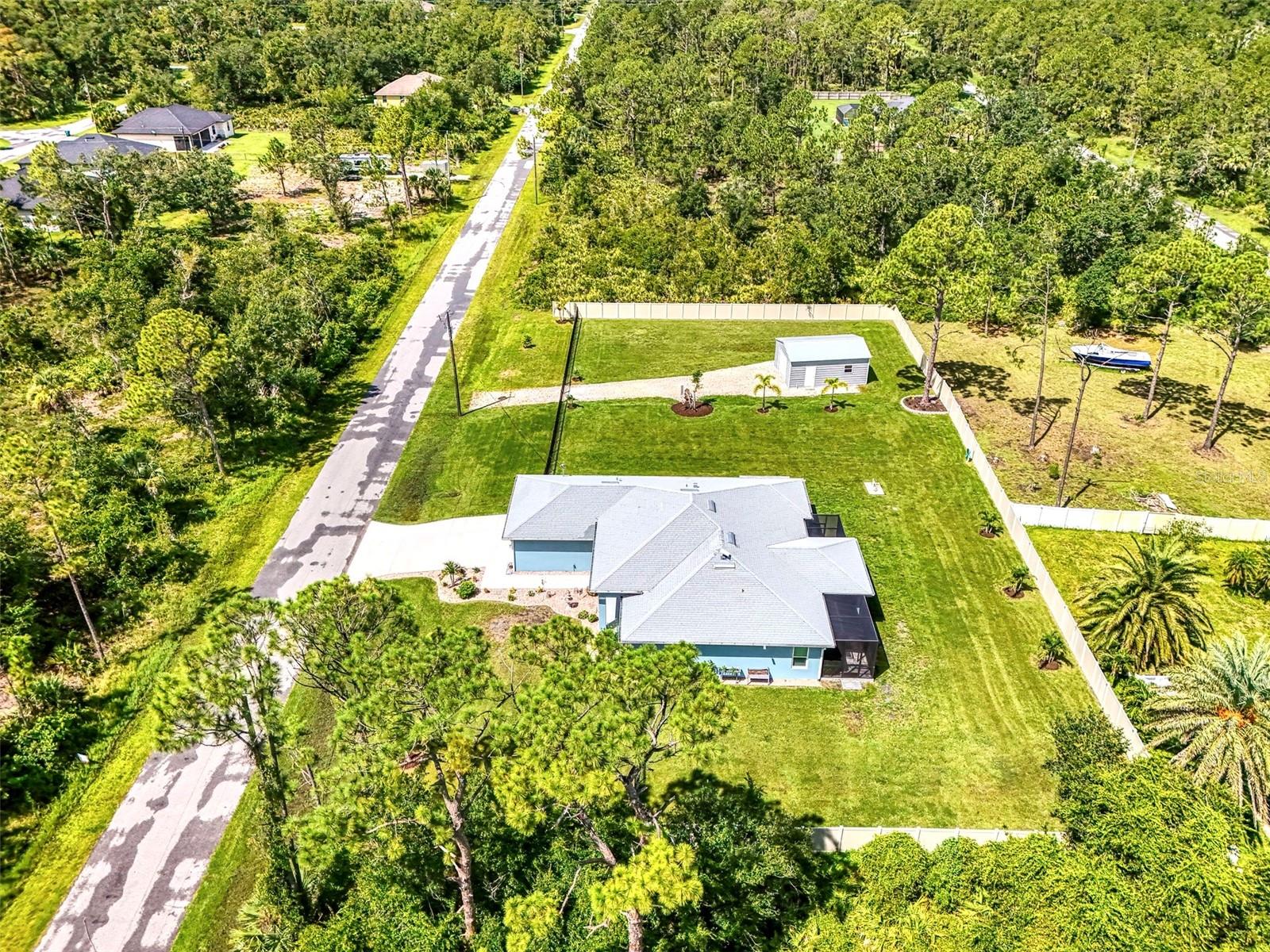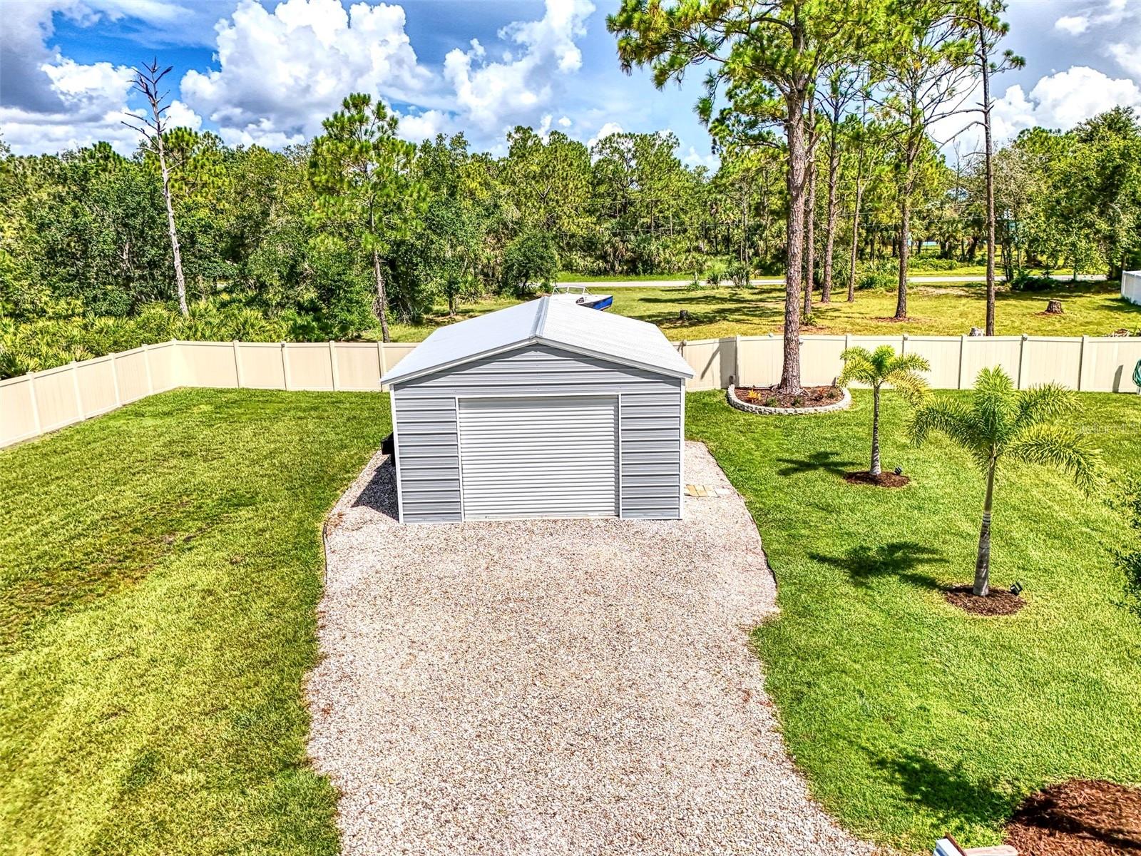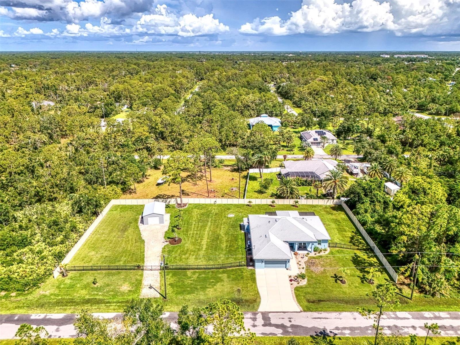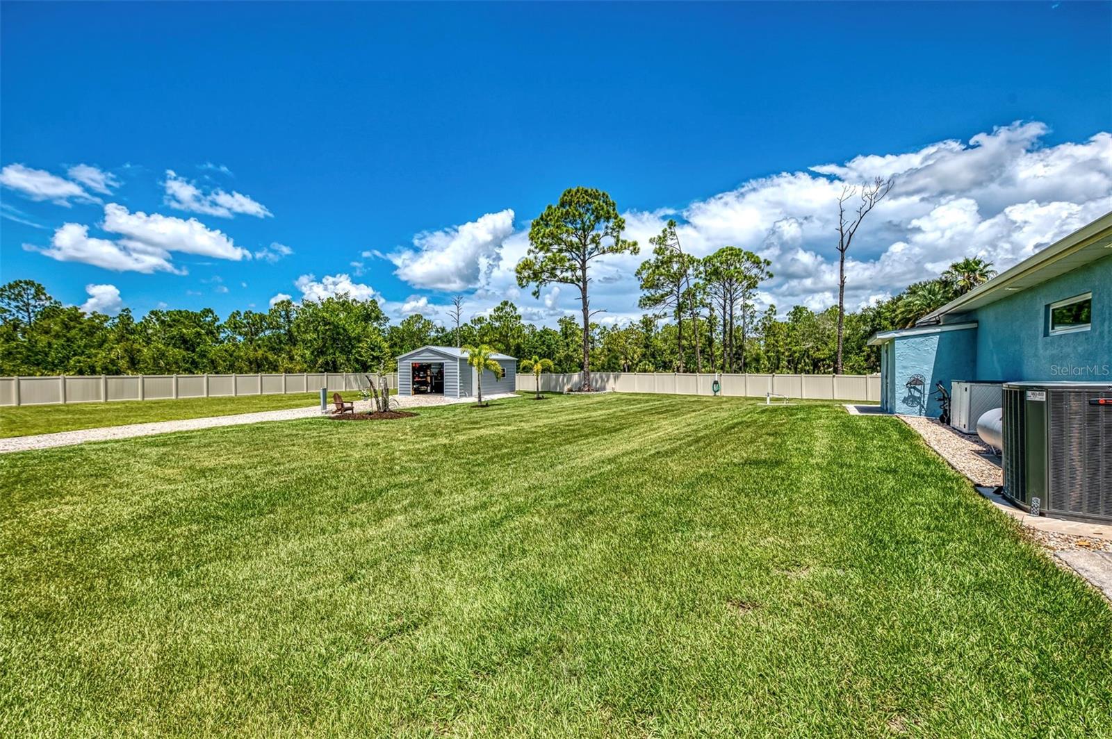SPECTACULAR PRICE REDUCTION . . . Homebuyers Seeking a RECENTLY CONSTRUCTED, ELEGANT CUSTOM BUILT (2023) 3 Bedroom, 2 Bath + Den HOME with an OPEN FLOOR PLAN, HIGH CEILINGS and COFFERED Great Room Ceiling, PRIVACY, NO HOA FEES, NO CDD FEES . . . PLUS . . . Situated on a TRIPLE LOT HOMESITE Measuring (240'x145') Just Under One Acre of Land (.80 Acreage) . . . You Have Found What You've Been Looking for! This GEM has An ATTACHED OVER-SIZED 2-Car Garage (23'X21.8') Plus a DETACHED GARAGE (18'X26') with Electric, Lighting and Workshop Space. RV and BOAT Owners . . . Bring Them Here. . .You'll have Plenty of Room to Park and Hook Up to the 50 Amp Pedestal. This Remarkable Property is TOTALLY FENCED for Pets and Play, with PRIVACY VINYL on Back and Sides with ALUMINUM FRONTAGE for Great Curb Appeal. A Modern COASTAL DESIGN and PREMIUM FEATURES Create a Home that Truly Stands Out. TOP-OF-THE-LINE LUXURY WHOLE-HOUSE ECO WATER REVERSE OSMOSIS SYSTEM Gives Peace-of-Mind for Cooking, Drinking Water and Showering for the Entire Family. When Inclement Weather Approaches, You'll Have No Worries as this Home has HURRICANE IMPACT WINDOWS and HURRICANE IMPACT TRIPLE SLIDER! And, If You Lose Power, there's a GENERATOR HOOK-UP. Relax in the Great Room with Family and Friends as You Gather Around the Touchstone Elite Electric Fireplace Providing (with Heater) an Ambient Atmosphere. A Dream GOURMET KITCHEN Features SMART OVENS, Soft-Close 42" Cabinets, Tiled Backsplash and SAMSUNG Appliances (2023) plus a Beautiful Stainless Range Hood are Showcased in the OPEN FLOOR PLAN with an OVER-SIZED GRANITE Kitchen Island and a Coffee Bar. Upgraded PORCELAIN TILE Throughout ALL Public Rooms and LUXURY VINYL FLOORING in ALL Bedrooms and the Den/Study Makes Vacuuming a Breeze. For the Pets in Your Family, Bath Time is Stressless, as the Laundry Room has a Pet-Friendly TILED-WALK-IN SHOWER. . . Washup After Working in the Yard, or a Day at the Beach. A Security System is Also On-Site. Conveniently Located within Minutes of Shopping, Dining, Entertainment, Medical Facilities and Sports Venues. This EXCEPTIONAL OPPORTUNITY Awaits Those Who Want SPACE and PRIVACY, INDEPENDENCE and EVERYTHING COMPLETED to Begin Enjoying the Endless Possibilities of Keeping All of Your "Toys" with You! Call to See this AMAZING HOME and PROPERTY Today and Make It Your Own.