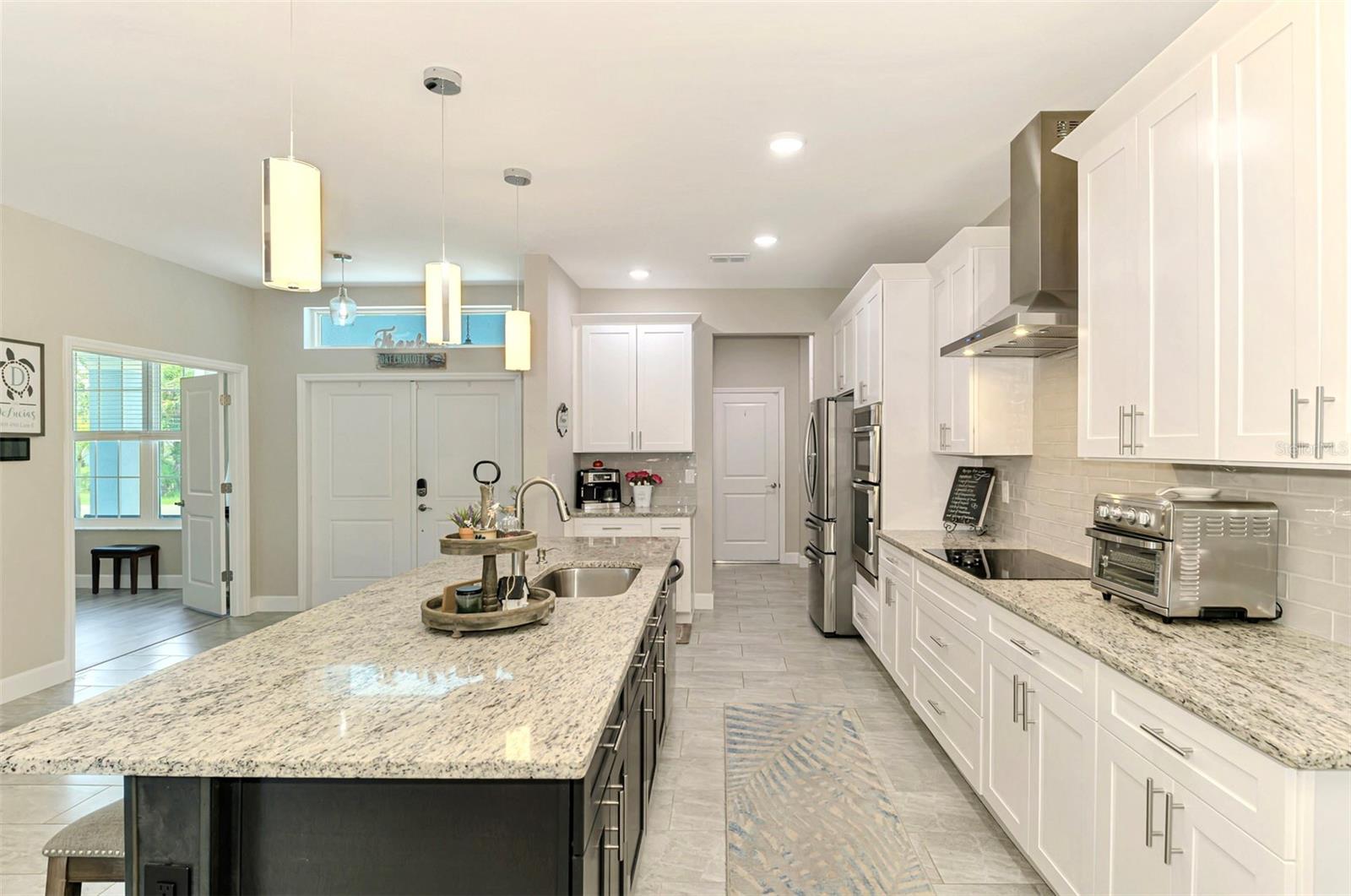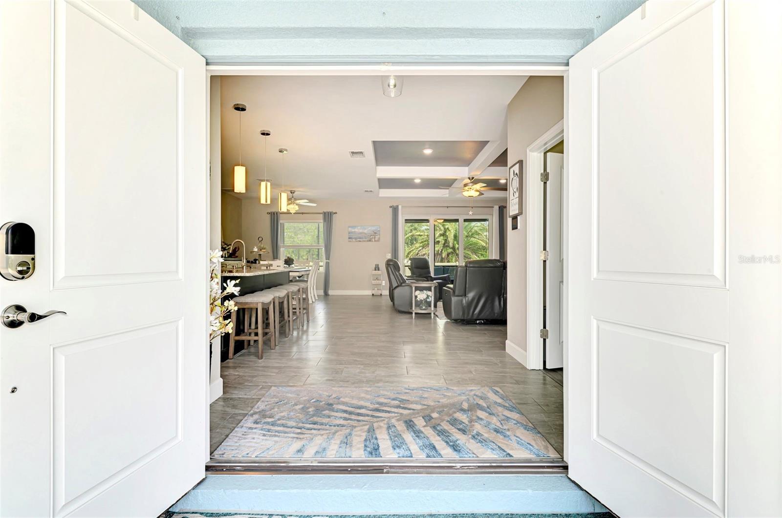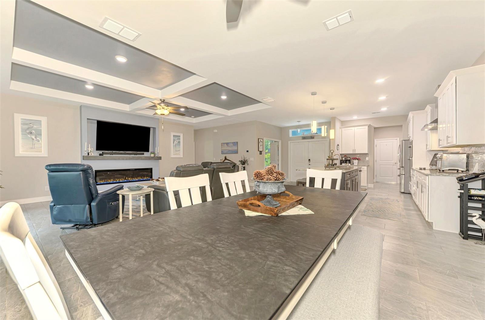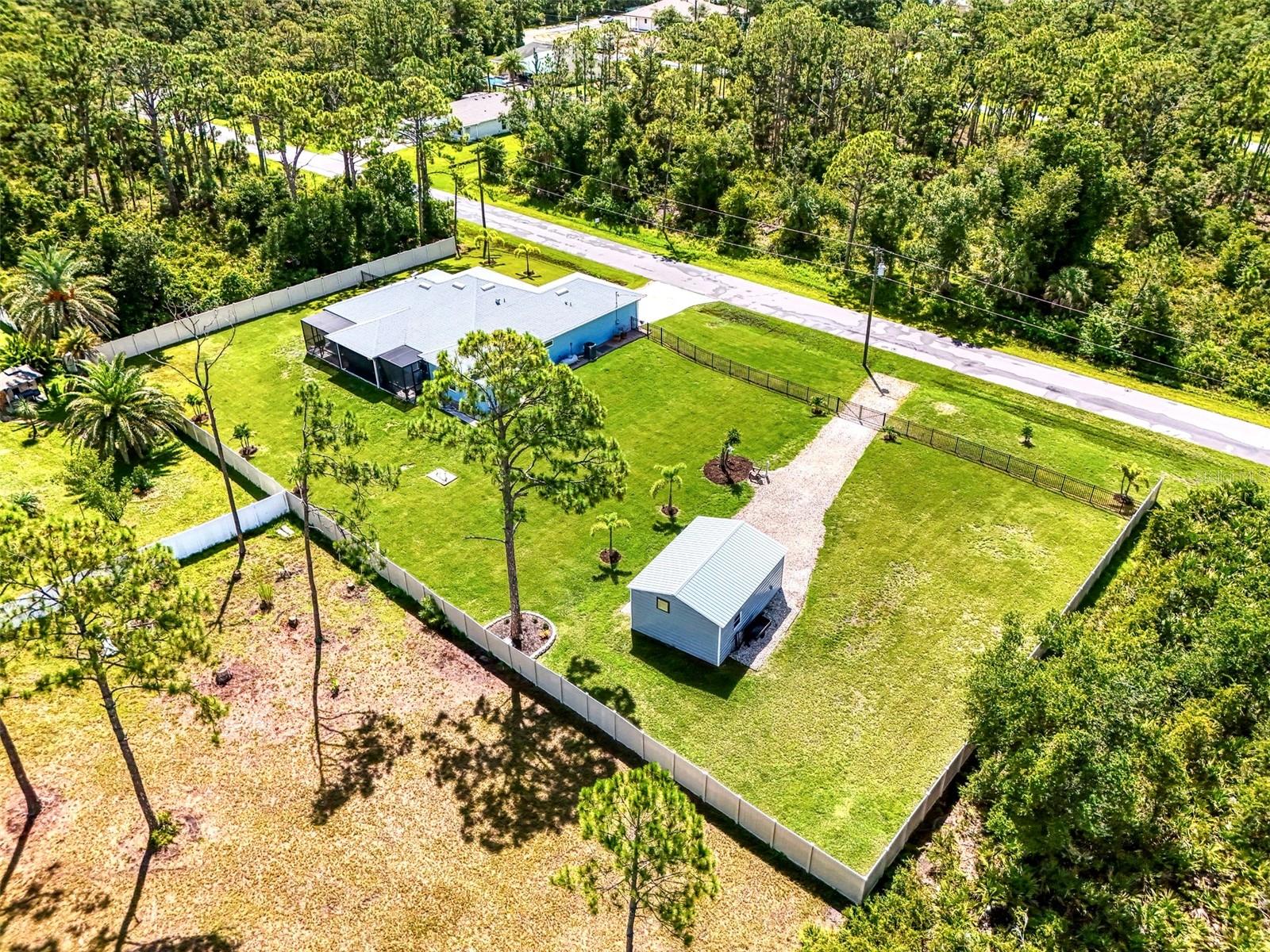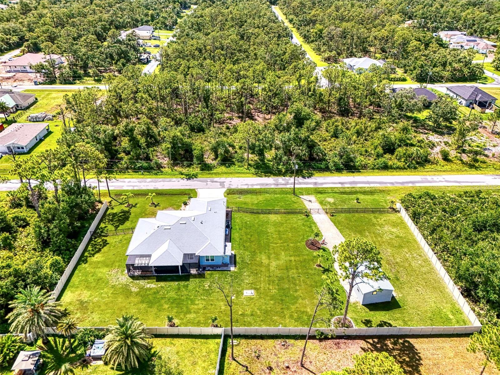 SPECTACULAR PRICE REDUCTION . . . Homebuyers Seeking a RECENTLY CONSTRUCTED, ELEGANT CUSTOM BUILT (2023) 3 Bedroom, 2 Bath + Den HOME with an OPEN FLOOR PLAN, HIGH CEILINGS and COFFERED Great Room Ceiling, PRIVACY, NO HOA FEES, NO CDD FEES . . . PLUS . . . Situated on a TRIPLE LOT HOMESITE Measuring (240'x145') Just Under One Acre of Land (.80 Acreage) . . . You Have Found What You've Been Looking for! This GEM has An ATTACHED OVER-SIZED 2-Car Garage (23'X21.8') Plus a DETACHED GARAGE (18'X26') with Electric, Lighting and Workshop Space. RV and BOAT Owners . . . Bring Them Here. . .You'll have Plenty of Room to Park and Hook Up to the 50 Amp Pedestal. This Remarkable Property is TOTALLY FENCED for Pets and Play, with PRIVACY VINYL on Back and Sides with ALUMINUM FRONTAGE for Great Curb Appeal. A Modern COASTAL DESIGN and PREMIUM FEATURES Create a Home that Truly Stands Out. TOP-OF-THE-LINE LUXURY WHOLE-HOUSE ECO WATER REVERSE OSMOSIS SYSTEM Gives Peace-of-Mind for Cooking, Drinking Water and Showering for the Entire Family. When Inclement Weather Approaches, You'll Have No Worries as this Home has HURRICANE IMPACT WINDOWS and HURRICANE IMPACT TRIPLE SLIDER! And, If You Lose Power, there's a GENERATOR HOOK-UP. Relax in the Great Room with Family and Friends as You Gather Around the Touchstone Elite Electric Fireplace Providing (with Heater) an Ambient Atmosphere. A Dream GOURMET KITCHEN Features SMART OVENS, Soft-Close 42" Cabinets, Tiled Backsplash and SAMSUNG Appliances (2023) plus a Beautiful Stainless Range Hood are Showcased in the OPEN FLOOR PLAN with an OVER-SIZED GRANITE Kitchen Island and a Coffee Bar. Upgraded PORCELAIN TILE Throughout ALL Public Rooms and LUXURY VINYL FLOORING in ALL Bedrooms and the Den/Study Makes Vacuuming a Breeze. For the Pets in Your Family, Bath Time is Stressless, as the Laundry Room has a Pet-Friendly TILED-WALK-IN SHOWER. . . Washup After Working in the Yard, or a Day at the Beach. A Security System is Also On-Site. Conveniently Located within Minutes of Shopping, Dining, Entertainment, Medical Facilities and Sports Venues. This EXCEPTIONAL OPPORTUNITY Awaits Those Who Want SPACE and PRIVACY, INDEPENDENCE and EVERYTHING COMPLETED to Begin Enjoying the Endless Possibilities of Keeping All of Your "Toys" with You! Call to See this AMAZING HOME and PROPERTY Today and Make It Your Own.