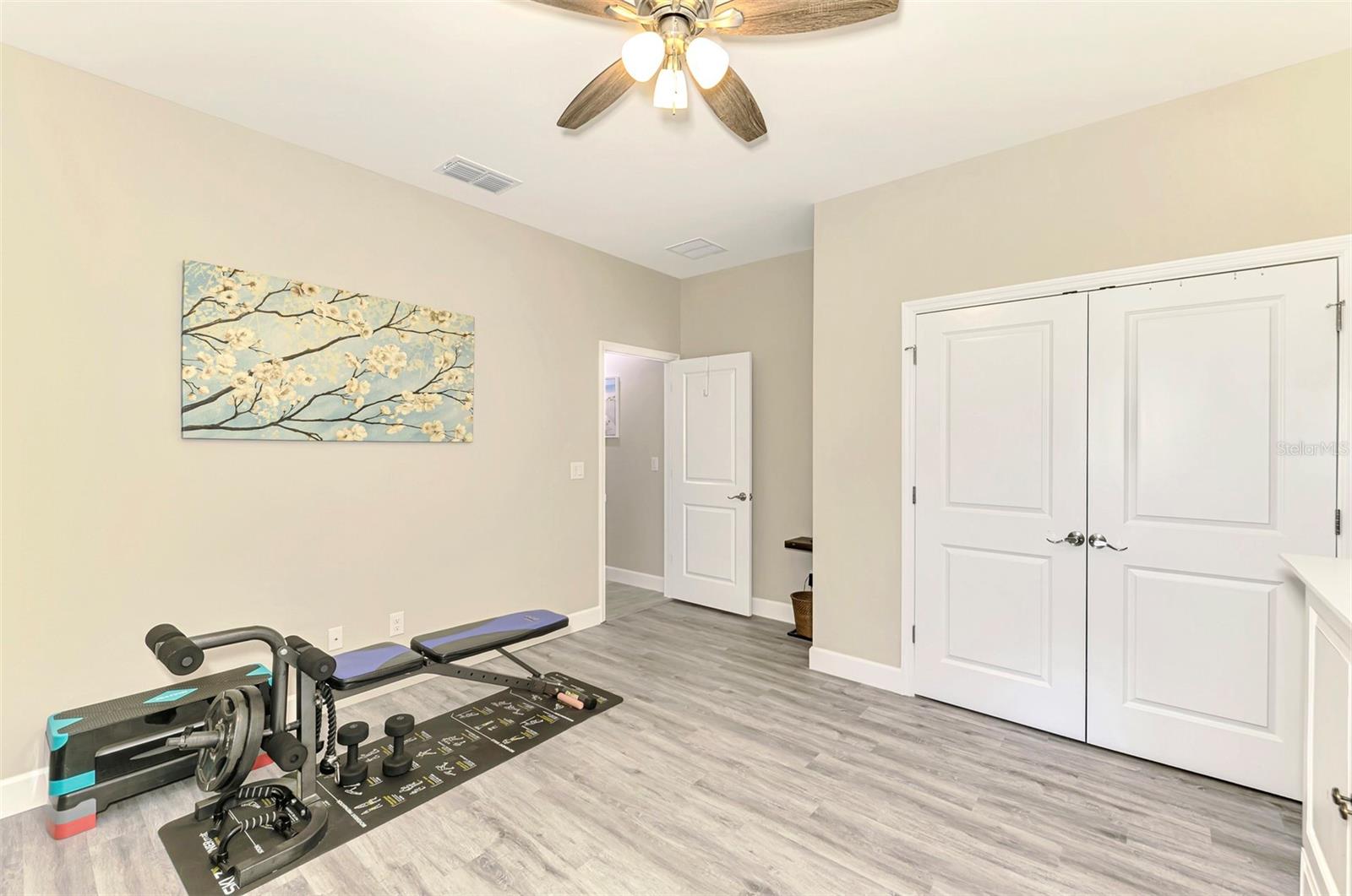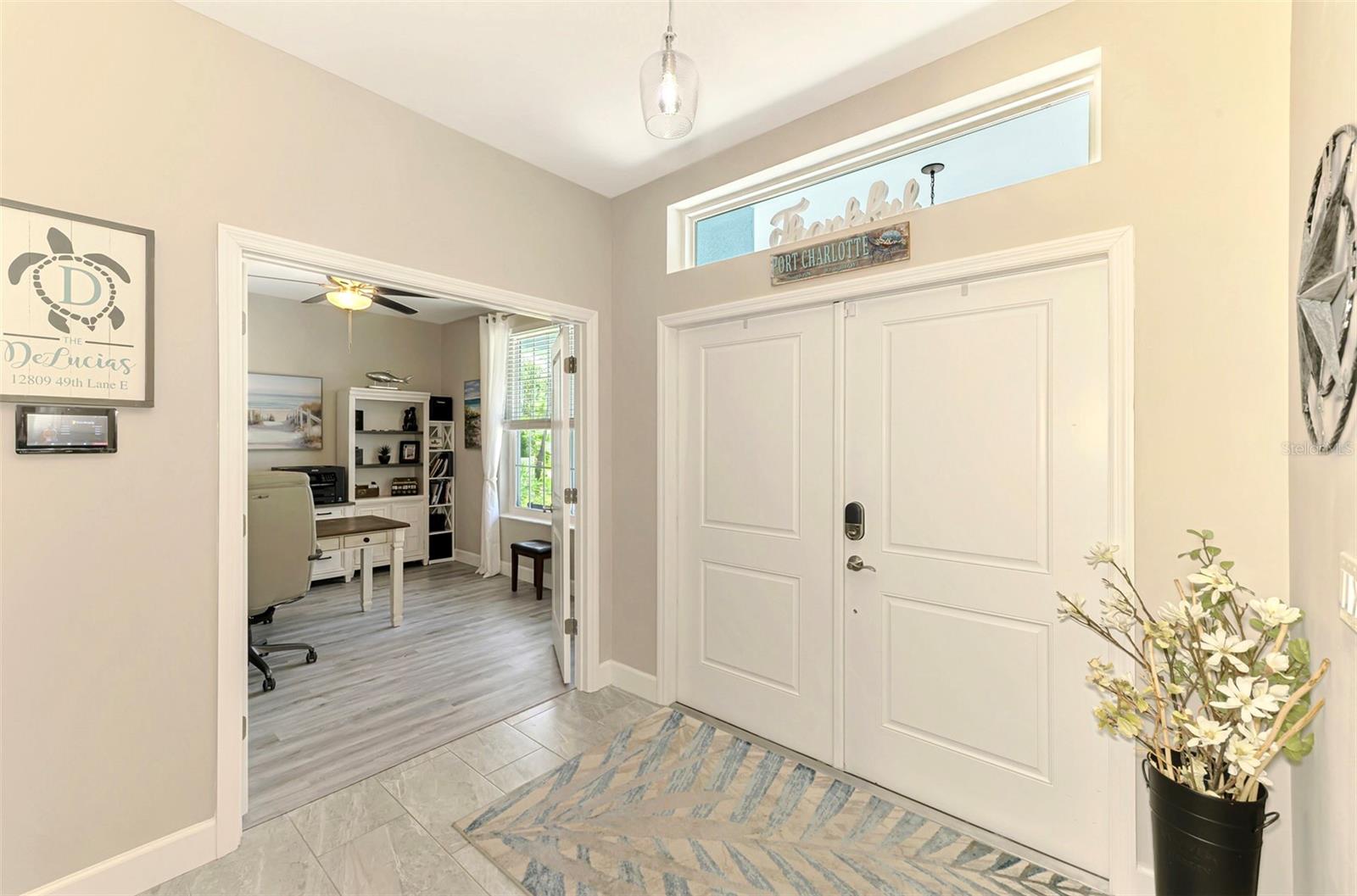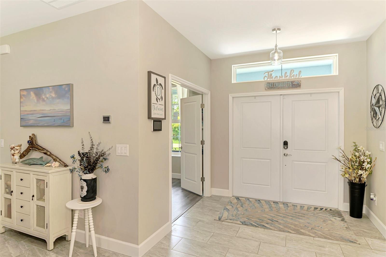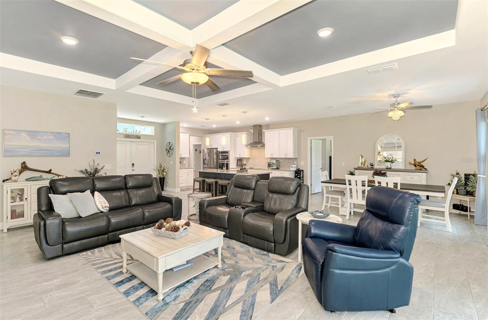 SPECTACULAR PRICE REDUCTION . . . Homebuyers Seeking a RECENTLY CONSTRUCTED, ELEGANT CUSTOM BUILT (2023) 3 Bedroom, 2 Bath + Den HOME with an OPEN FLOOR PLAN, HIGH CEILINGS and COFFERED Great Room Ceiling, PRIVACY, NO HOA FEES, NO CDD FEES . . . PLUS . . . Situated on a TRIPLE LOT HOMESITE Measuring (240'x145') Just Under One Acre of Land (.80 Acreage) . . . You Have Found What You've Been Looking for! This GEM has An ATTACHED OVER-SIZED 2-Car Garage (23'X21.8') Plus a DETACHED GARAGE (18'X26') with Electric, Lighting and Workshop Space. RV and BOAT Owners . . . Bring Them Here. . .You'll have Plenty of Room to Park and Hook Up to the 50 Amp Pedestal. This Remarkable Property is TOTALLY FENCED for Pets and Play, with PRIVACY VINYL on Back and Sides with ALUMINUM FRONTAGE for Great Curb Appeal. A Modern COASTAL DESIGN and PREMIUM FEATURES Create a Home that Truly Stands Out. TOP-OF-THE-LINE LUXURY WHOLE-HOUSE ECO WATER REVERSE OSMOSIS SYSTEM Gives Peace-of-Mind for Cooking, Drinking Water and Showering for the Entire Family. When Inclement Weather Approaches, You'll Have No Worries as this Home has HURRICANE IMPACT WINDOWS and HURRICANE IMPACT TRIPLE SLIDER! And, If You Lose Power, there's a GENERATOR HOOK-UP. Relax in the Great Room with Family and Friends as You Gather Around the Touchstone Elite Electric Fireplace Providing (with Heater) an Ambient Atmosphere. A Dream GOURMET KITCHEN Features SMART OVENS, Soft-Close 42" Cabinets, Tiled Backsplash and SAMSUNG Appliances (2023) plus a Beautiful Stainless Range Hood are Showcased in the OPEN FLOOR PLAN with an OVER-SIZED GRANITE Kitchen Island and a Coffee Bar. Upgraded PORCELAIN TILE Throughout ALL Public Rooms and LUXURY VINYL FLOORING in ALL Bedrooms and the Den/Study Makes Vacuuming a Breeze. For the Pets in Your Family, Bath Time is Stressless, as the Laundry Room has a Pet-Friendly TILED-WALK-IN SHOWER. . . Washup After Working in the Yard, or a Day at the Beach. A Security System is Also On-Site. Conveniently Located within Minutes of Shopping, Dining, Entertainment, Medical Facilities and Sports Venues. This EXCEPTIONAL OPPORTUNITY Awaits Those Who Want SPACE and PRIVACY, INDEPENDENCE and EVERYTHING COMPLETED to Begin Enjoying the Endless Possibilities of Keeping All of Your "Toys" with You! Call to See this AMAZING HOME and PROPERTY Today and Make It Your Own.